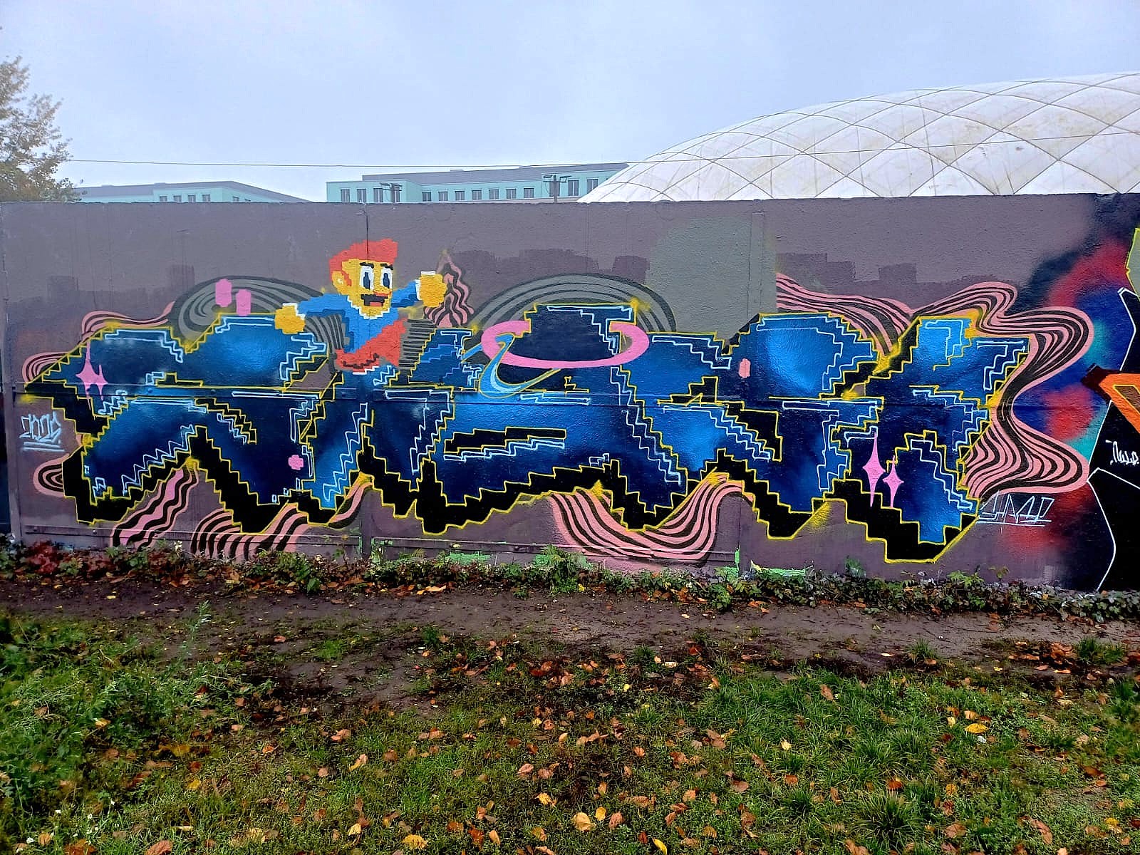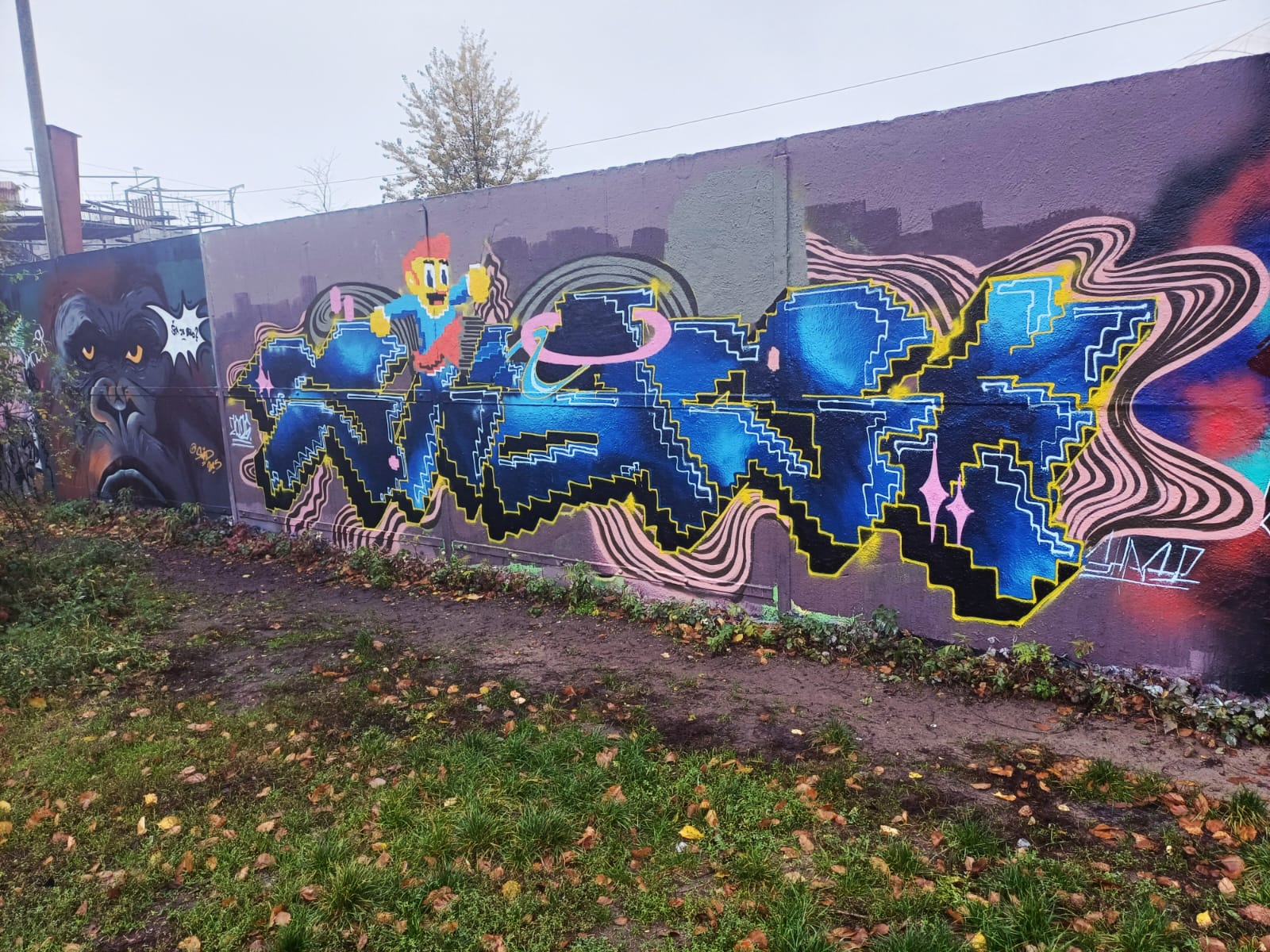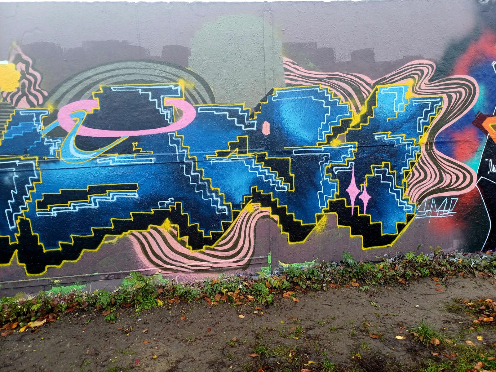 The graffiti on the left is from PYRO and the graffiti on the right was made by PSIK