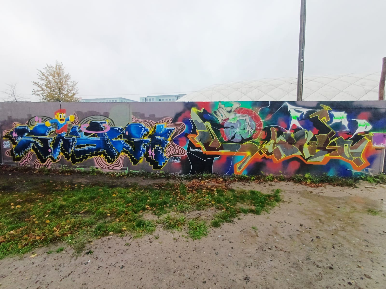 The graffiti on the left is from JAZZ and the graffiti on the right was made by NILD