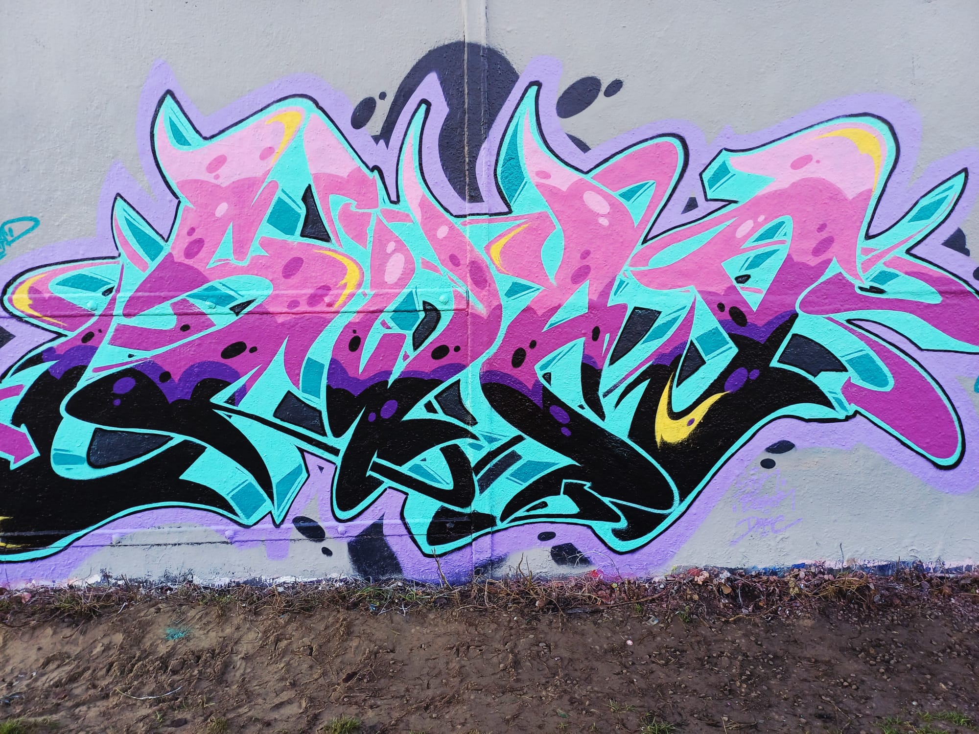 The graffiti on the far left are from SMOKIE, CRED, FABS and BÖSER, and the graffiti on the far right is from SEC