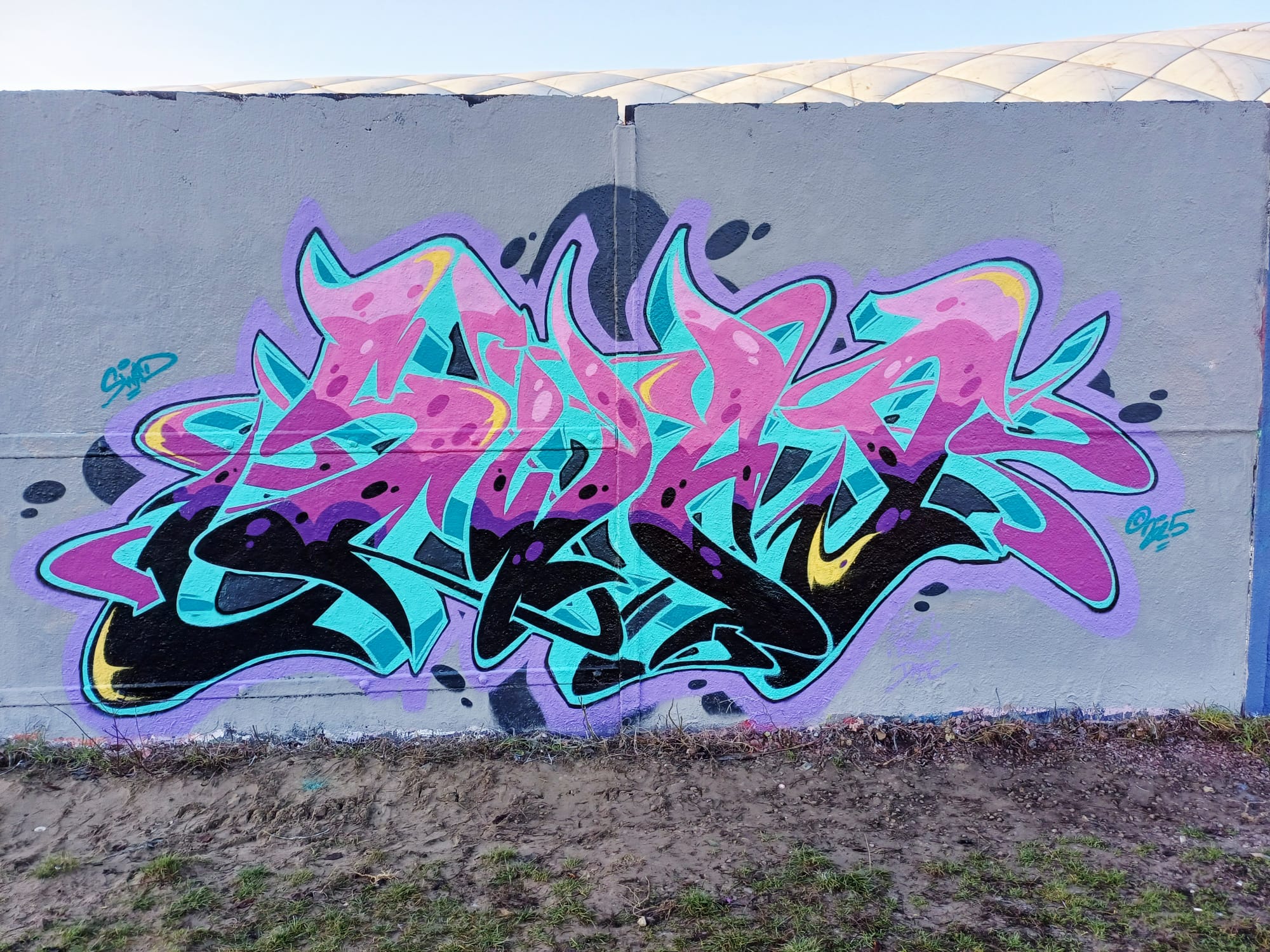 The graffiti on the left was made by RYAK and the graffiti on the right is from MORD