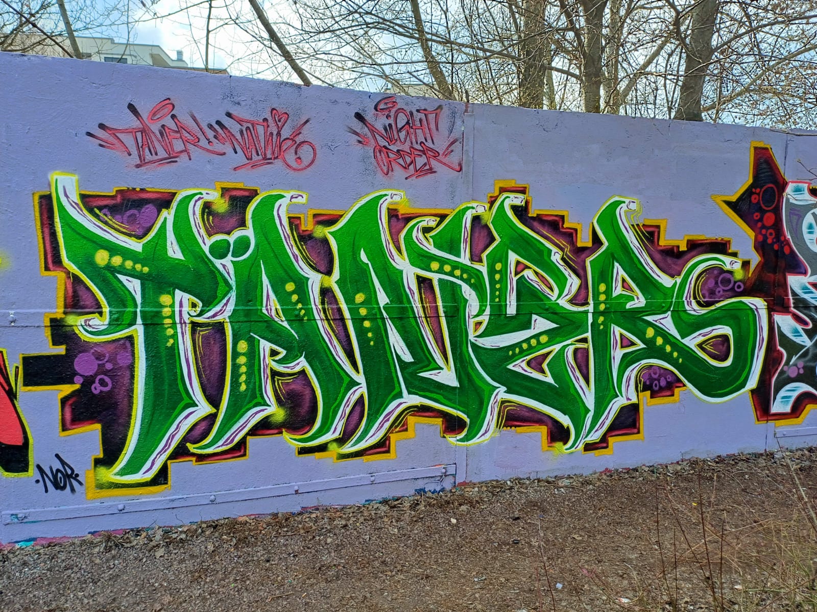 The graffiti on the left is from the NOR CREW and the graffiti on the right was made by KORD