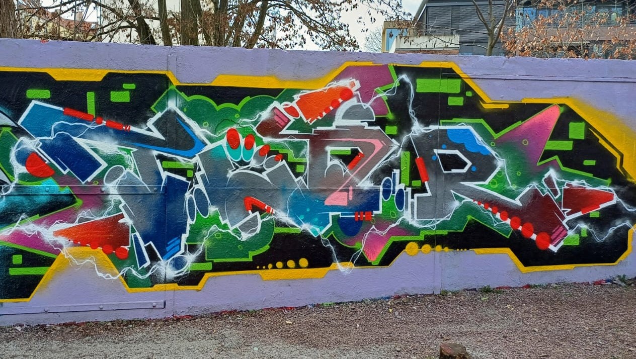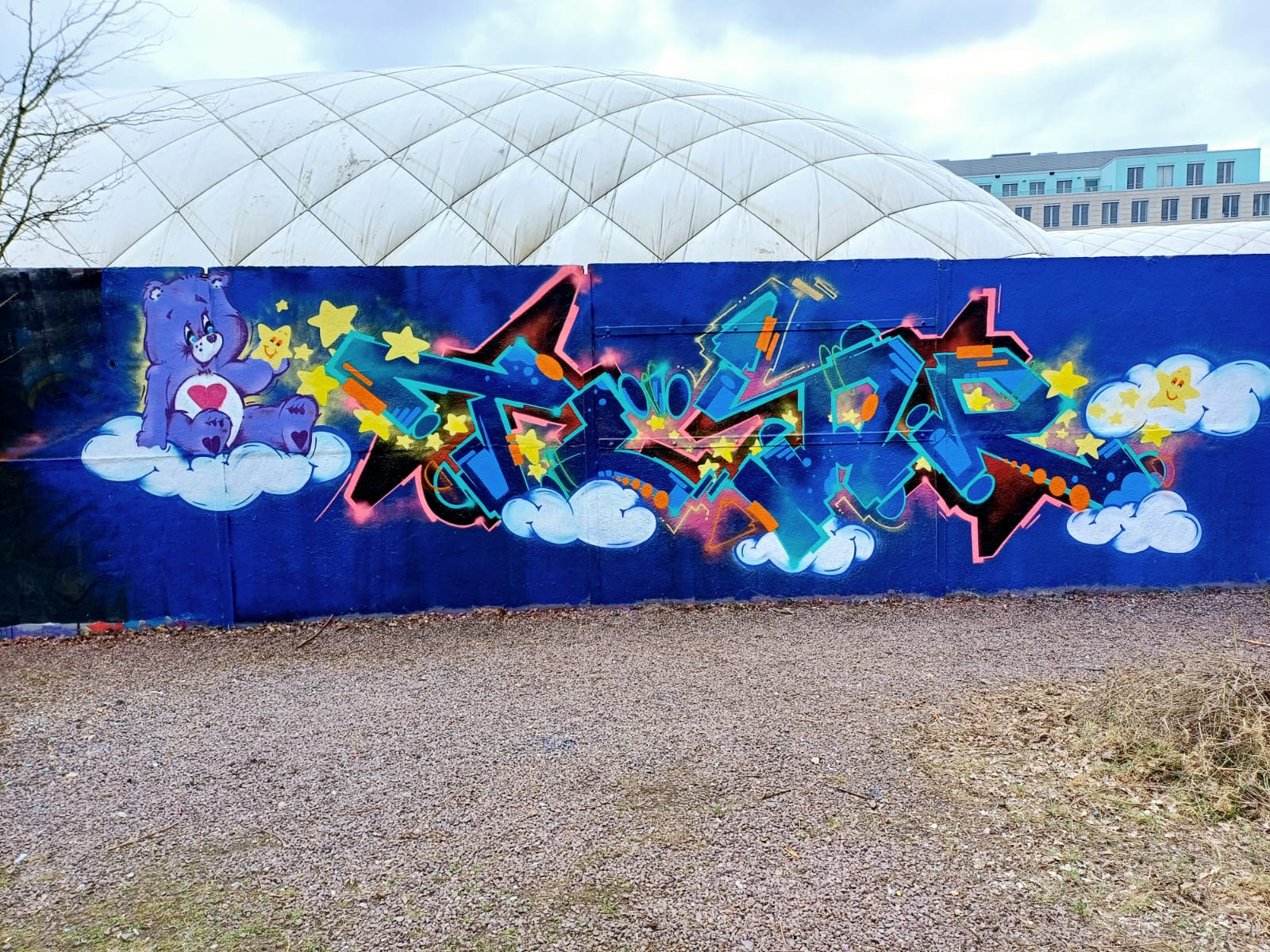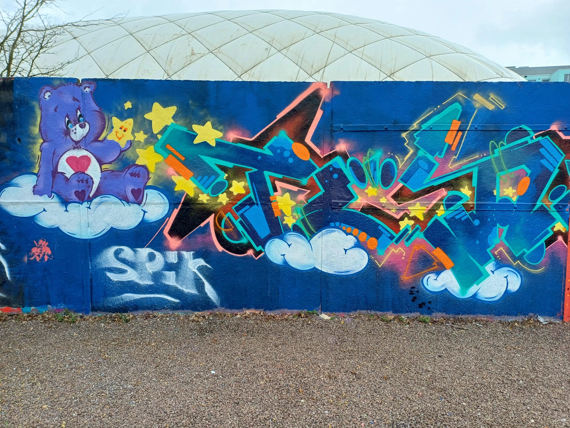 The graffiti on the left is from EWAK and Silver the hedghehog was made by THOMY