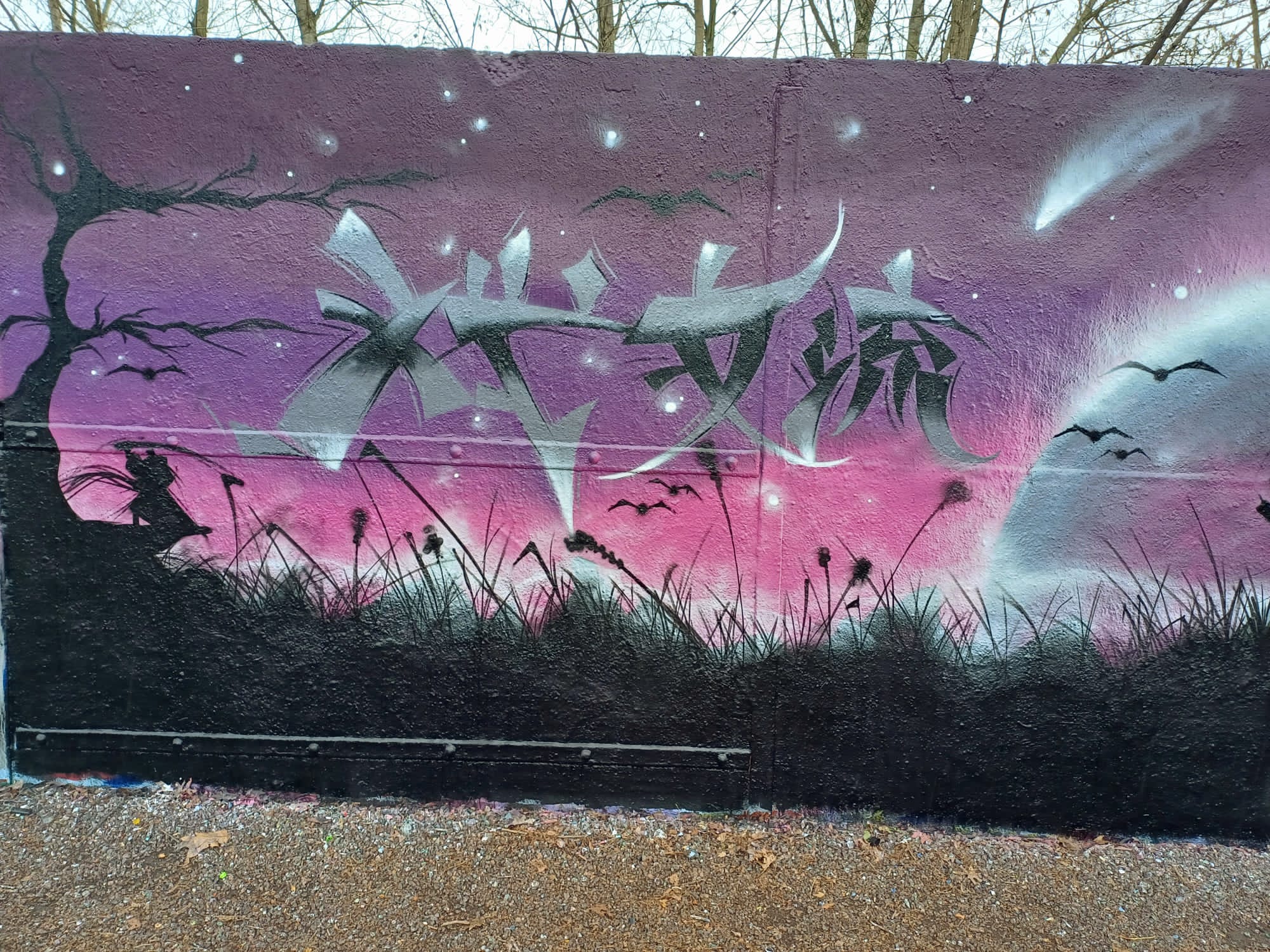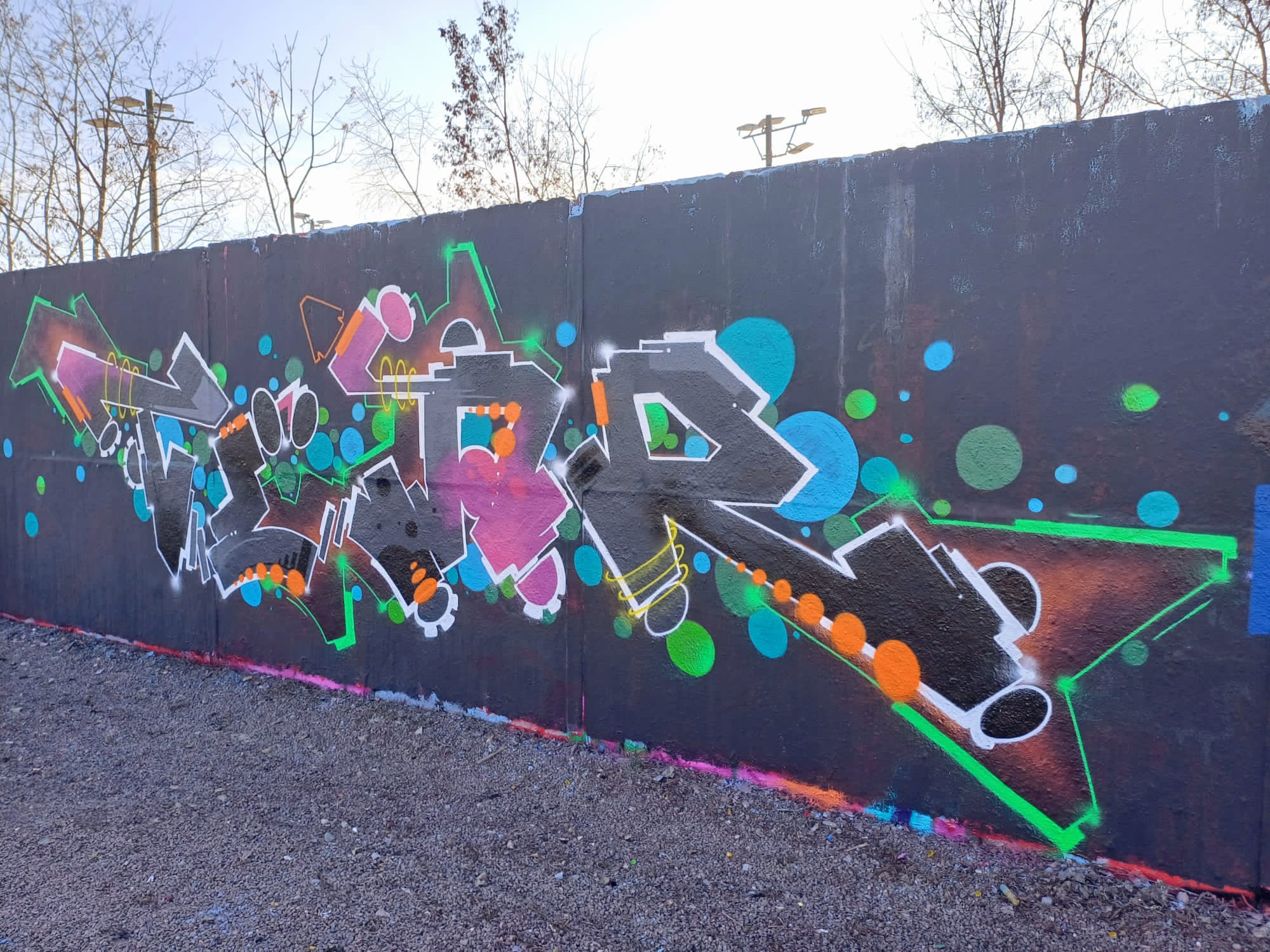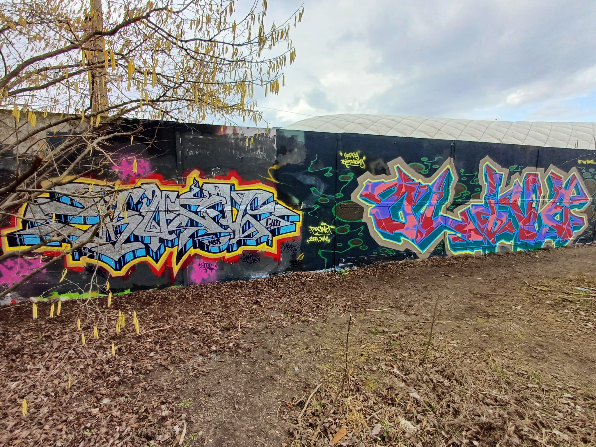 The graffiti on the left is from EWAK and Silver the hedghehog was made by THOMY