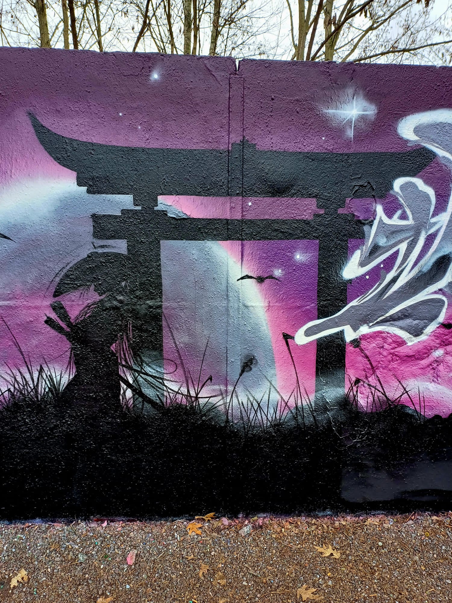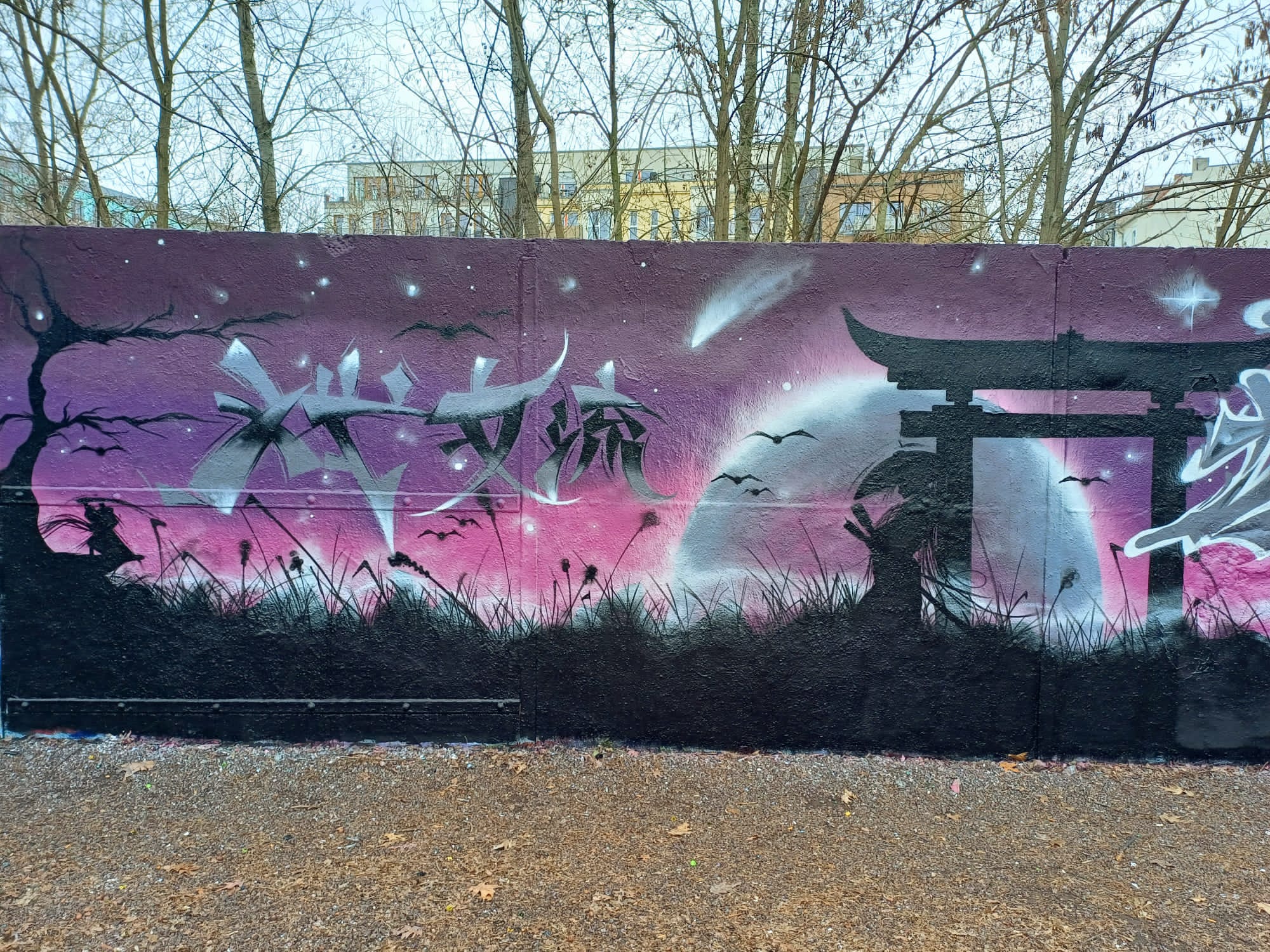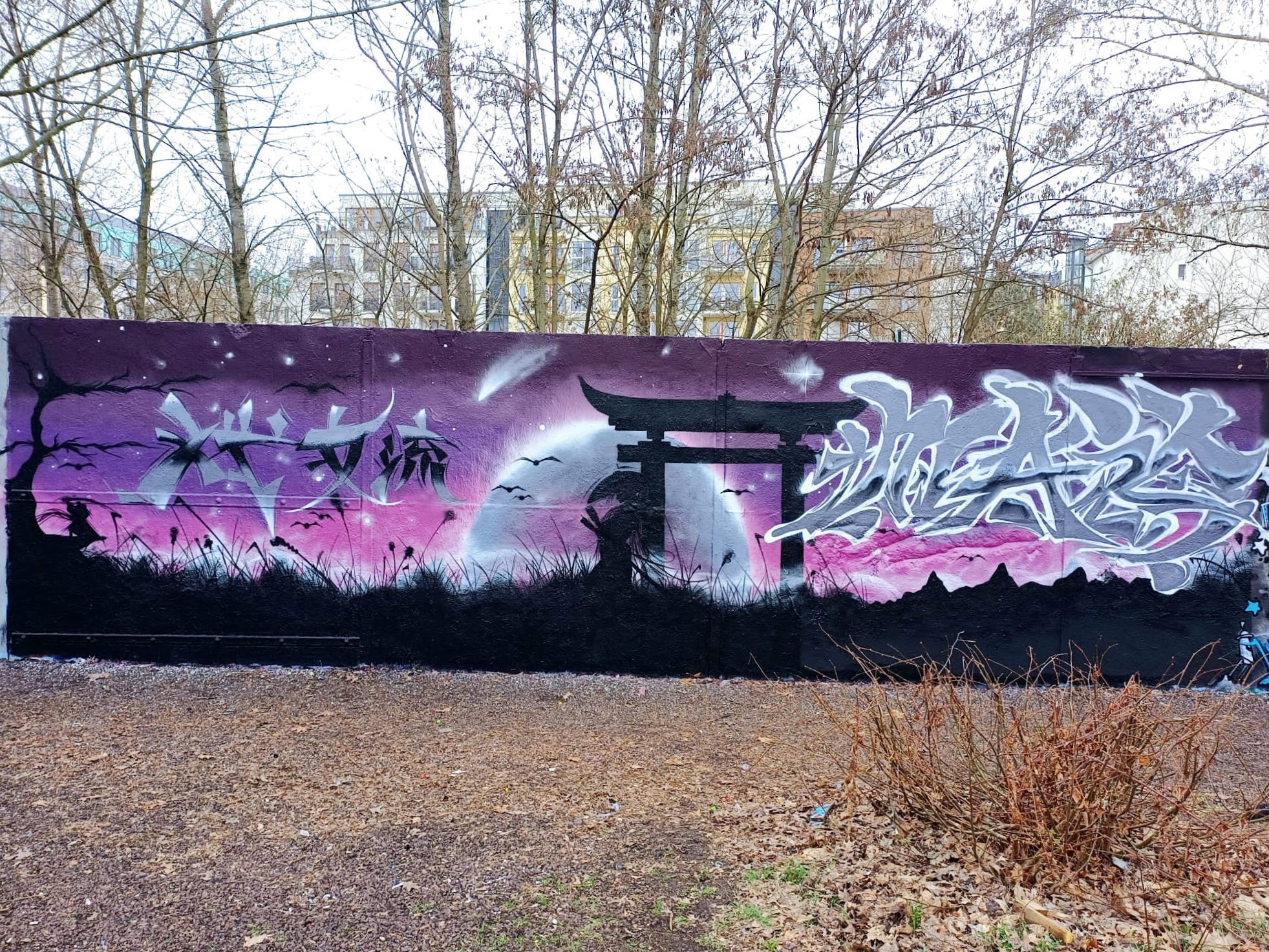 This great concept wall in Samurai style was made together with MAIS, who did the graffiti on the right. The background was made by both artists.