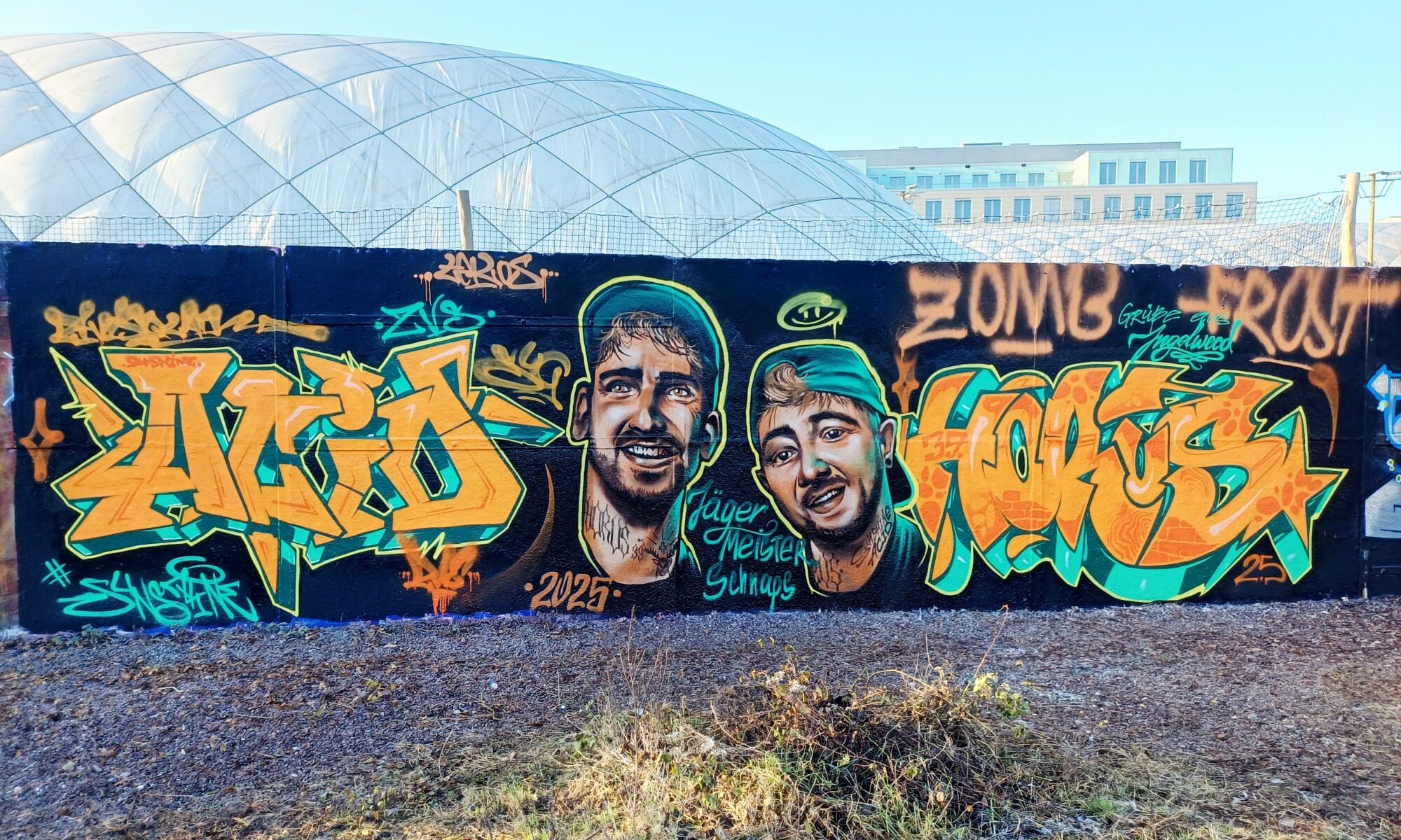 This tribute wall to the two rappers was made by FROST and ZOMB from the ZVS CREW from Ingolstadt.