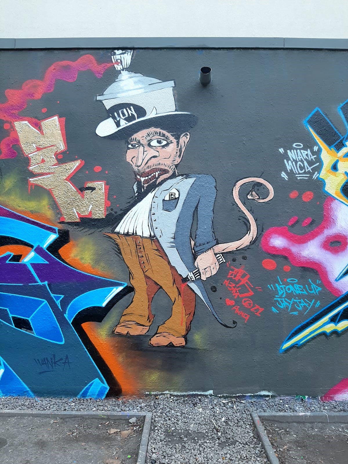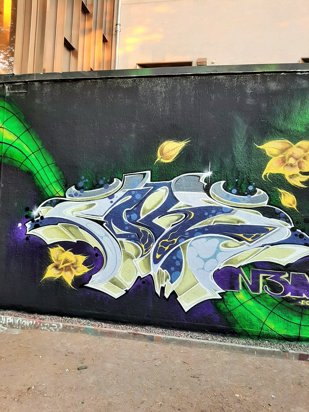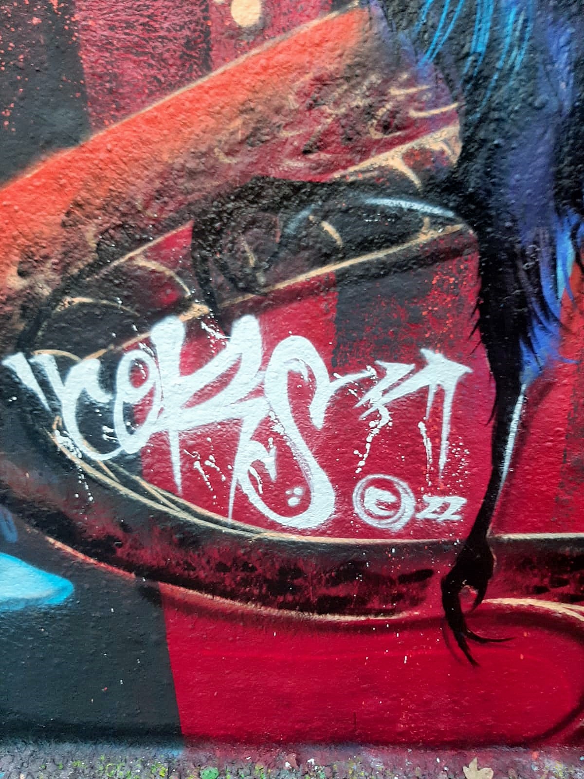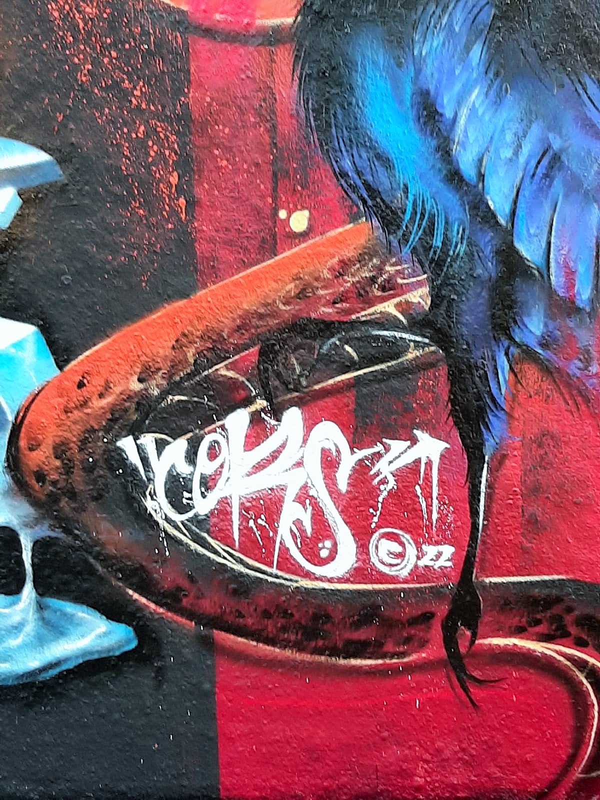 The graffiti on the right is from DEJOE, the character in the middle was made by CORS ONE and the graffiti on the right is from INKAONE.