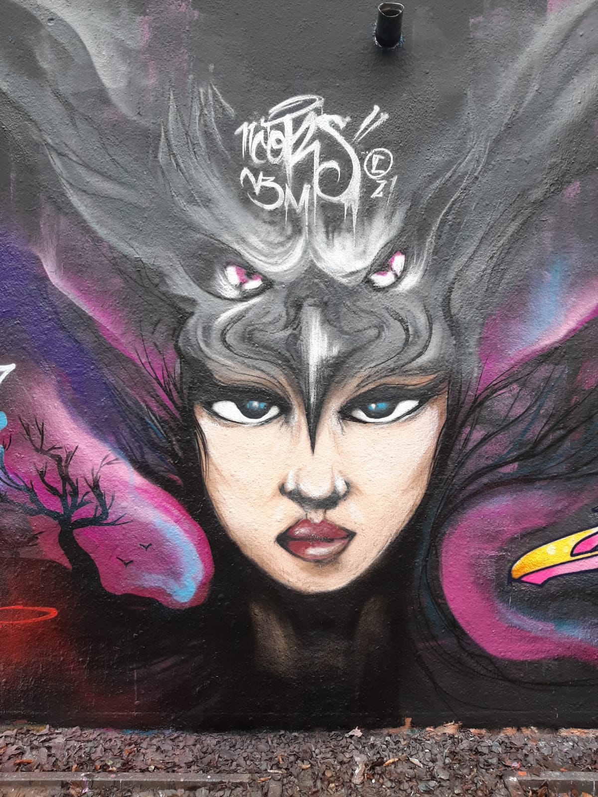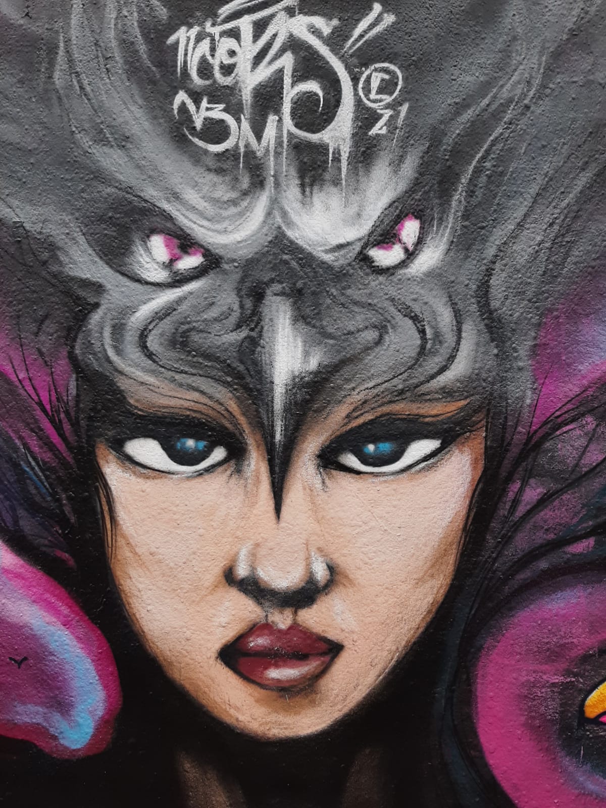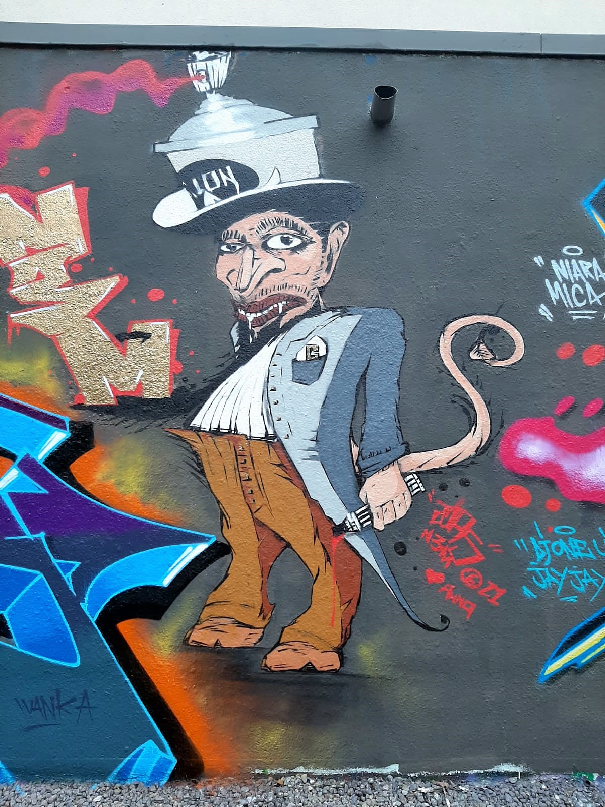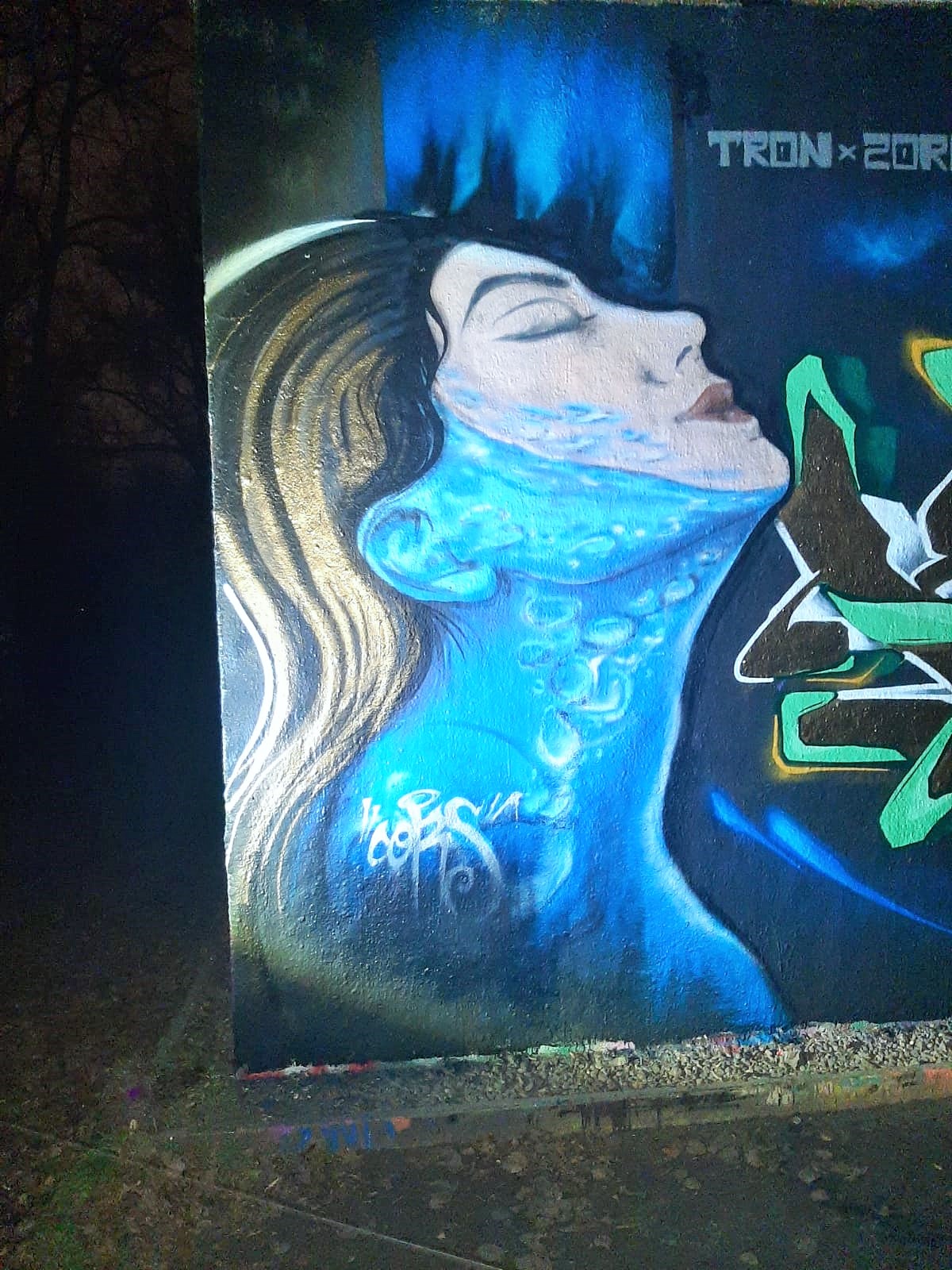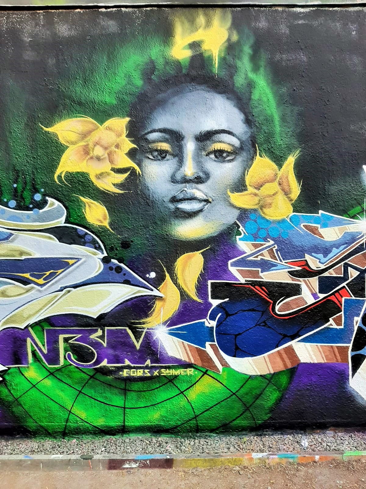 The graffiti on the right is from DEJOE, the character in the middle was made by CORS ONE and the graffiti on the right is from INKAONE.