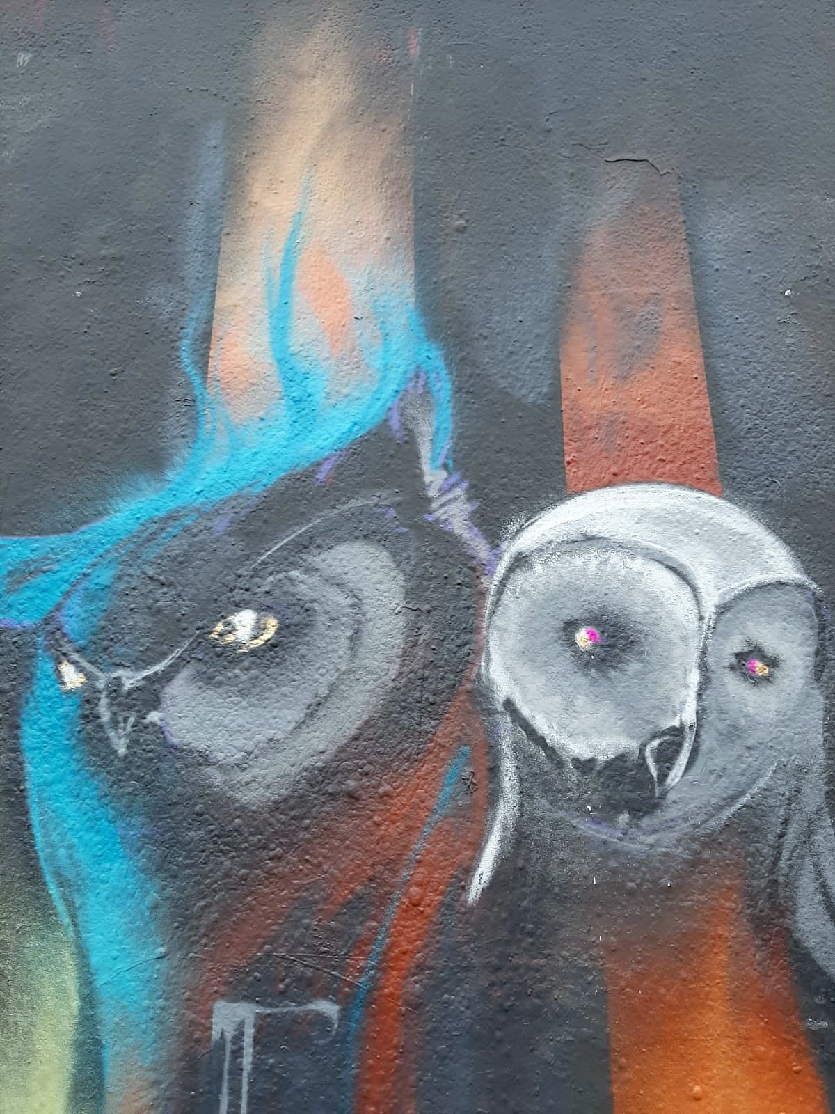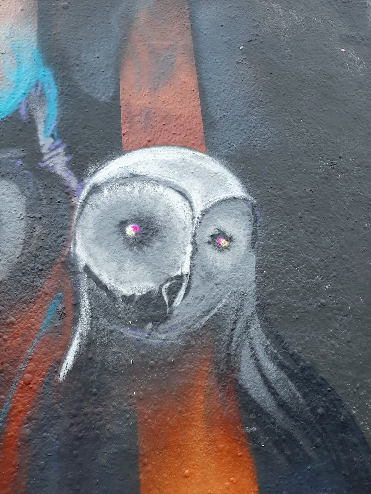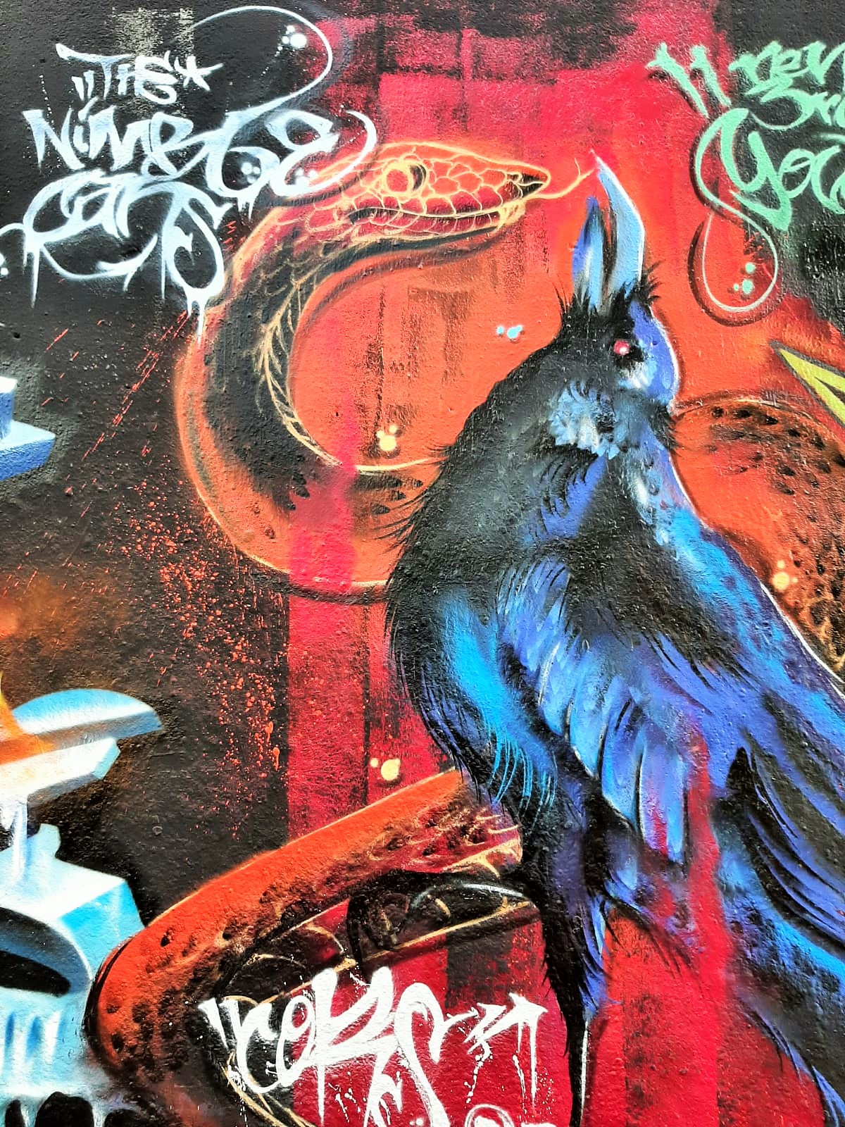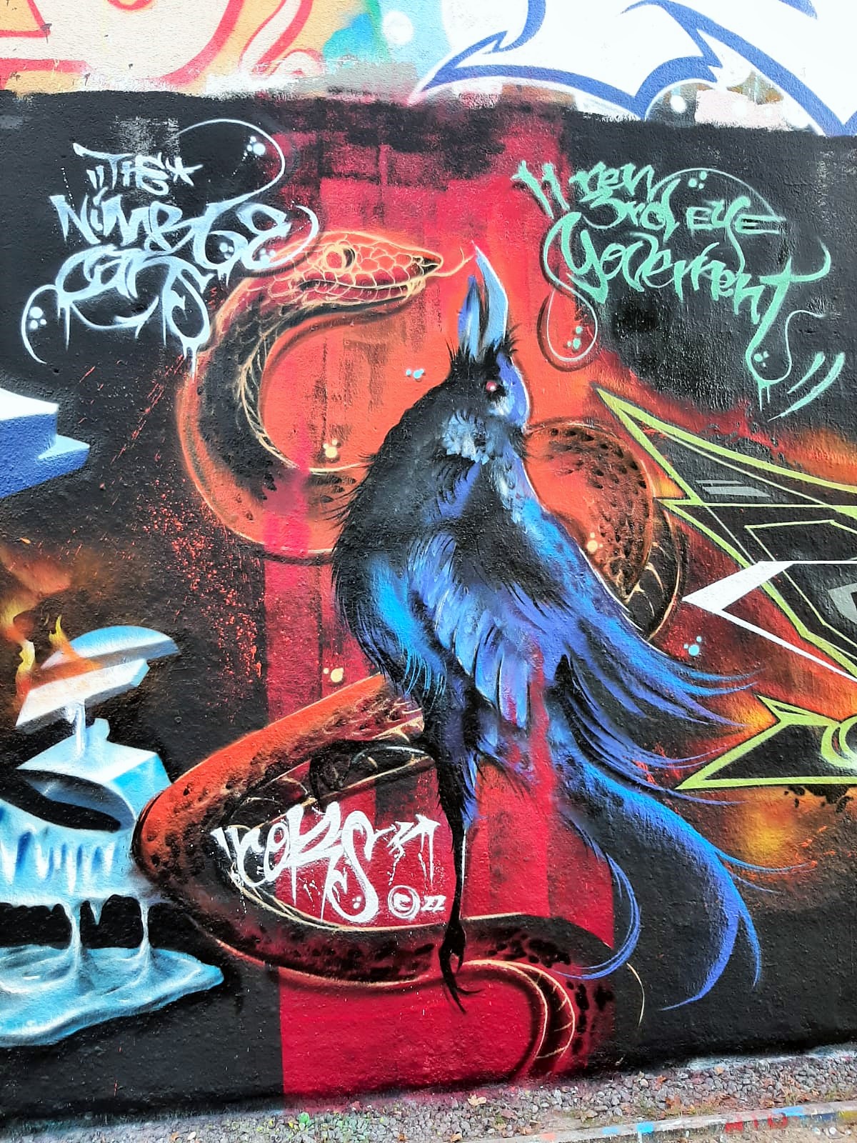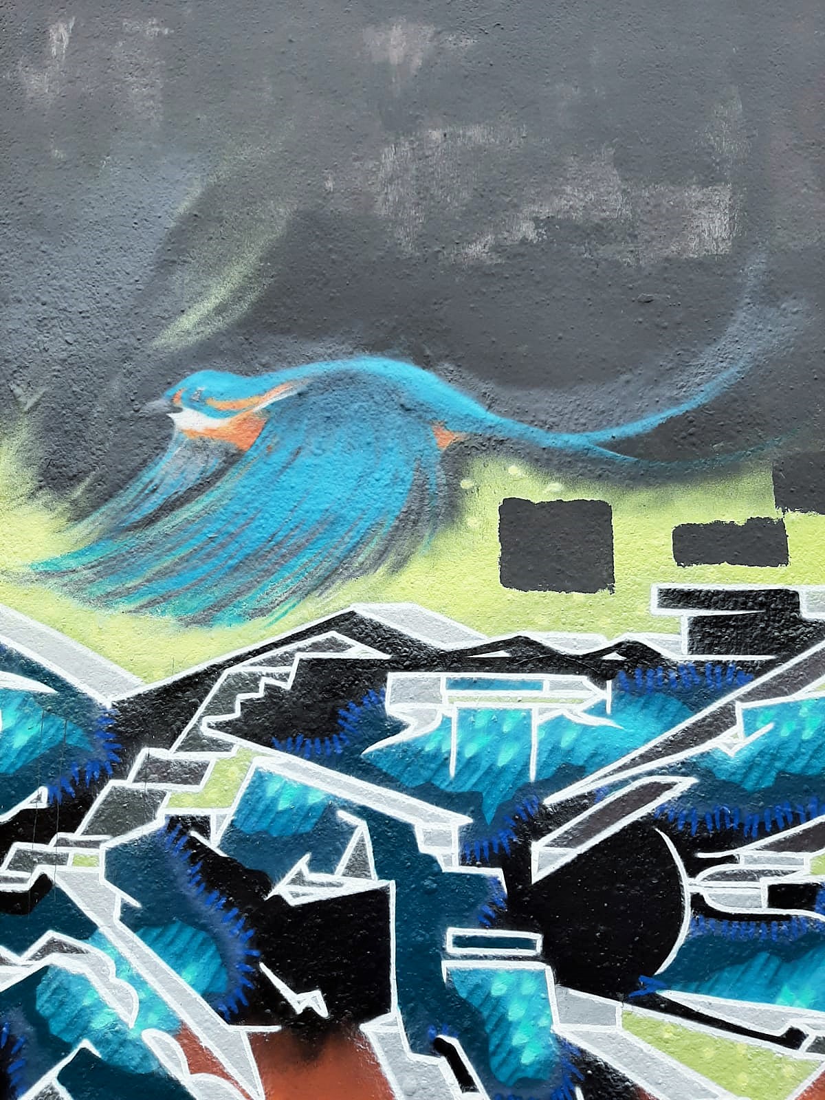 The tiger on the left was made by CORS ONE, the graffiti is from TRON 26 and the green bird character above was made by SAF.X. The graffiti to the right is from KAME and the rabbit character again from SAF.X.