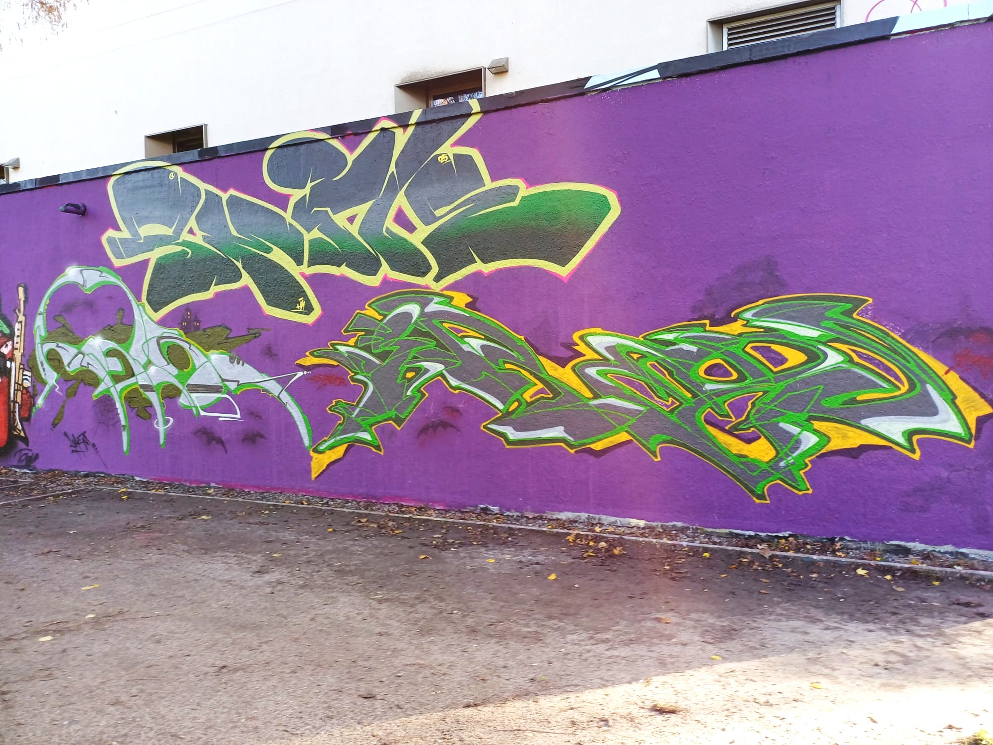 The graffiti on the far left are from MEKO and SMILE, and the graffiti on the right is from KIMS