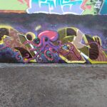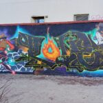 There is great graffiti art on the walls of the building and the property, right next to it is the youth center „Linse“ where you can find as well great art. Here on the collection page you can find all the works sorted according to the respective artists around the building complex.