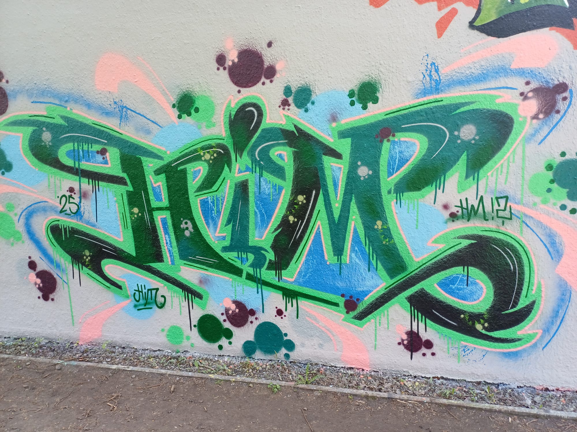 The graffiti on the left are from MORID and MEKO, the graffiti above was made by VOMEX and the graffiti on the right is from ECU