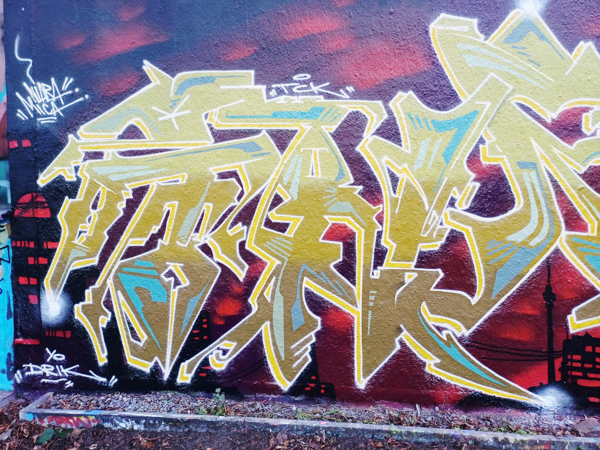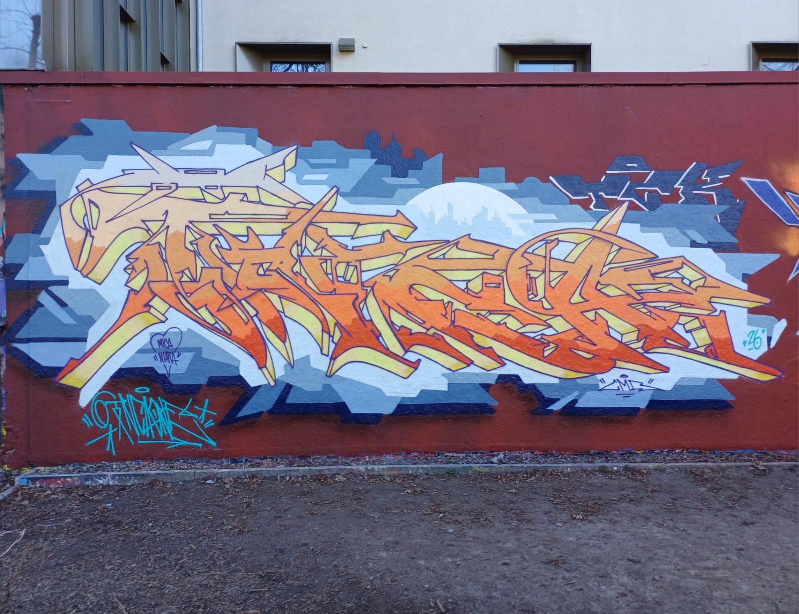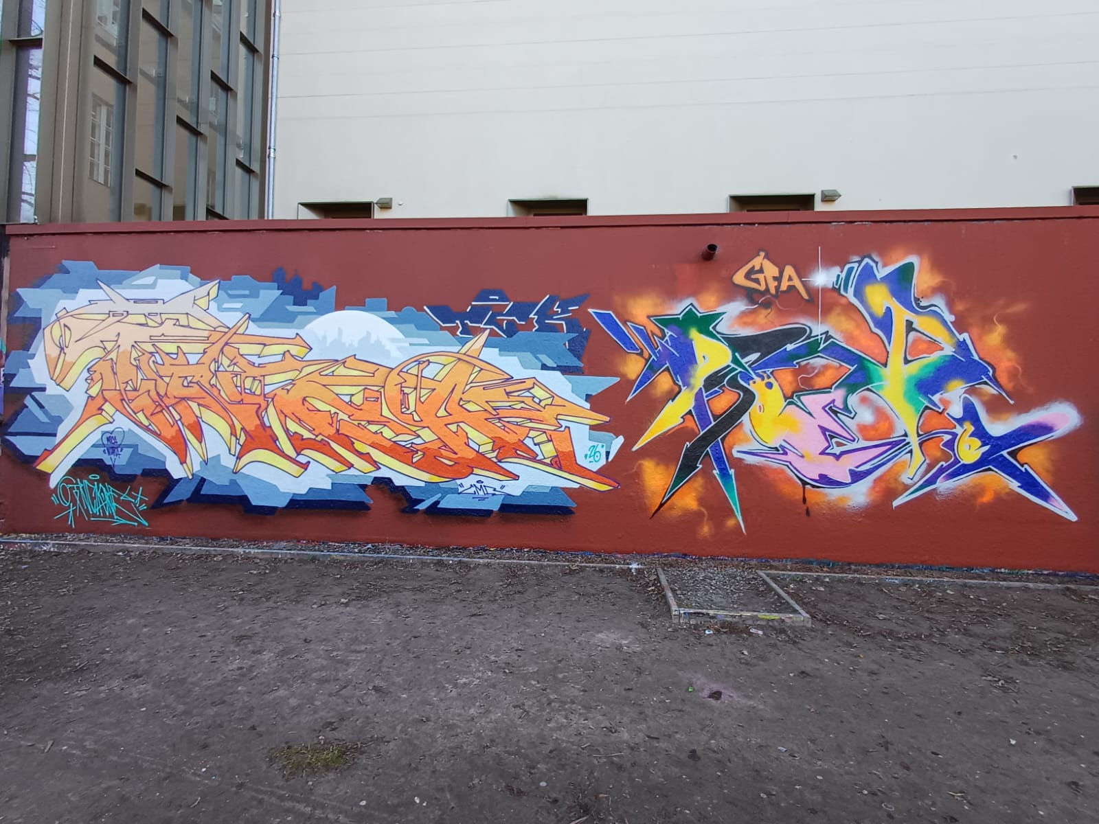 The artwork on the left was made by OLAF OBACHT aka GLURAK and the graffiti on the right is from MOKOE