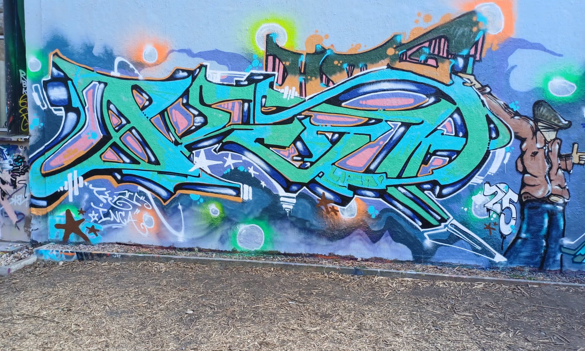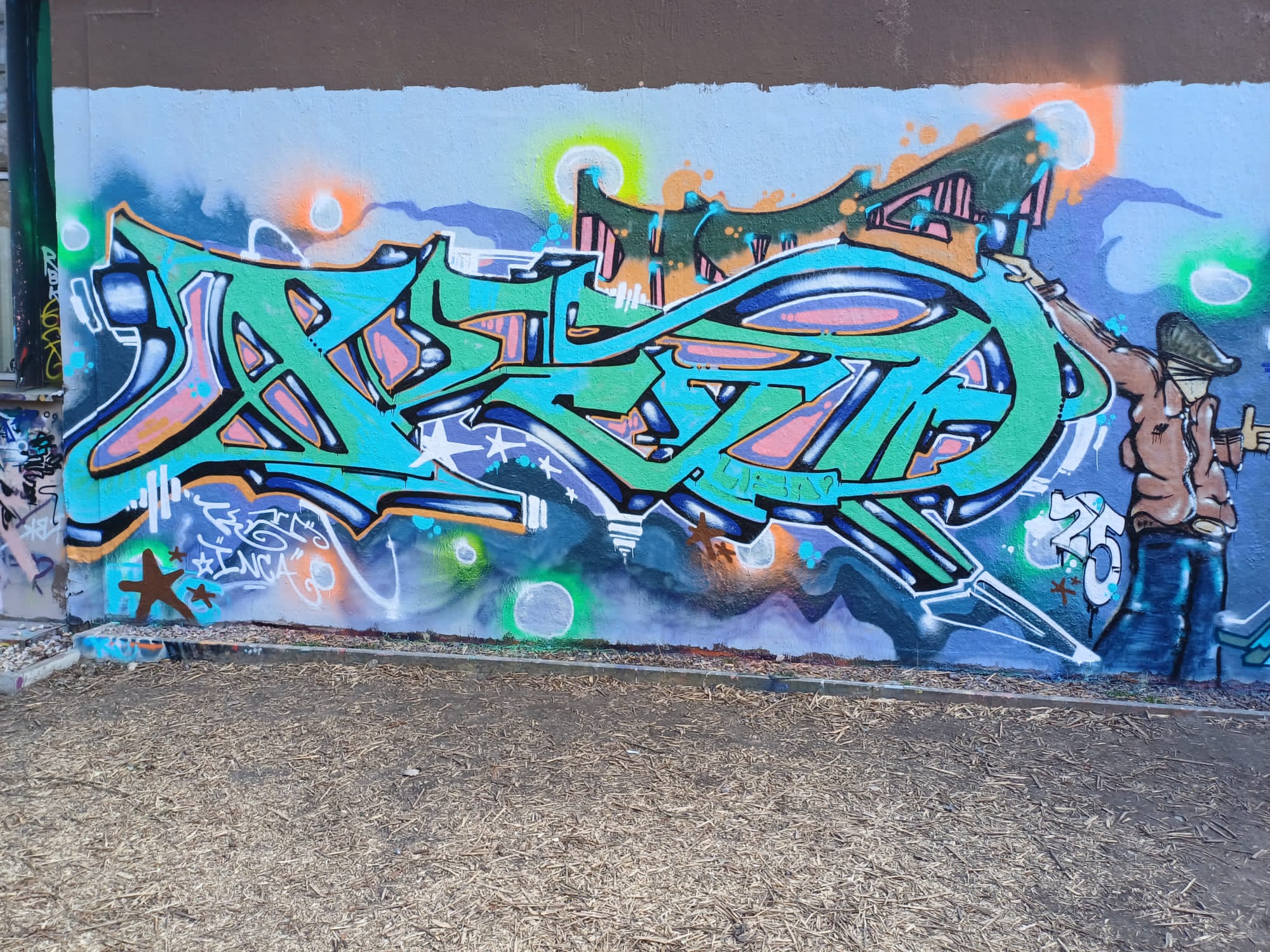 The graffiti on the right is from INKA ONE