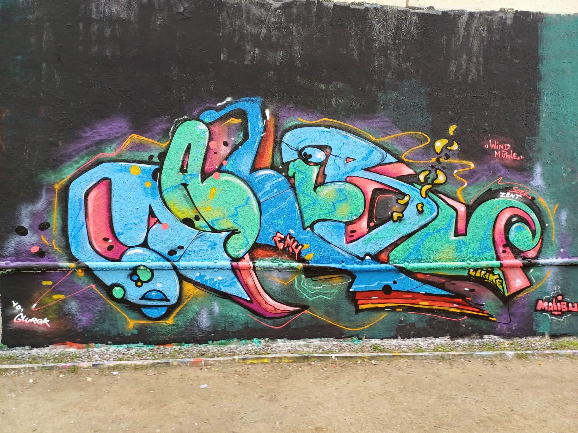 The graffiti from left to right are from TOOM, DIPL, MALIBU and KIMS