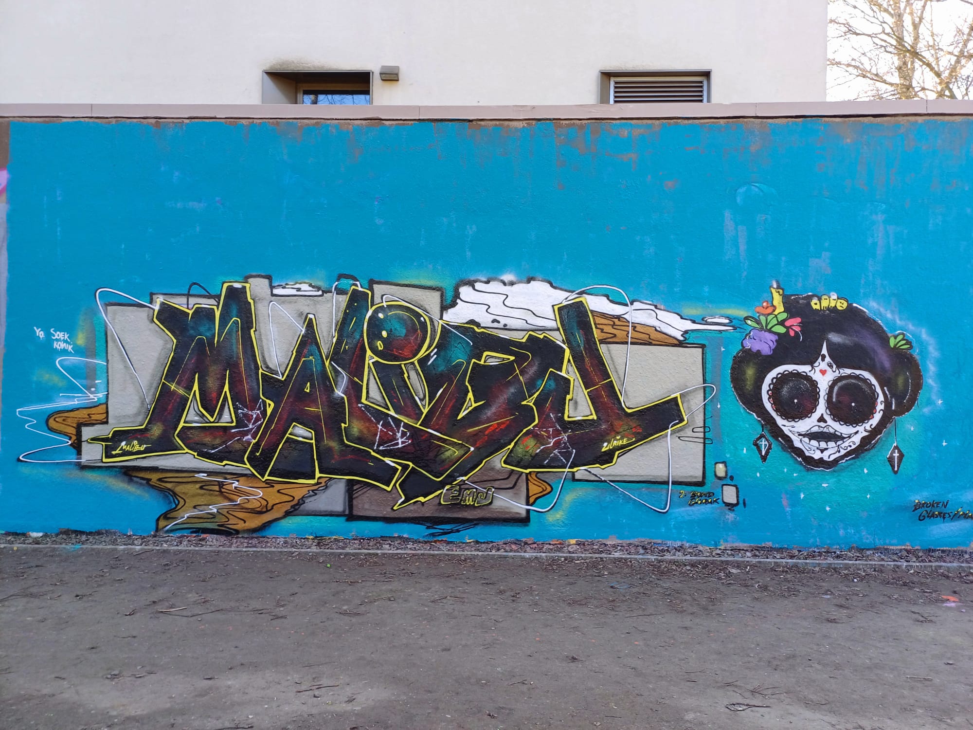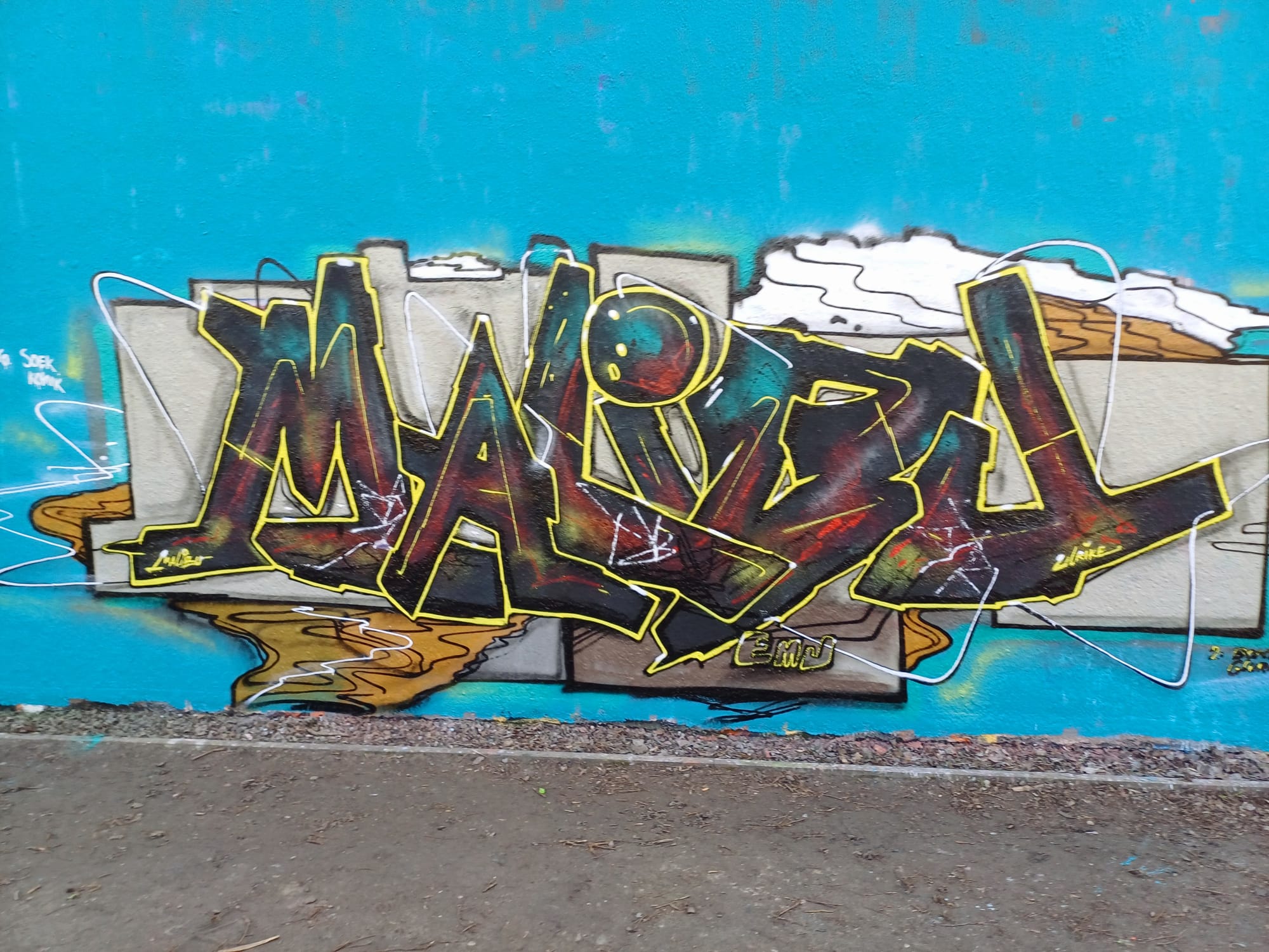 The graffiti made on top is from MOM. Unfortunately we don’t have photos of the whole artwork from MALIBU. If you have photos of it, you can send them to info@vagbundler.com and we will add them.