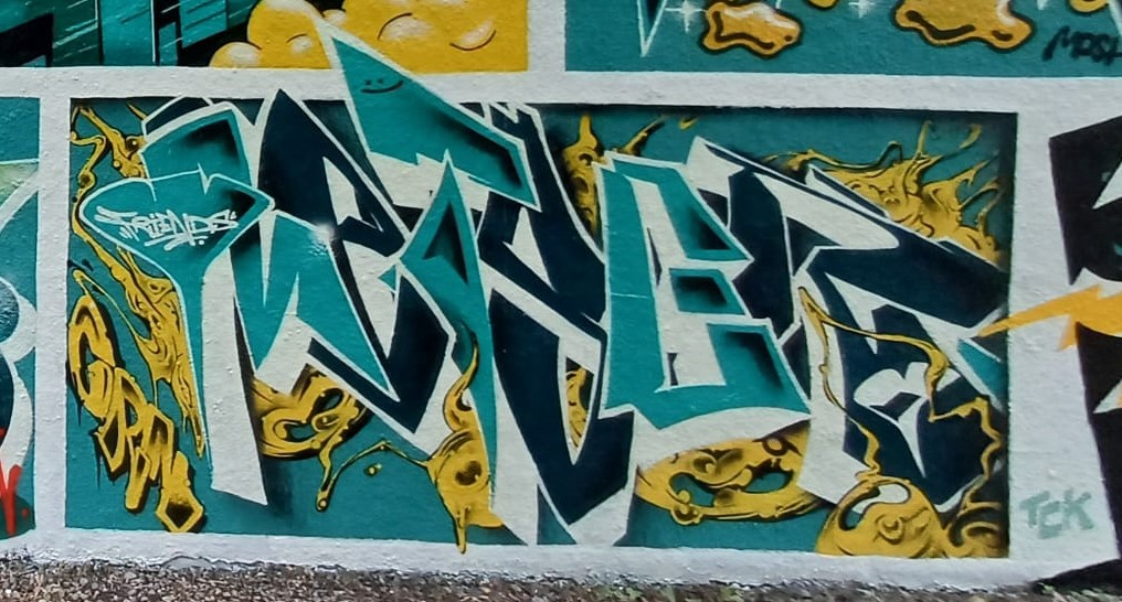 On May 13 and 14, the fantastic DOC CREW organized a kind of farewell event for the wall on the Parkaue. Since then, the spot has been fenced off and no more painting has taken place. But on the weekend in May, the spraying was all the more industrious and members of the DOC CREW and artist friends created a large comic-style collaboration work around both wall parts. Everyone was given a window for their piece. In the top row of the left wall are the works of ARGH, BKOME, BOND, KIMS, MOSHA, NATUR 189 and SUPPE, in the bottom row the works of FABIO, SPLIT, JAZZ, CHUK, MOKOE, METS 7, RUPH and WILD. On the right wall in the top row are ETOE and ARGH and in the bottom row are FLATLINERS, QUASY and SKUR.