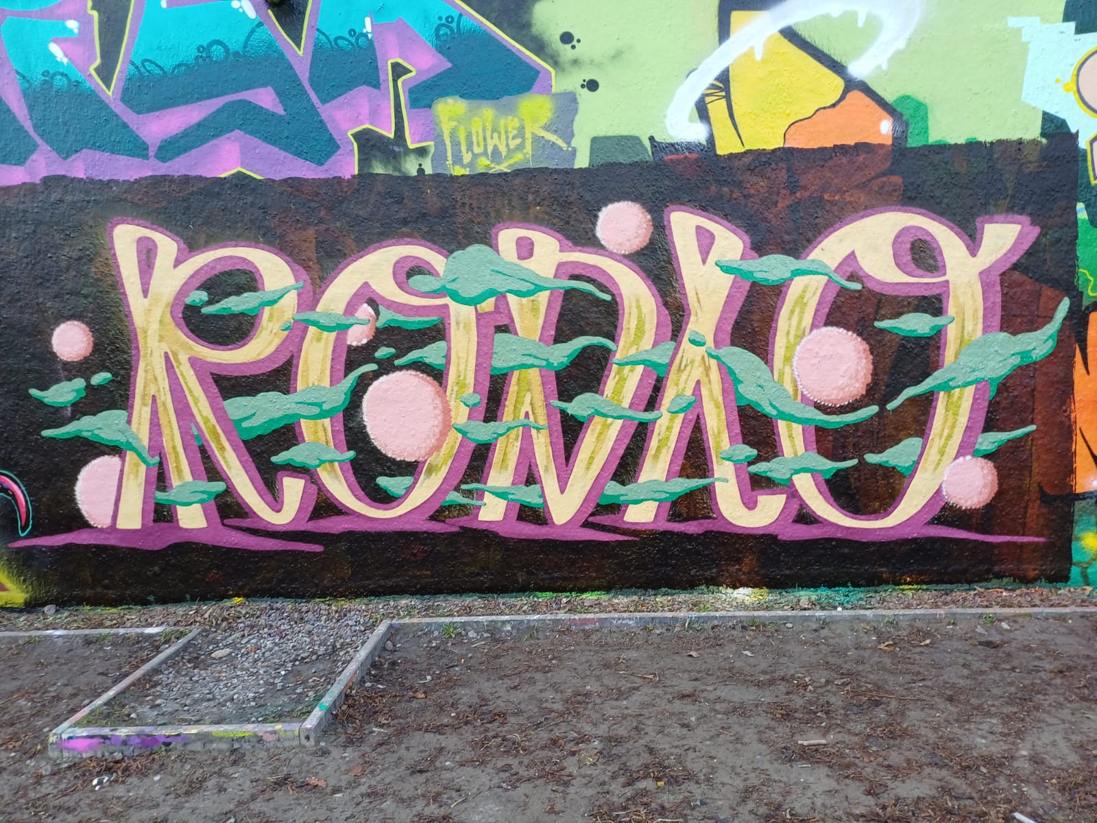 The graffiti above is from BISK and the graffiti on the left was made by PLET