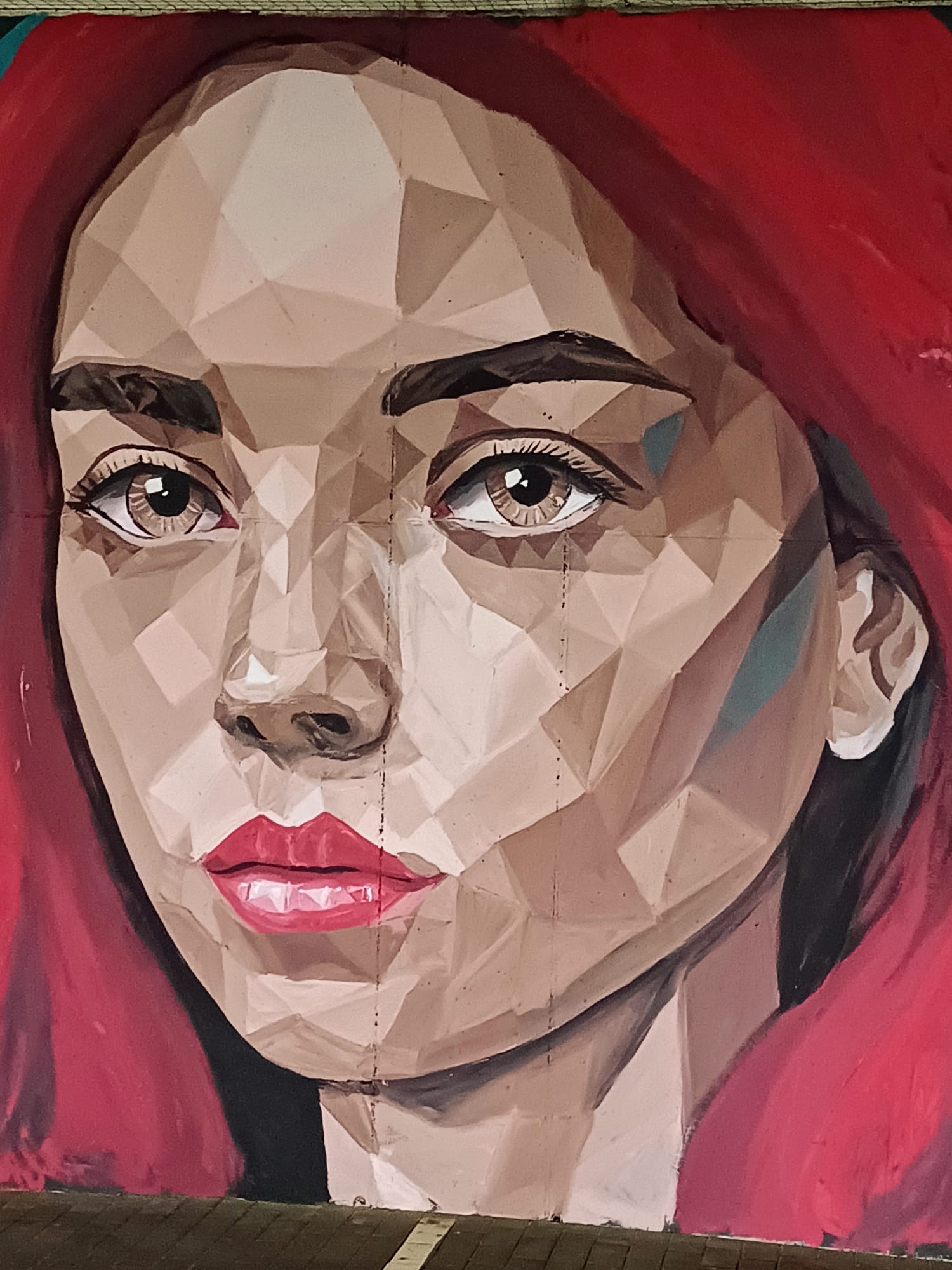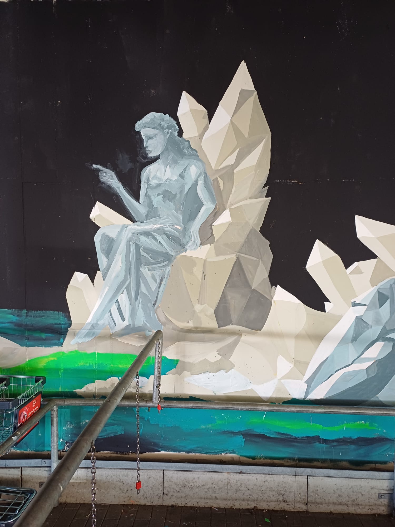 The shark on the left was made by ENNICOLOR and the artwork on the wall behind is from ORDINARIO