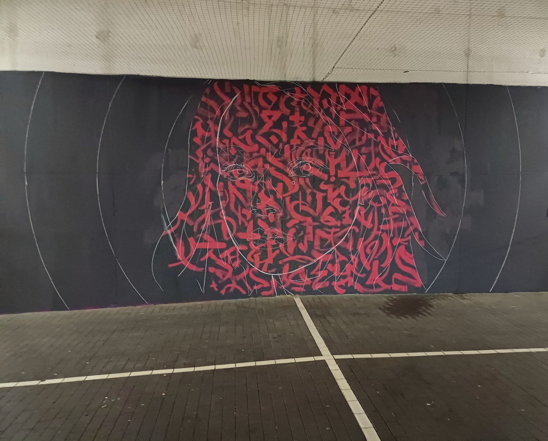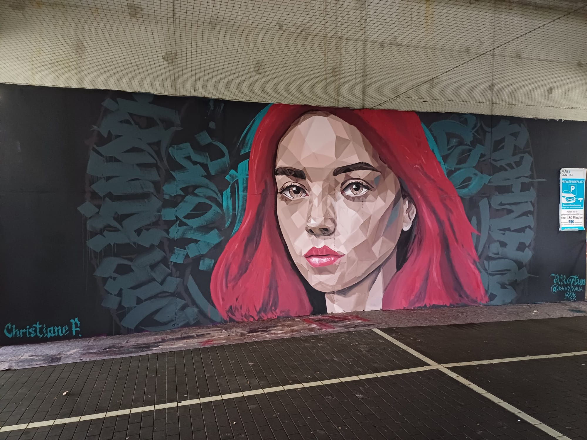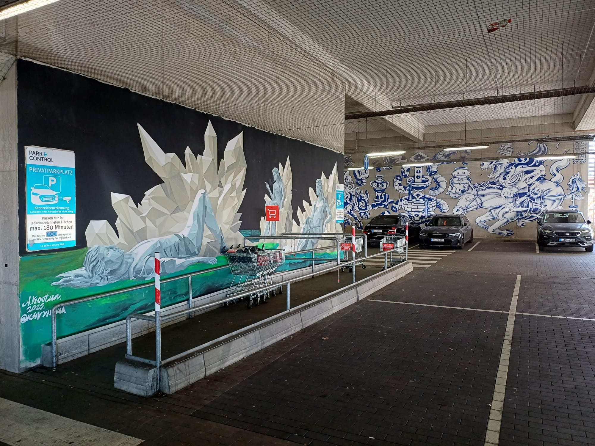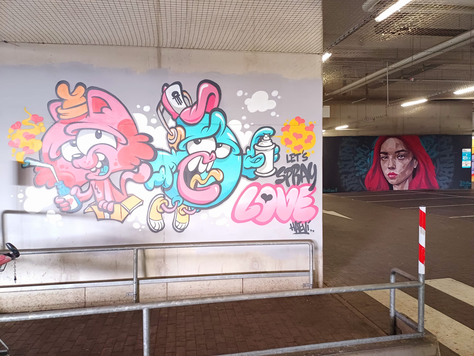 The graffiti in the front to the left was made by HAEVI and the artworks on the wall to the right are from DXTR and NASCA