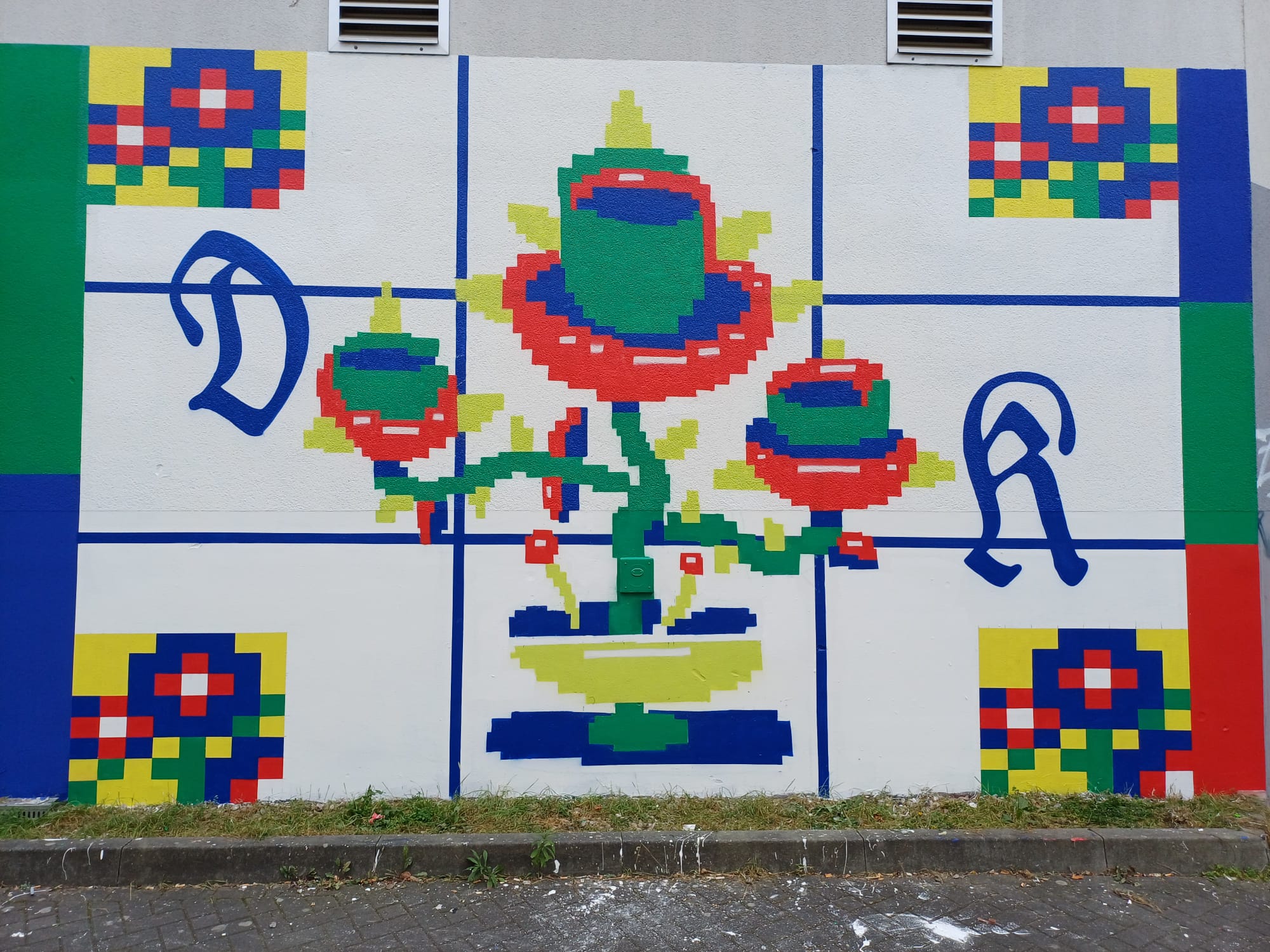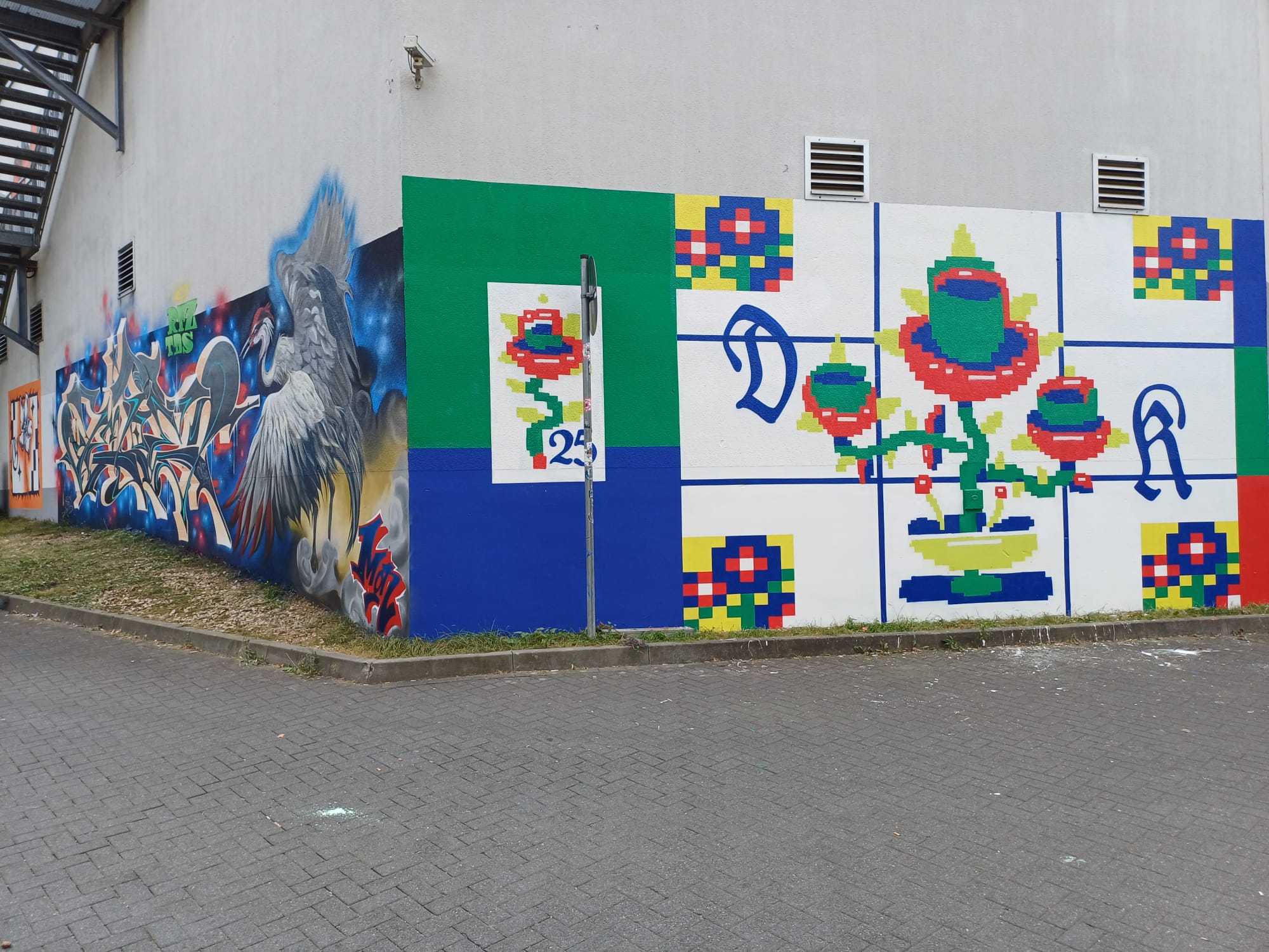 The bird around the corner to the left is from MON and the graffiti was made by DEJOE