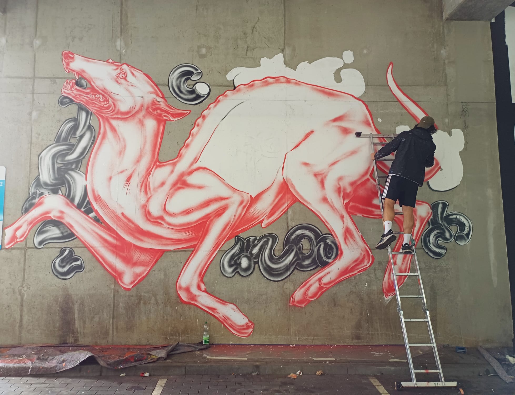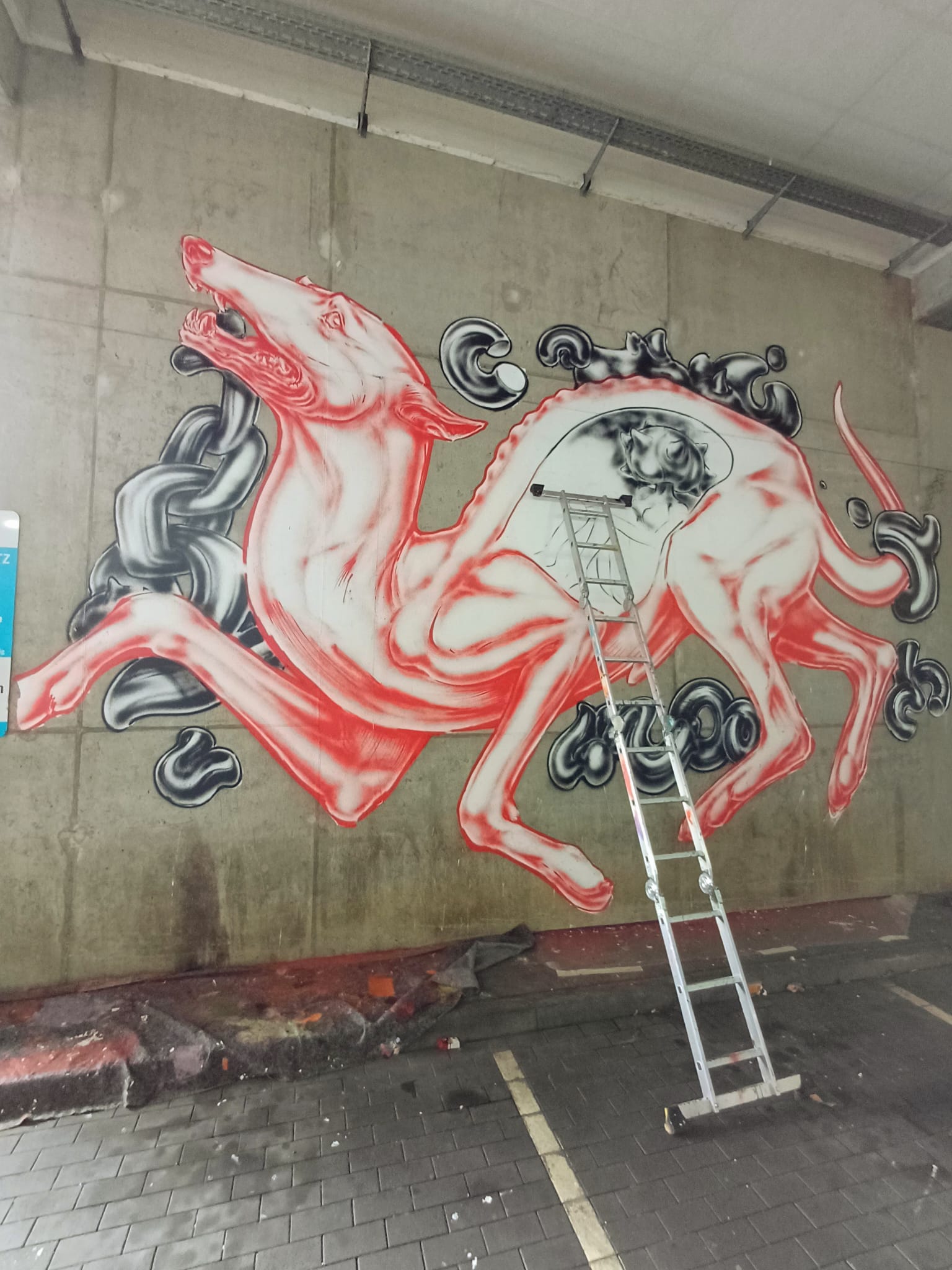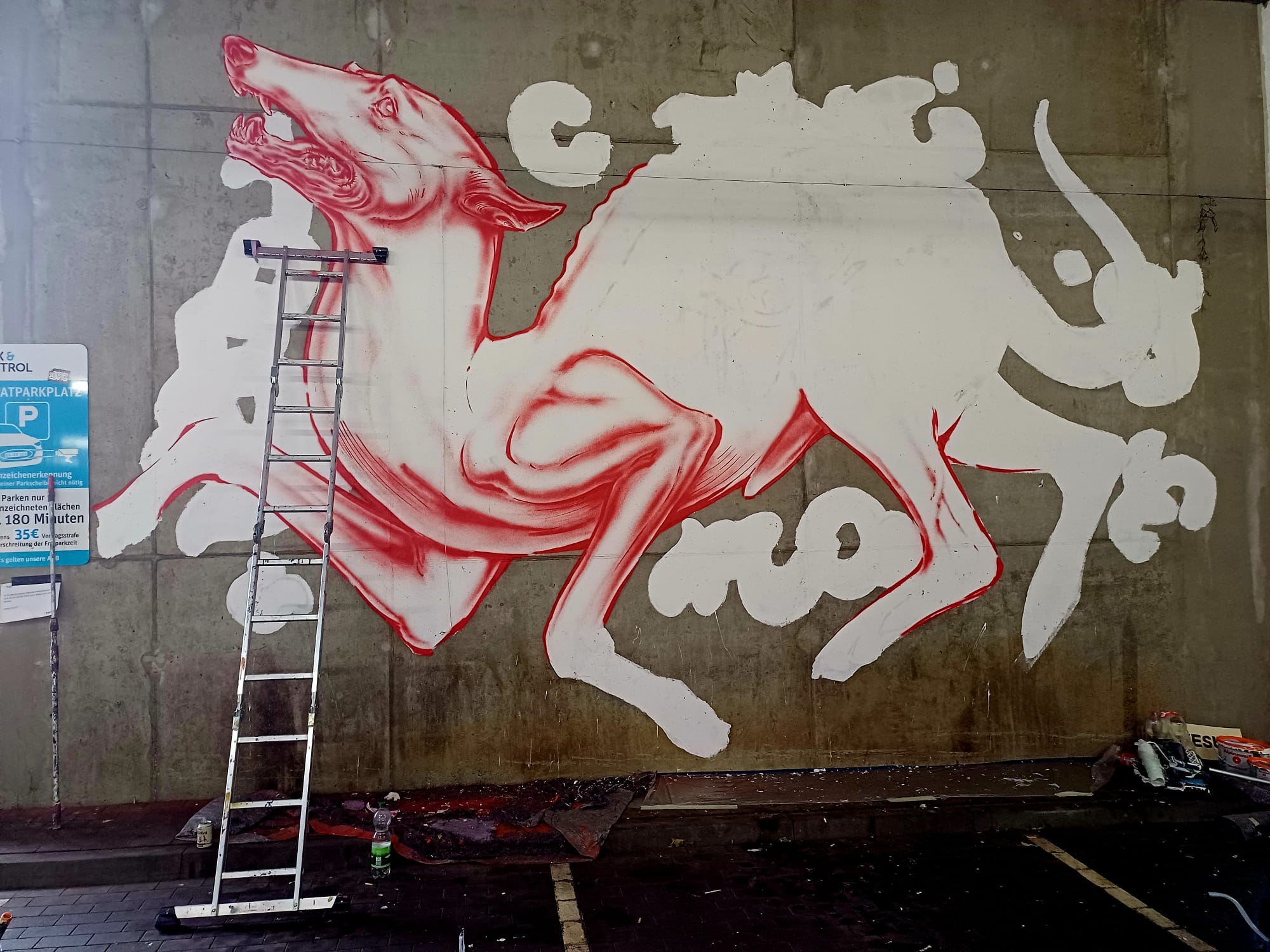 The artwork on the wall to the left is from HNRX and in the back you can see the artworks from ENNICOLOR and STEPHAN MEISSNER