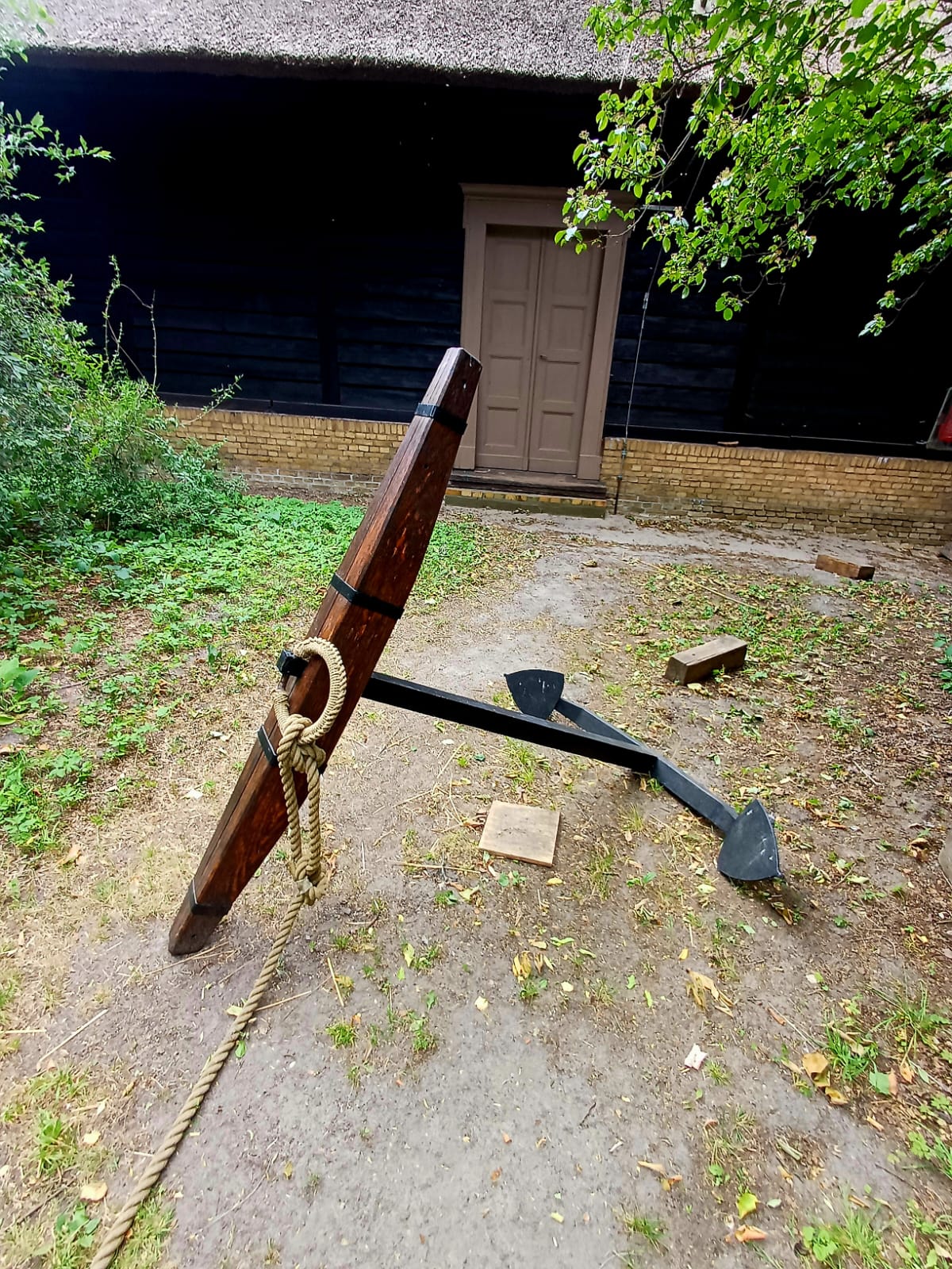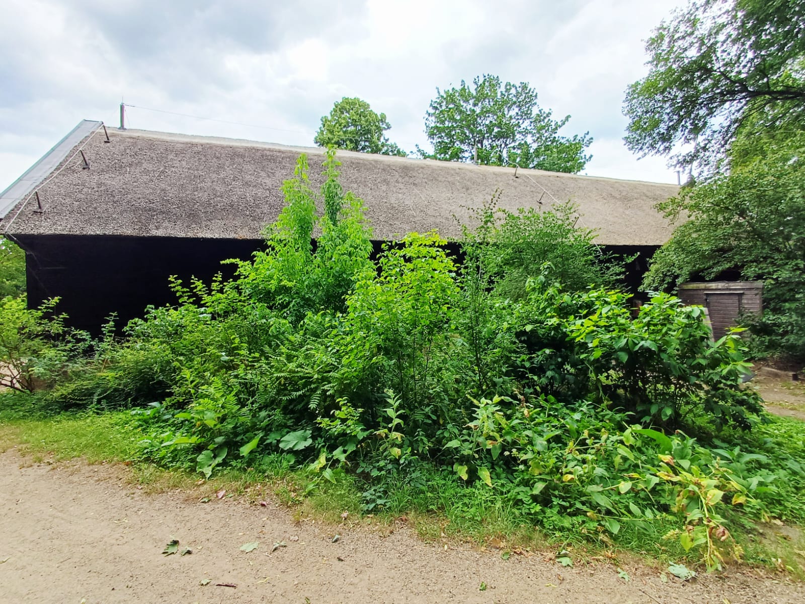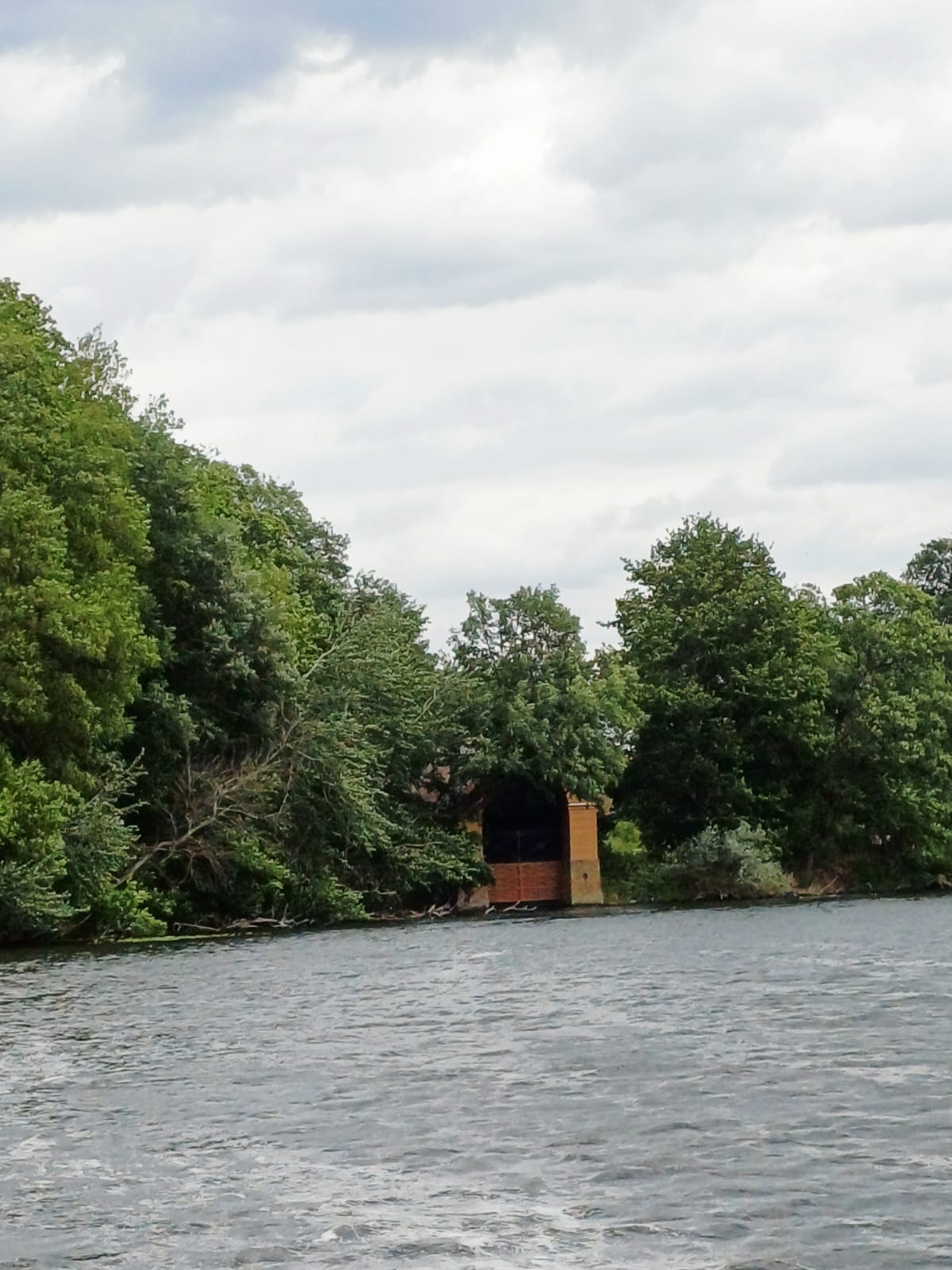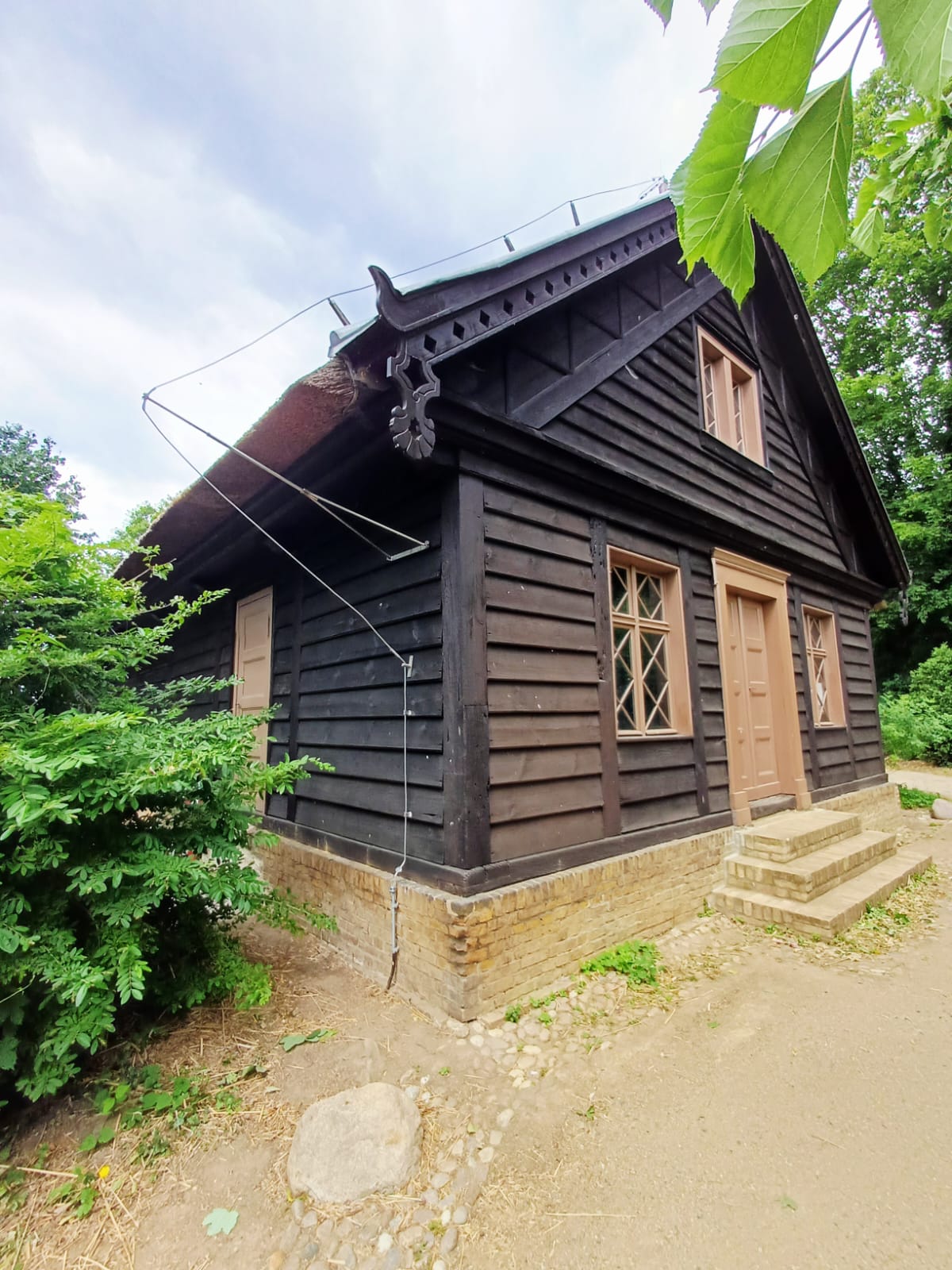 Such a prestigious, three-masted frigate reconstruction on a smaller scale of 1:3 was in need of suitable winter quarters. For this purpose, a boathouse was built at the south bank of Peacock Island according to designs by the court building supervisor ALBERT DIETRICH SCHADOW. The „Royal Louise“ was already able to move i during the winter season 1832/33. This hall building is a wood-boarded, half-timbered construction with a high, thatched, trussed roof that rises above the brickwork of the harbor basin. Particularly striking is the gable facing the water to the southwest, with its large entry gate framed with elaborate carving.