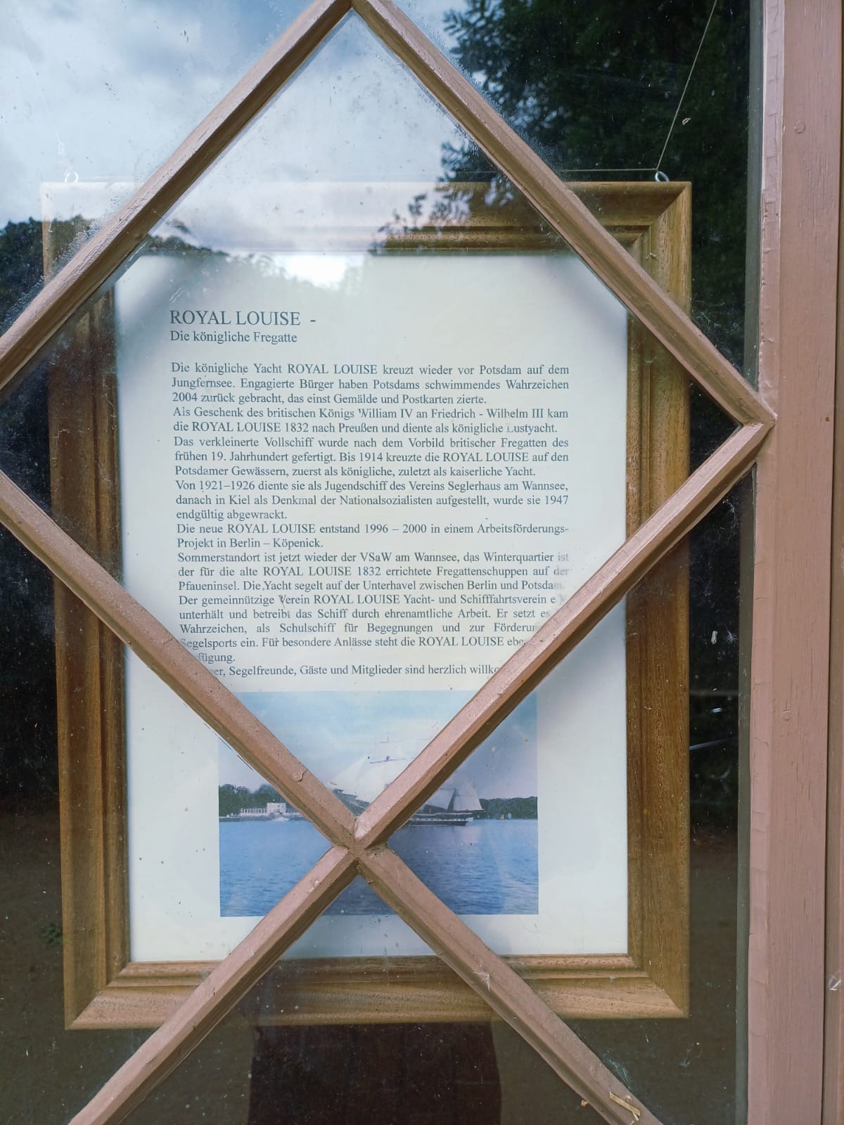 From 1921 to 1926, it served as a youth ship for the Seglerhaus am Wannsee club. It was then erected in Kiel as a memorial to the Nazis, and was finally scrapped in 1947. The new ROYAL LOUISE was built between 1996 and 2000 as part of an employment promotion project in Berlin-Köpenick. The ship’s summer home is now once again the VSaW (Federal Shipbuilding and Watersports Association) on Wannsee, while its winter quarters are in the frigate shed on Pfaueninsel, built for the old ROYAL LOUISE in 1832.