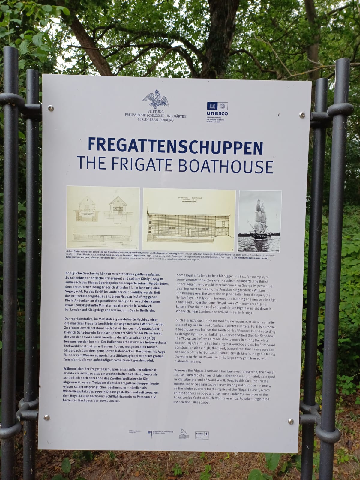 Whereas the Frigate Boathouse has been well-preserved, the „Royal Louise“ suffered changes of fate before she was ultimately scrapped in Kiel after the end of World War II. Despite this fact, the Frigate Boathouse once again today serves its original purpose – namely, as the winter quarters for the replica of the „Royal Louise“, which entered service in 1999 and has come under the auspices of the Royal Louise Yacht-und Schifffahrtsverein zu Potsdam, registered association, since 2004.