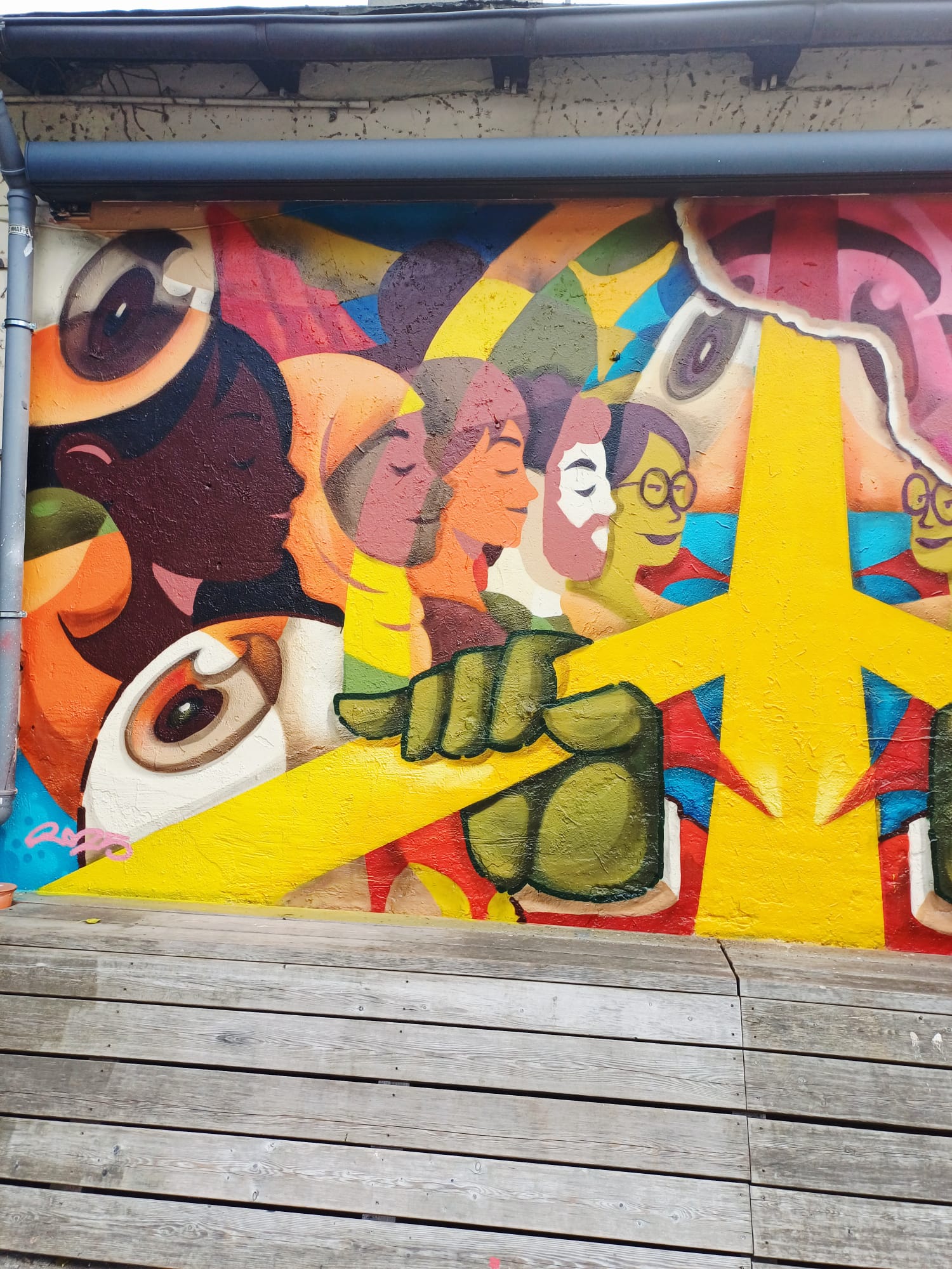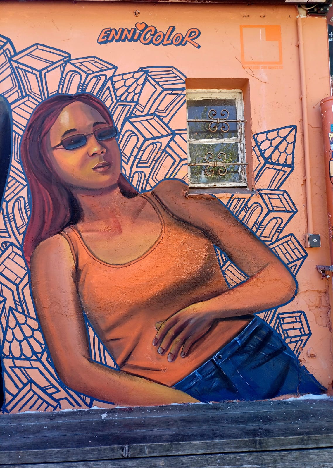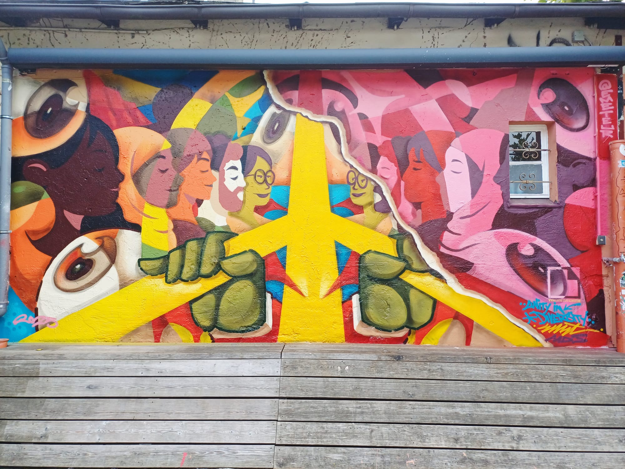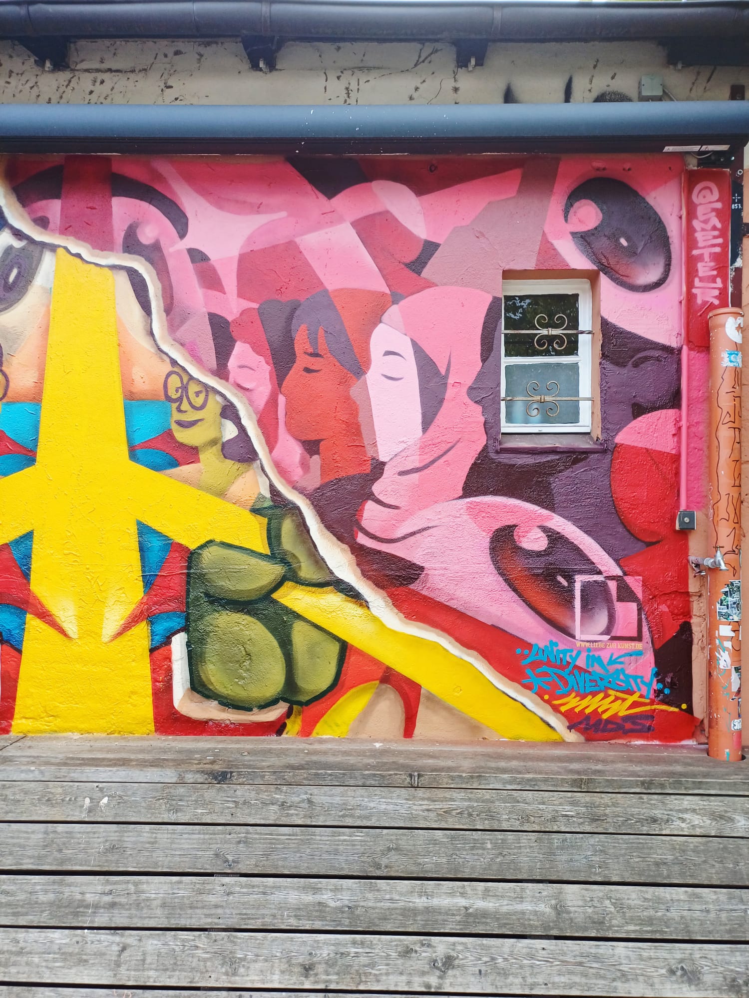 The green building on the right is a decilious döner place and the pink portrait artwork on the far right was created by THE OLIFANTS. You will find more photos of that artwork and many others on the page for the middle part.
