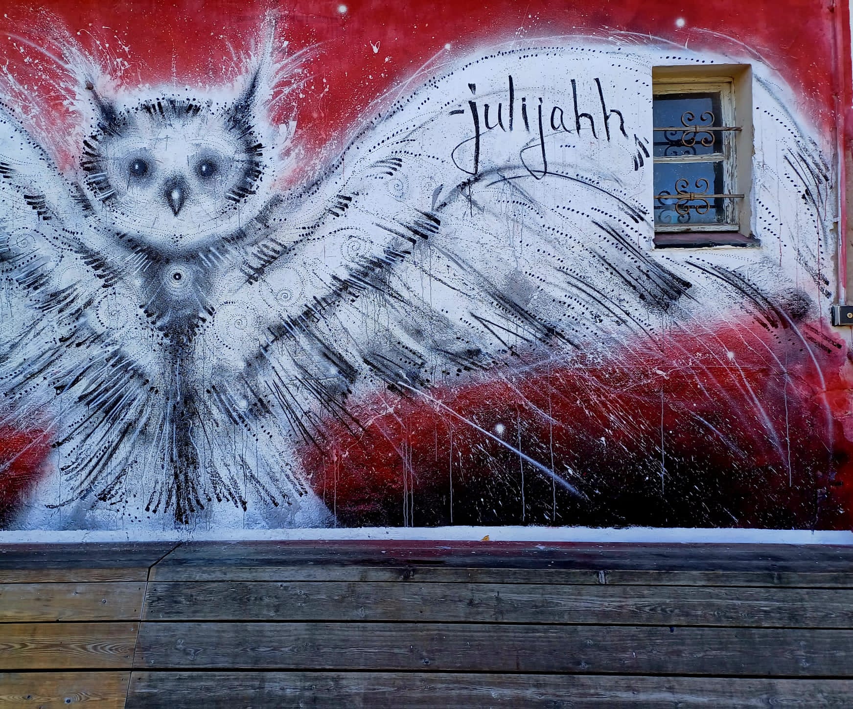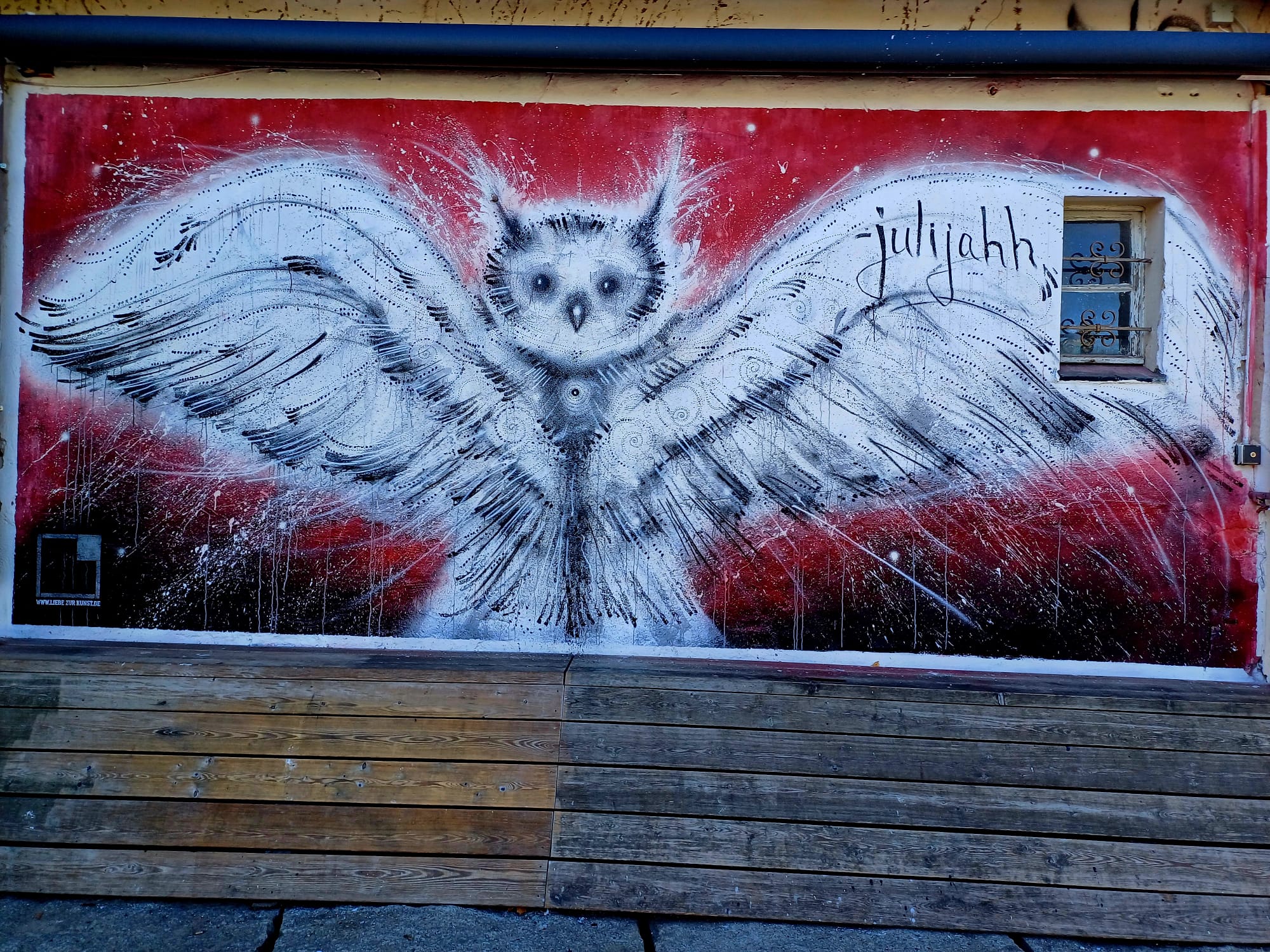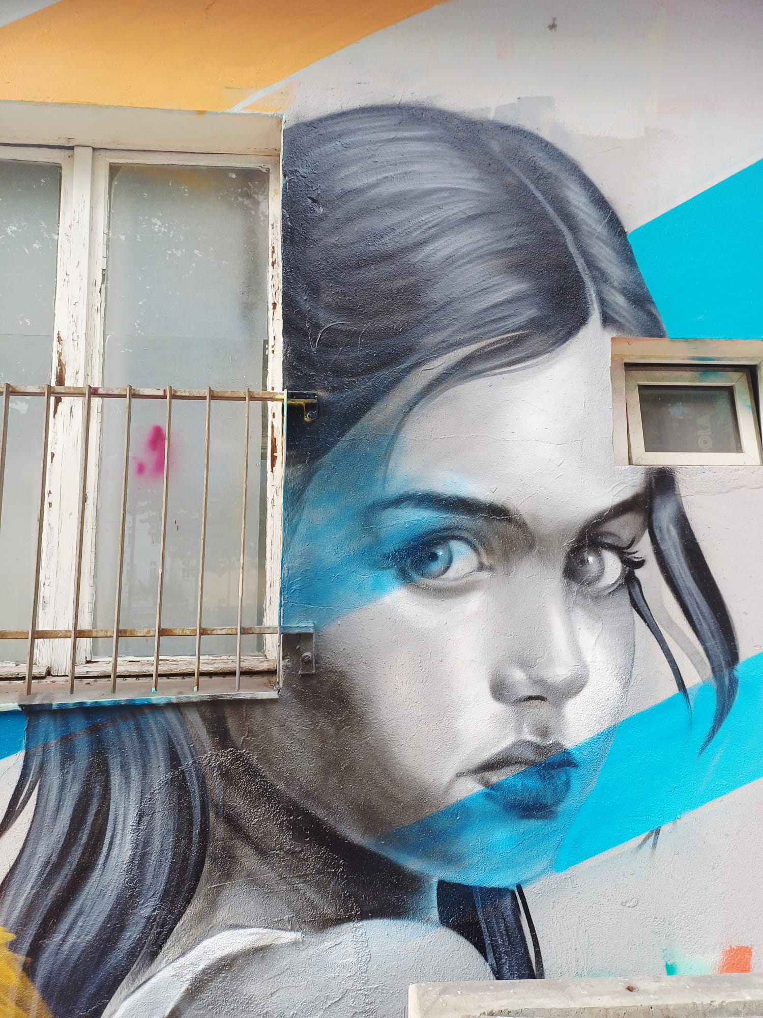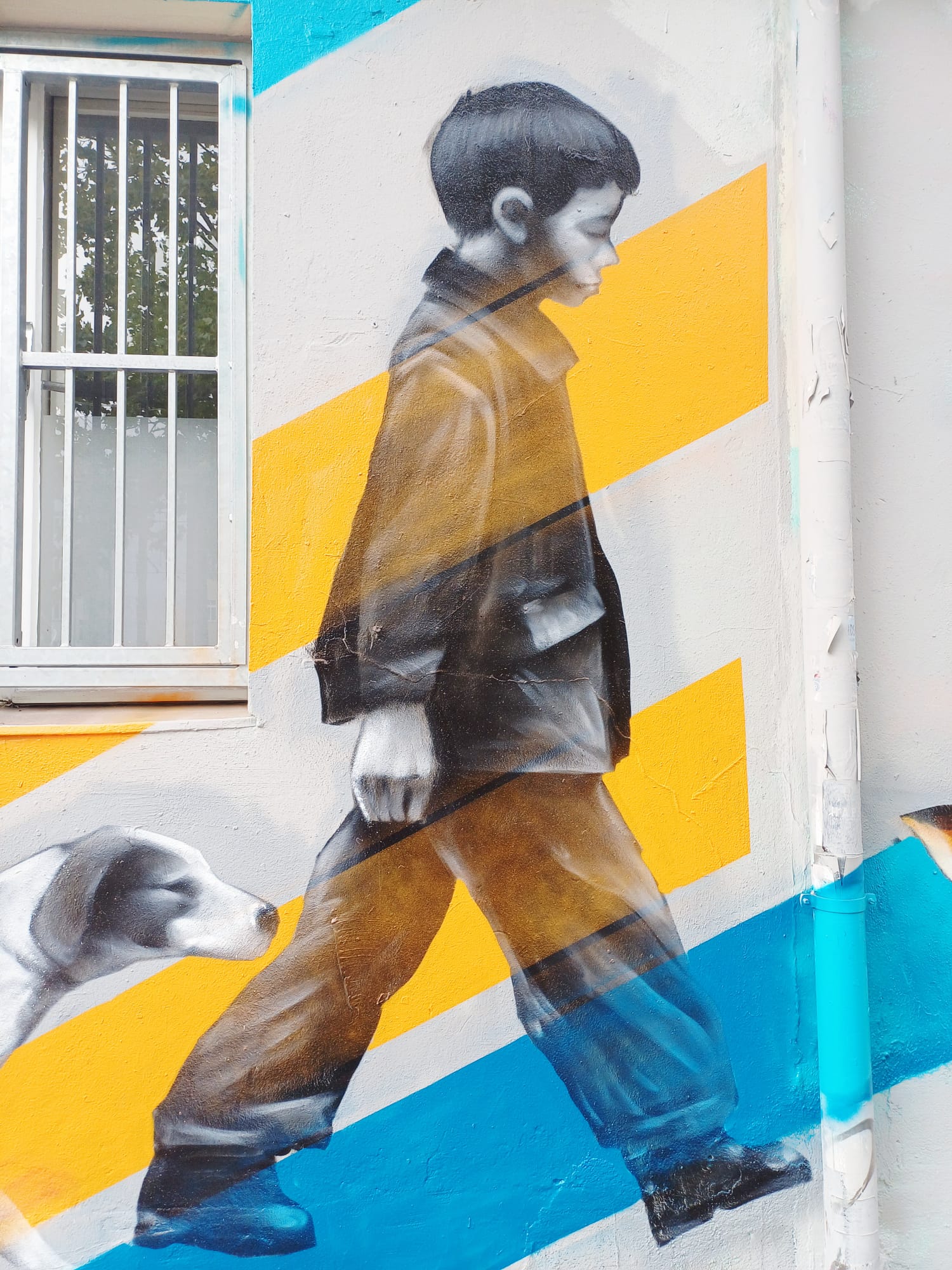 The green building on the right is a decilious döner place and the pink portrait artwork on the far right was created by THE OLIFANTS. You will find more photos of that artwork and many others on the page for the middle part.