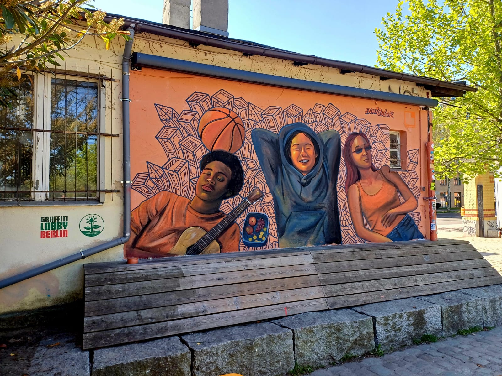 Why: The exterior façade of the „Blumenwunder“ clubhouse of the Freunde des Mauerparks e.V. (FdM) is in a very poor, dilapidated and unkempt condition, marked by vandalism. It has not been modernized for several years. In order to improve its appearance, we are aiming for a recurring aesthetic design. This will serve to identify the building and enhance its value in the long term. We are therefore planning a recurring design in an approximately 8-week cycle. The artistic implementation will always be adapted to the square ensemble and will be based on both the historical value and the current function of the building. We also want to give artists the opportunity to legally design walls in various formats and styles, thereby enhancing and improving the public infrastructure facility on a voluntary basis. In this way, art can be made tangible and experienced by the public. The result is creativity and a positive attitude towards life. Such joint design projects are meaningful and enrich the social fabric and the cityscape and promote dialog between generations, residents and artists. It would be desirable to have 2-3 exhibitions a year in the Vereinshaus to match the respective thematic wall design in order to encourage more dialog and exchange with other people and promote diversity and access to urban art. It is guaranteed that no racist, sexist, anti-Semitic or homophobic motifs are used.