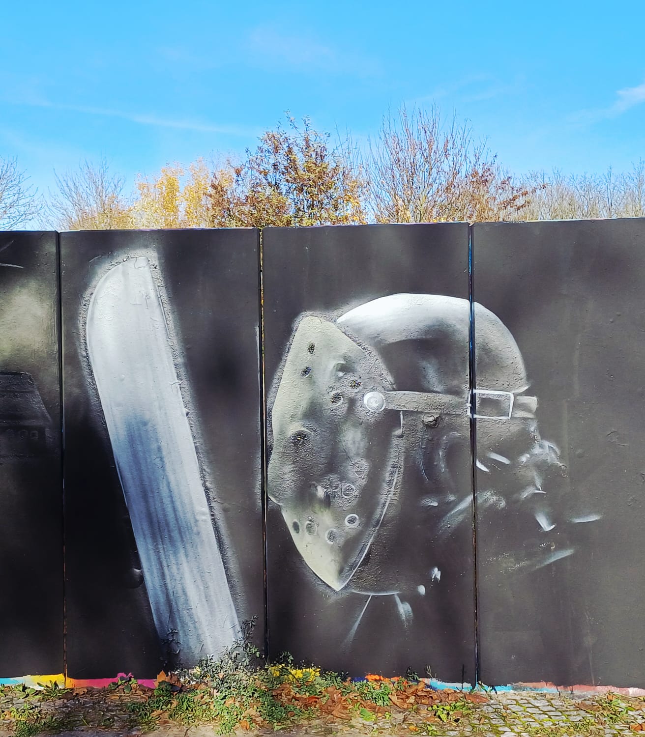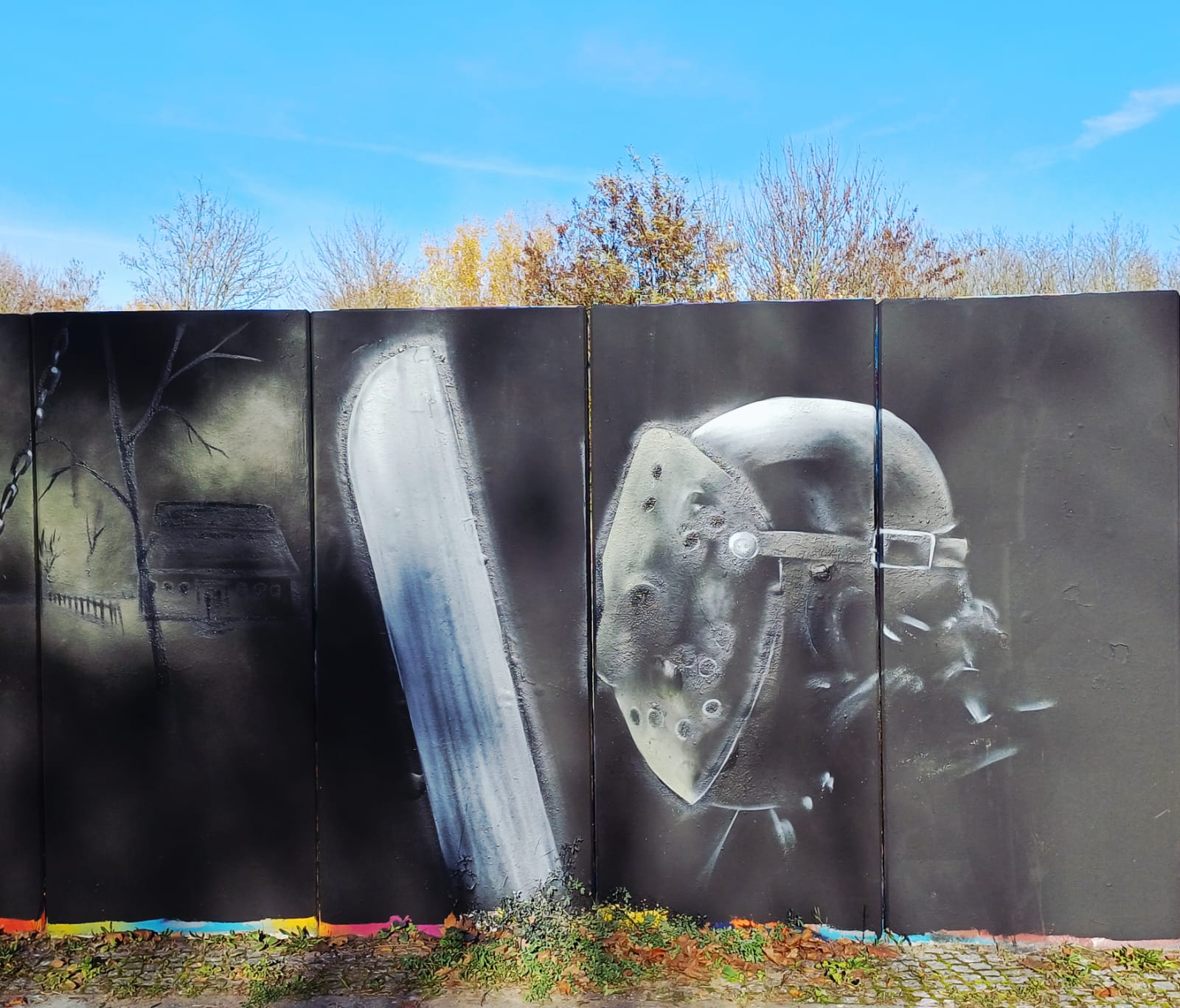The graffiti on the far left is from THOE and the graffiti on the far right was made by SKION