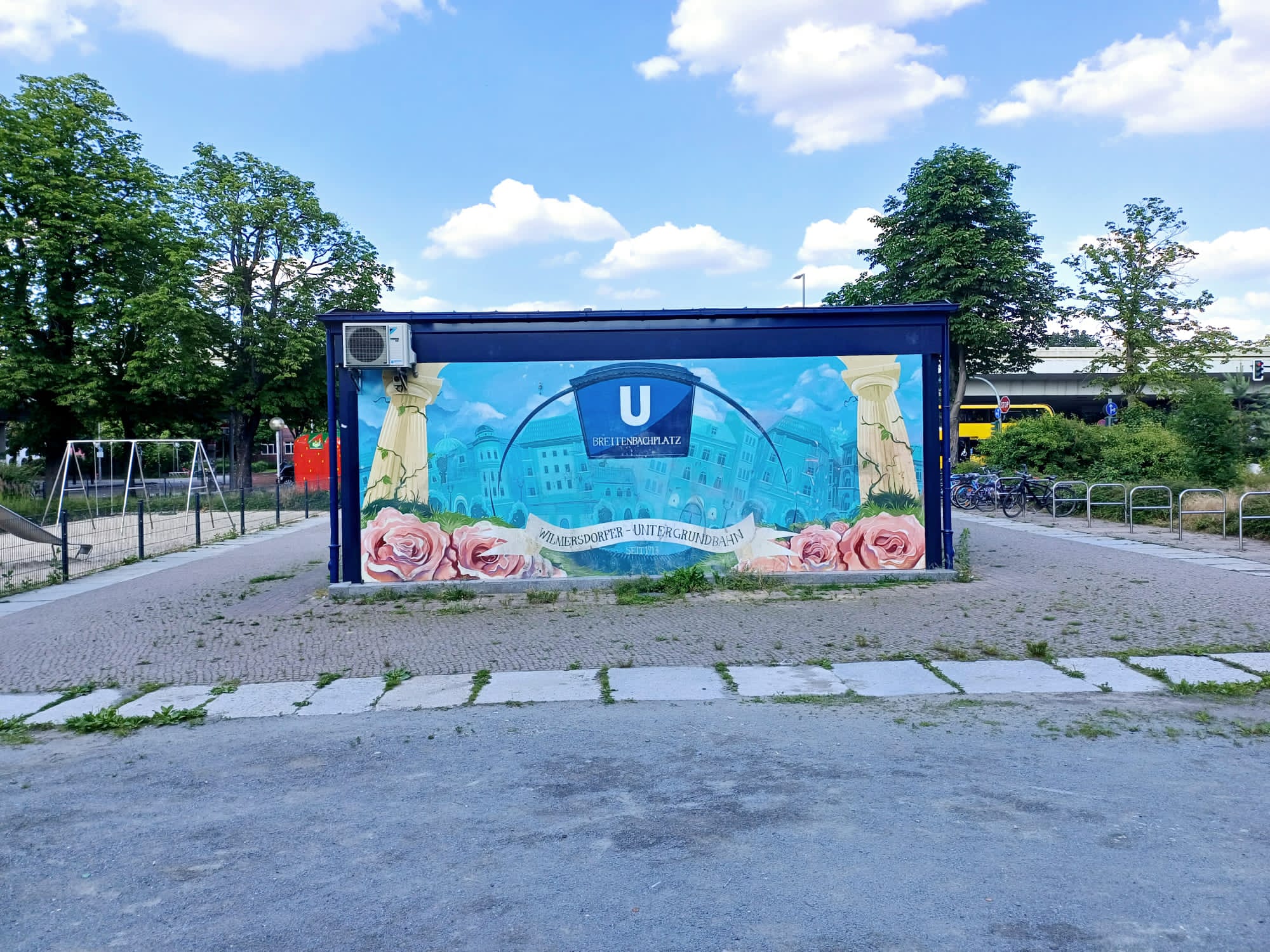 GERMANY: Streetart Berlin – Steglitz – Breitenbachplatz Subway Station – Entrance Building – HRVB – HERR VON BIAS
