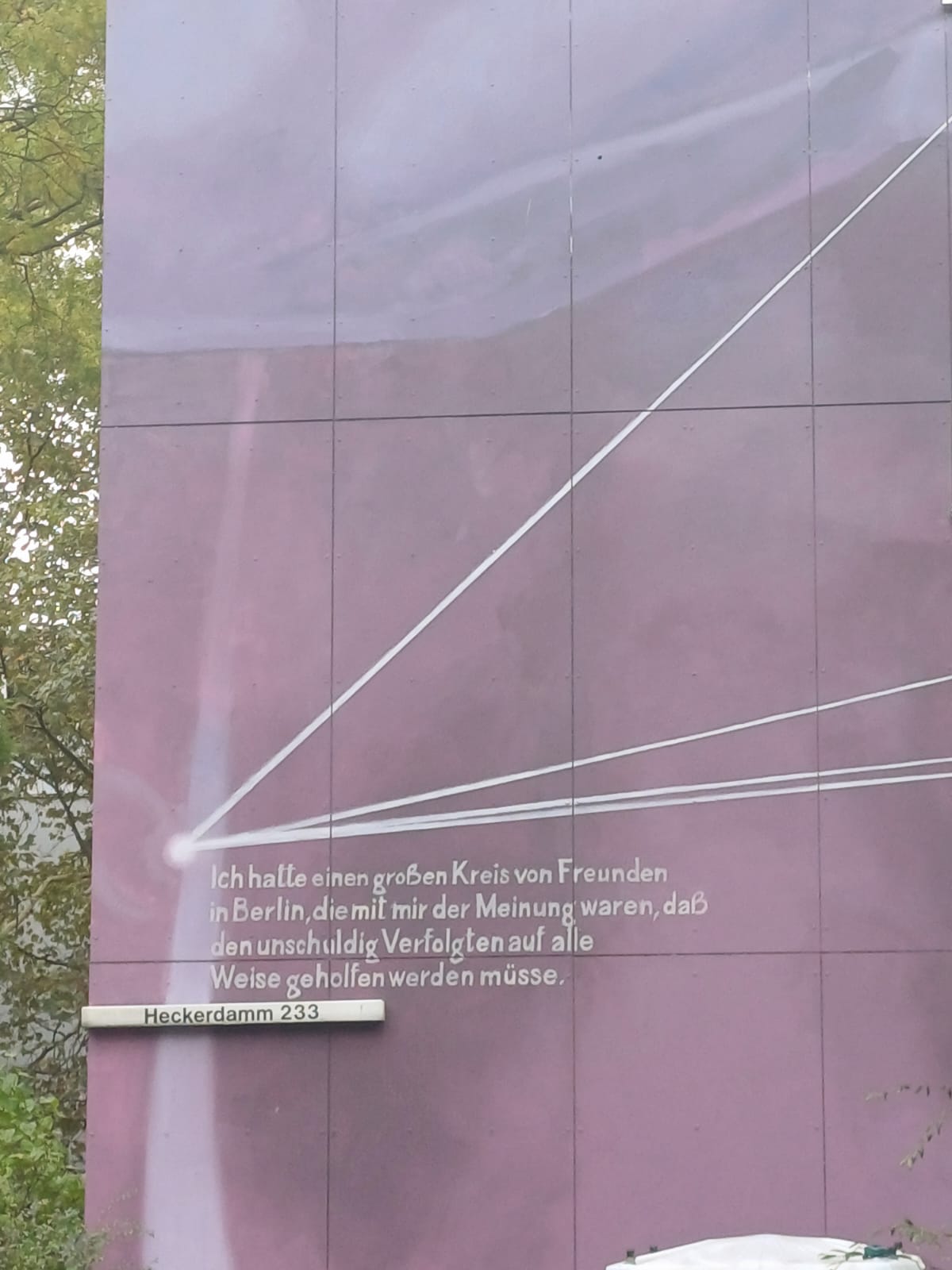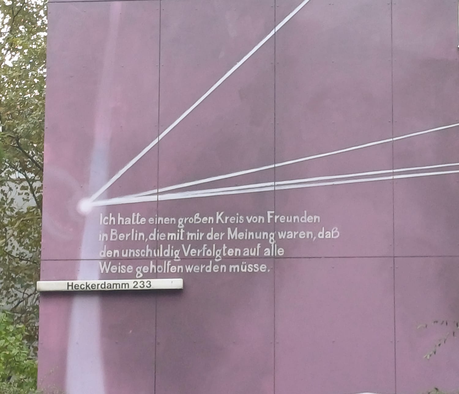 German: „Ich hatte einen großen Kreis von Freunden in Berlin, die mit mir der Meinung waren, dass den unschuldig Verfolgten auf alle Weise geholfen weren müsse.“ – English: „I had a large circle of friends in Berlin who agreed with me that the innocently persecuted must be helped in every way.“