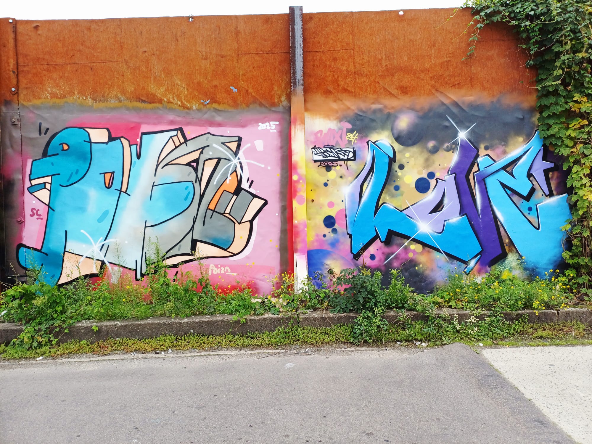 The graffiti on the left is from HOCUS and the artwork on the right was made by GRIS
