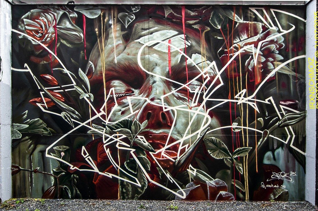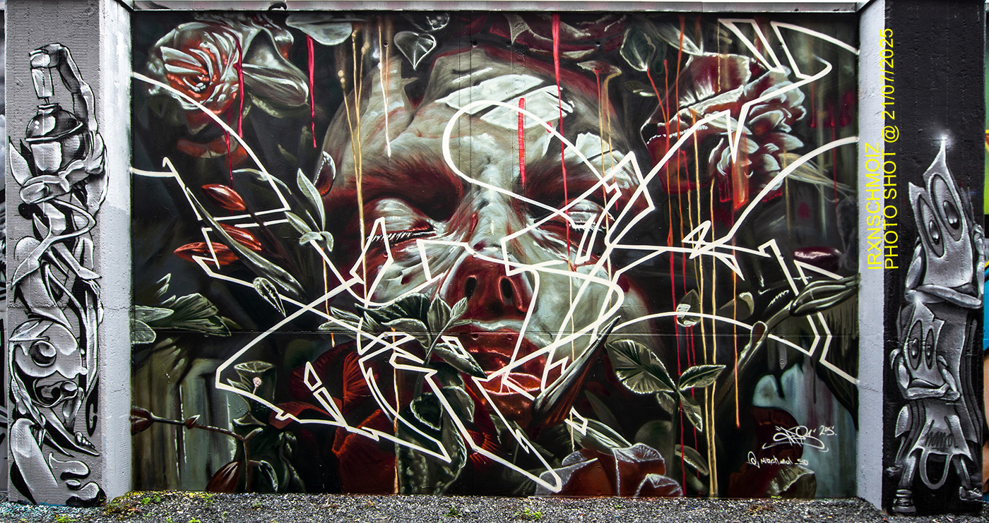 This artwork was made together with WORM and PEACE, who also made the artworks on the pillars at the left and the right