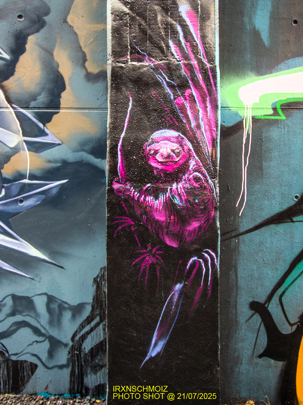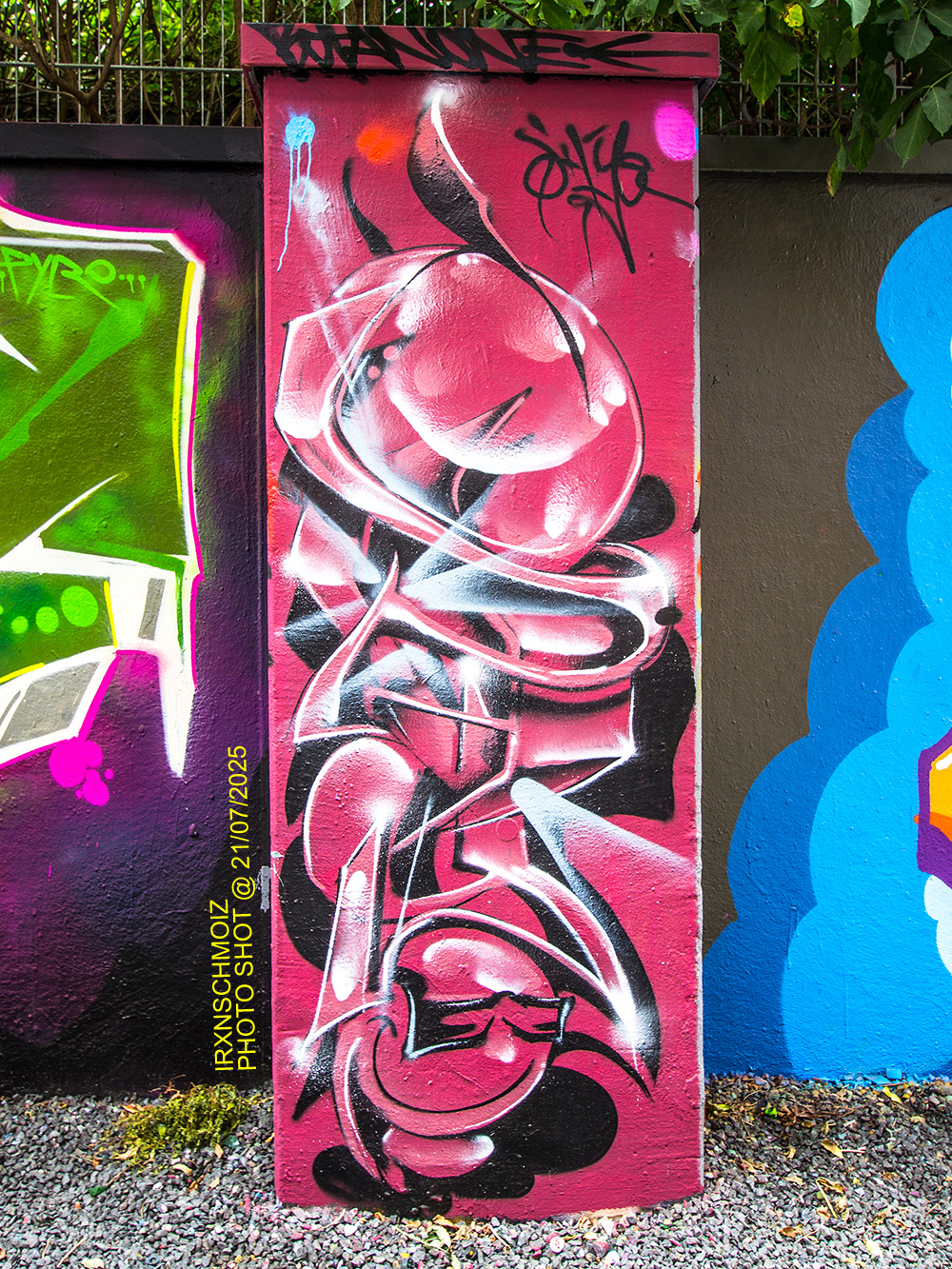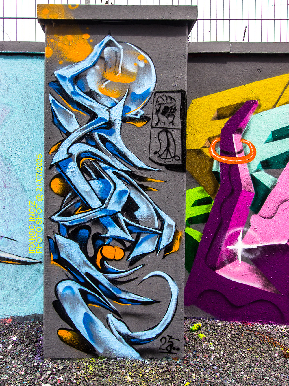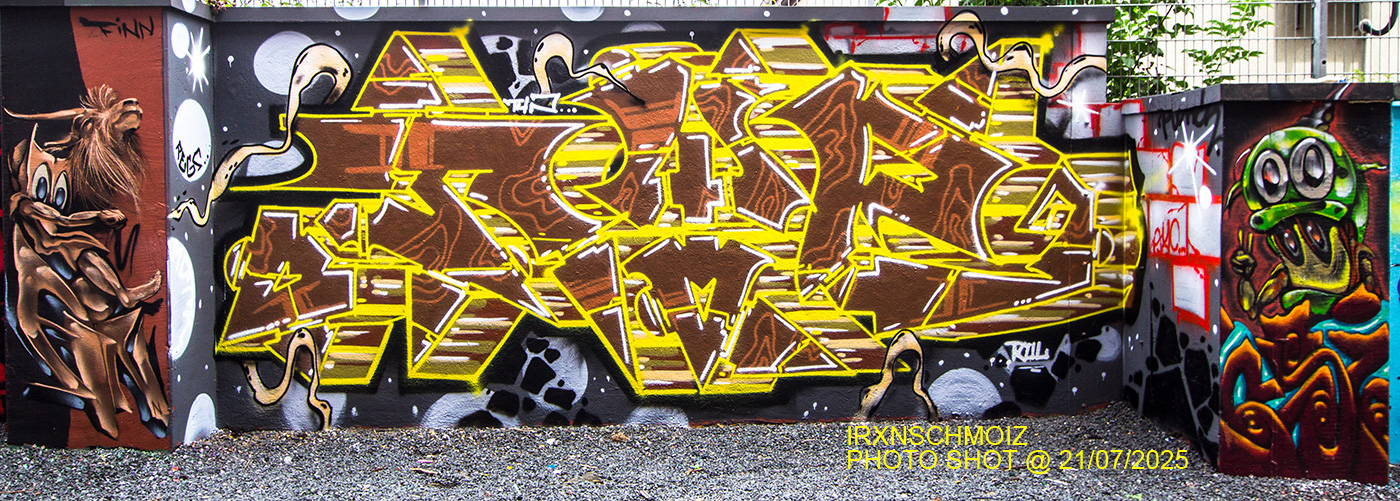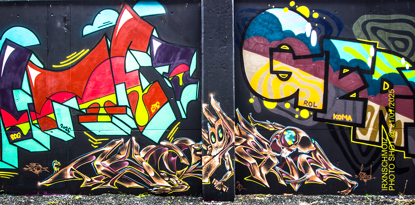 The graffiti on the upper left is from ACME, the graffiti on the upper right was made by GERYS abd the graffiti on the right pillar is from FOKES