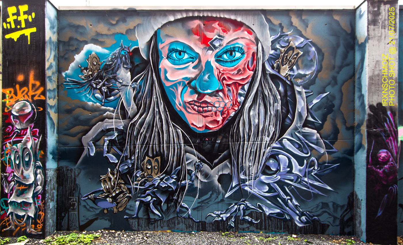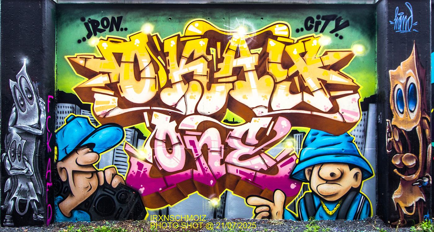 The graffiti and portrait in the middle is from ROLONE