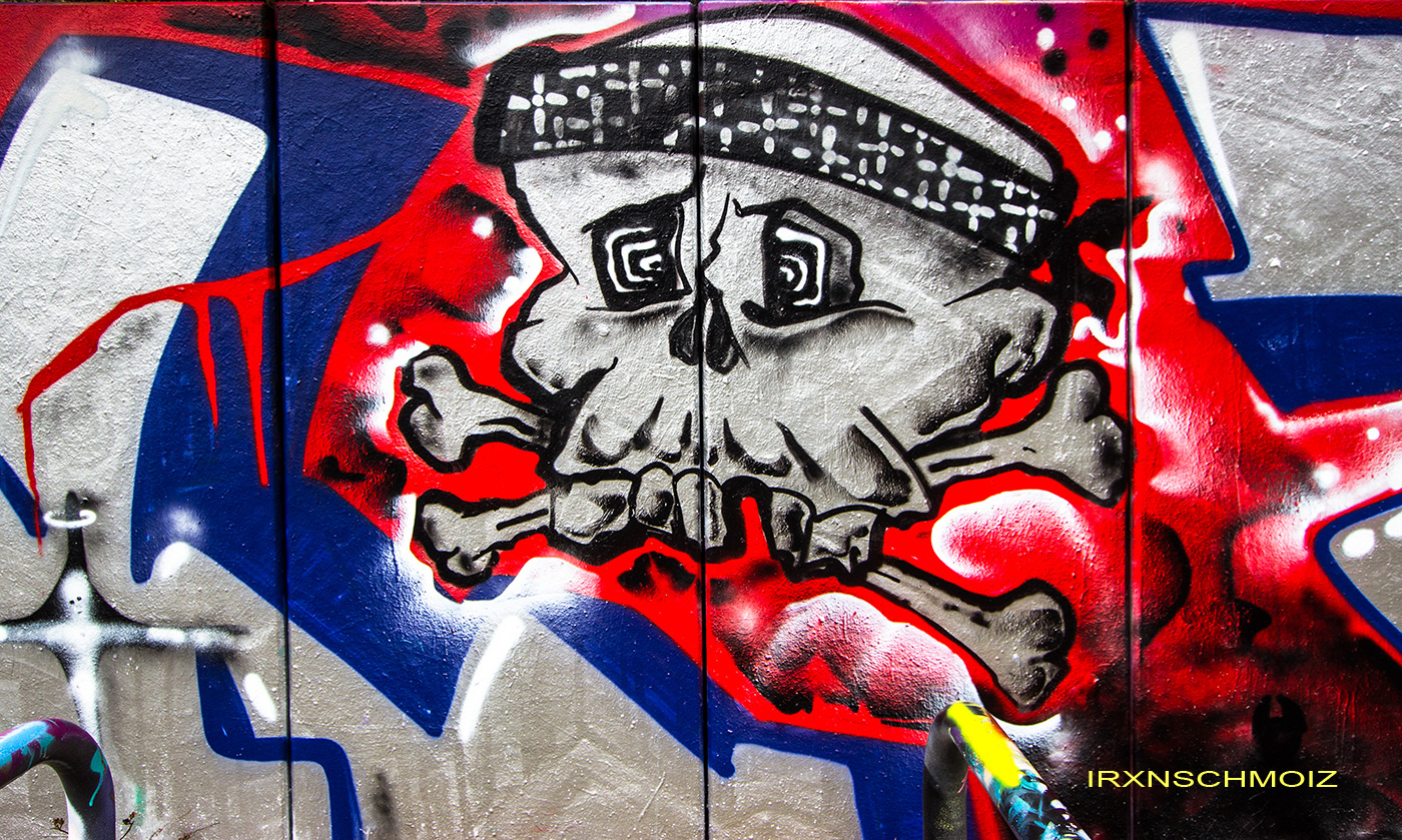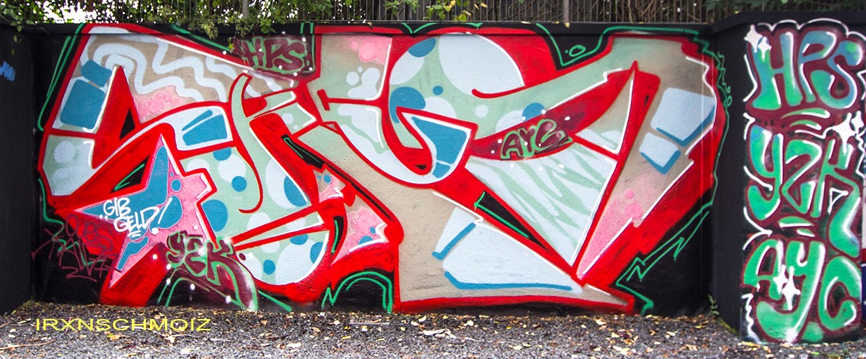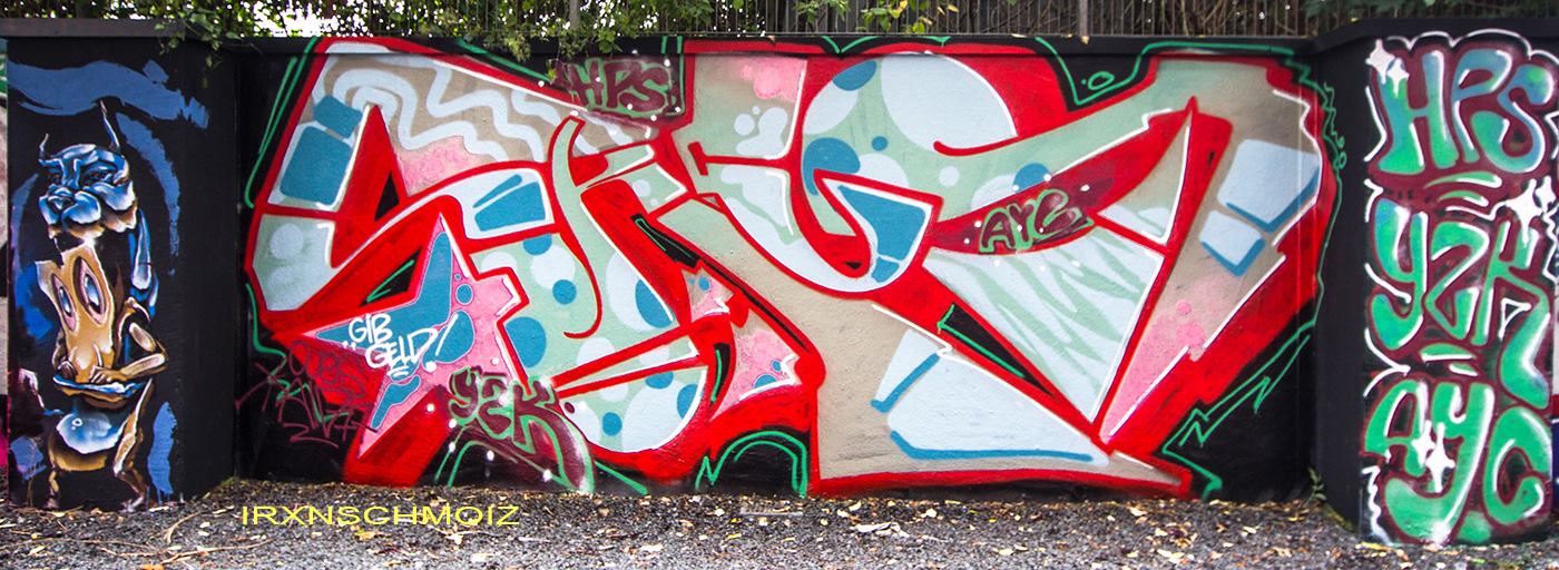 The graffiti on the right is from SLAYER, and the artworks on the pillars at the left and the right are from PEACE