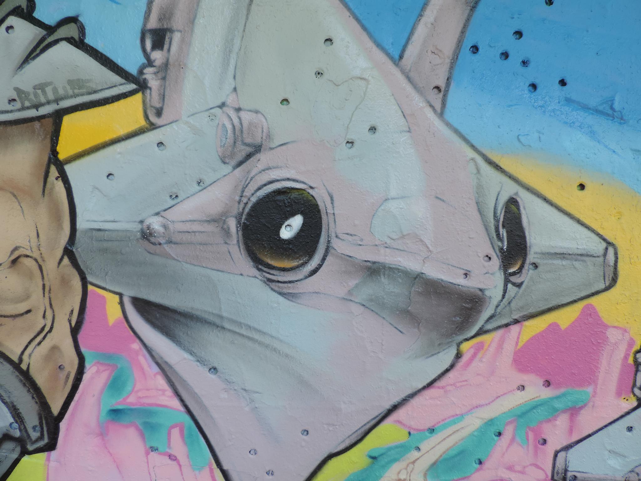 Here you can see the artists at work. Together they created one fantastic concept theme. The bird on the left was made by ALICE, the bird in the middle is from GUENDEM 78 and the cyborg rabbit on the right was made by BOBOTER ONE.
