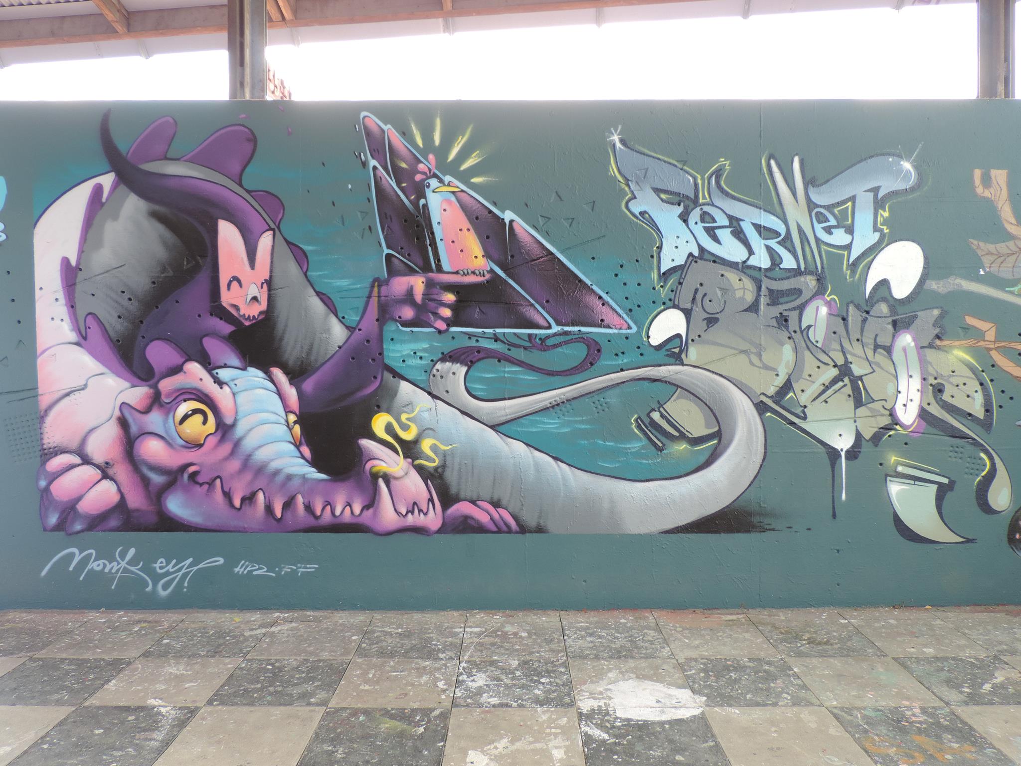 In 2014 the stage mural was made by MANTRA, CANZ 31 and MONKEY