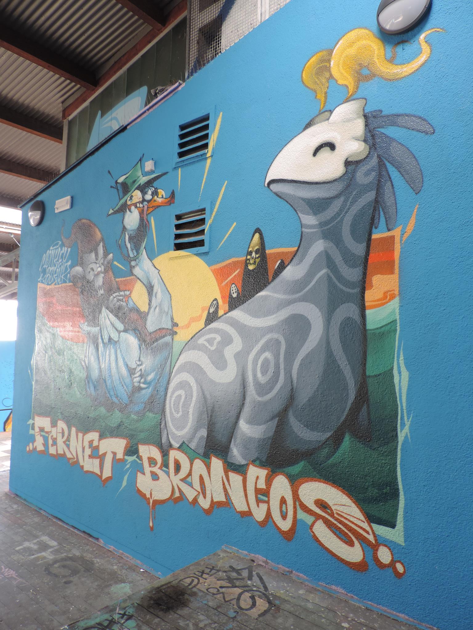 The artwork on the left was made by MONKEY. Together they form the artist duo FERNET BRONCOS