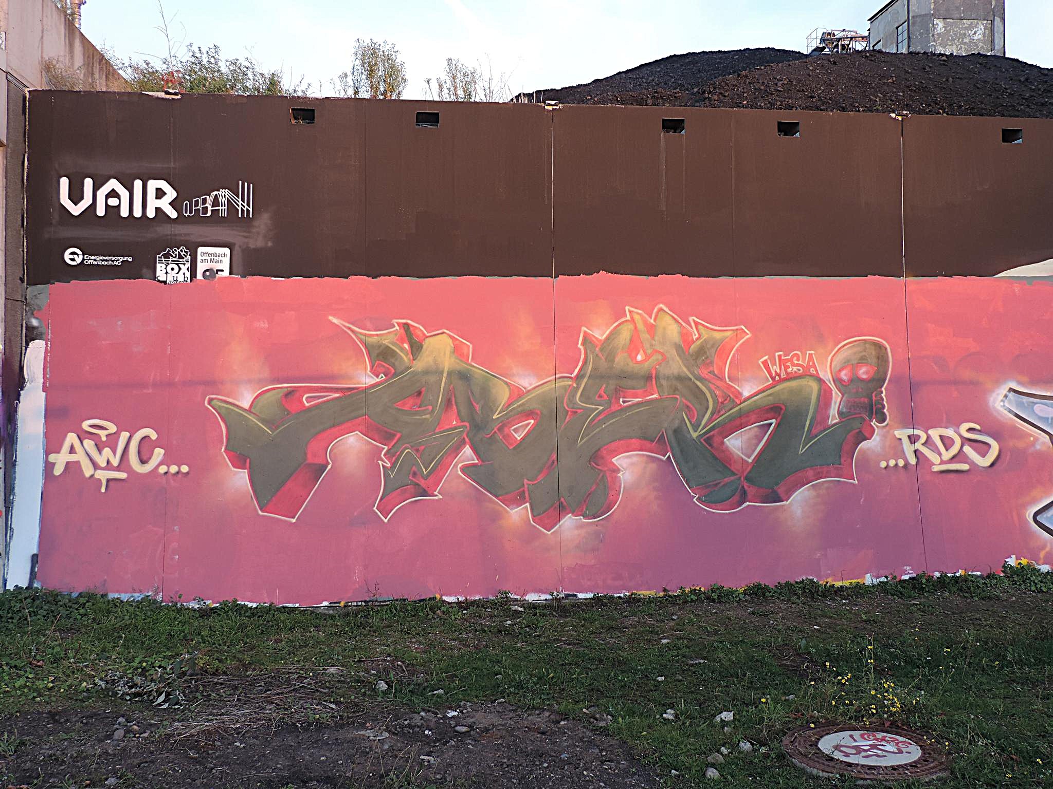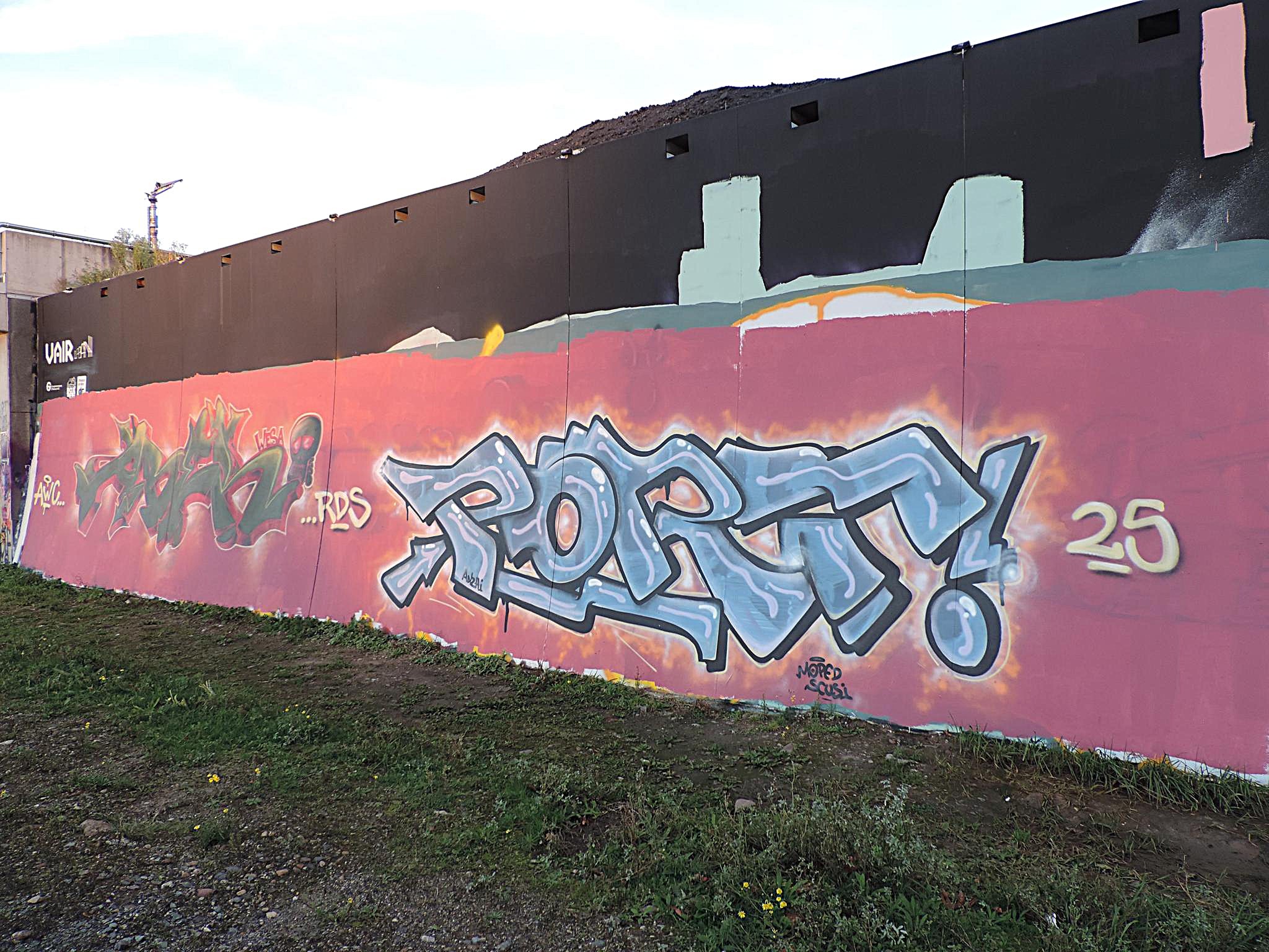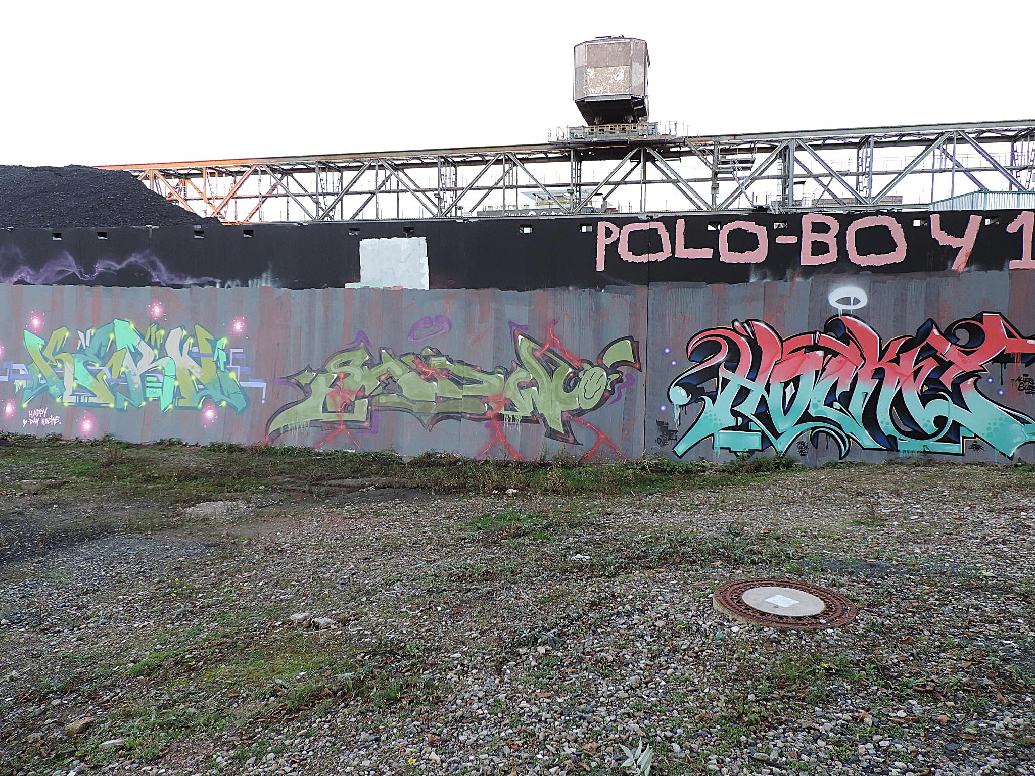 One more place to be creative and one more spot to spray without having to run away! On 7th June in 2025 the new Graffiti Hall in Offenbach at Mainkai was opened, a legal wall where artists can freely do their thing. While the area around the harbor island in Offenbach is being expanded and modernized piece by piece, new open spaces and walls for urban art also show up. At the promenade along the harbor basin THEKRA JAZIRI aka JAZIRKUS had already created a beautiful long artwork. If you walk through this passageway towards the west, you will find the new creative space just around the corner. Or if you are coming from the west, then you will find it in front of the passageway. The wall, which is almost 100 meters long and four meters high, offers a legal space for graffiti artists to freely express their creativity. The coal storage facility with ship loading behind the wall is also architecturally very interesting, and a huge horizontal cargo crane towers above it, adding to the fascinating image. The whole thing was initiated by the artists DOUBLE D and ARTMOS4, who invited 10 other graffiti artists for the opening jam to give the wall some stunning pieces right from the start. Since then, the façade has been open to everyone and everybody can legally spray paint and engage in artistic activities there.
