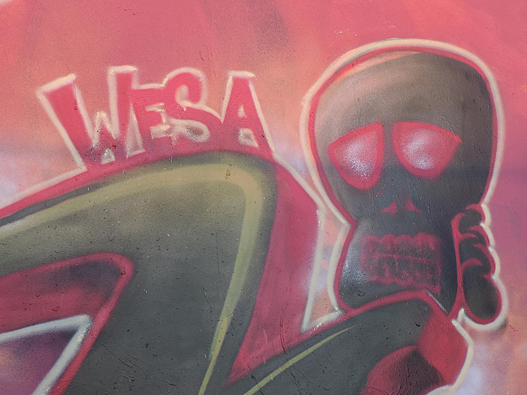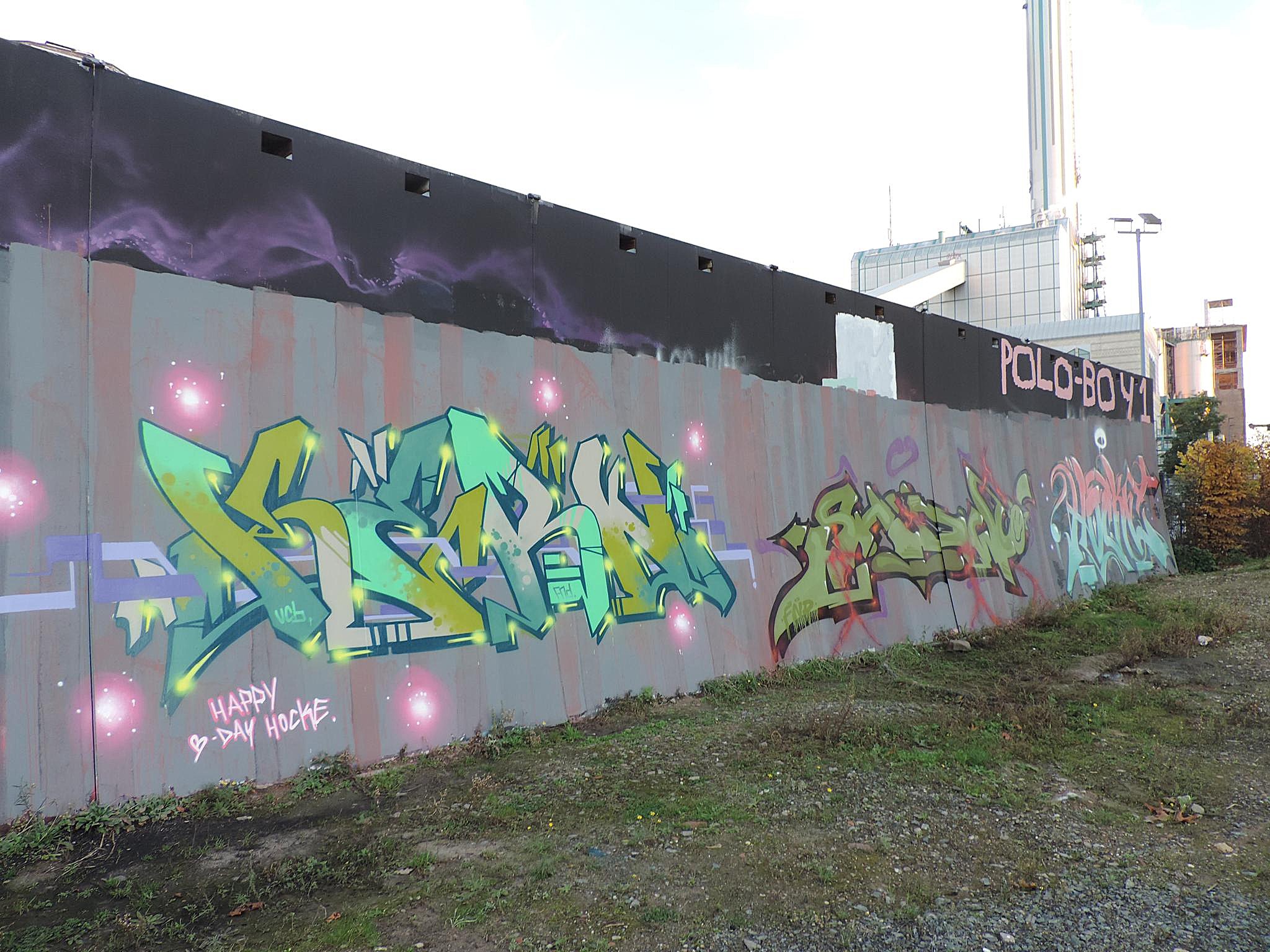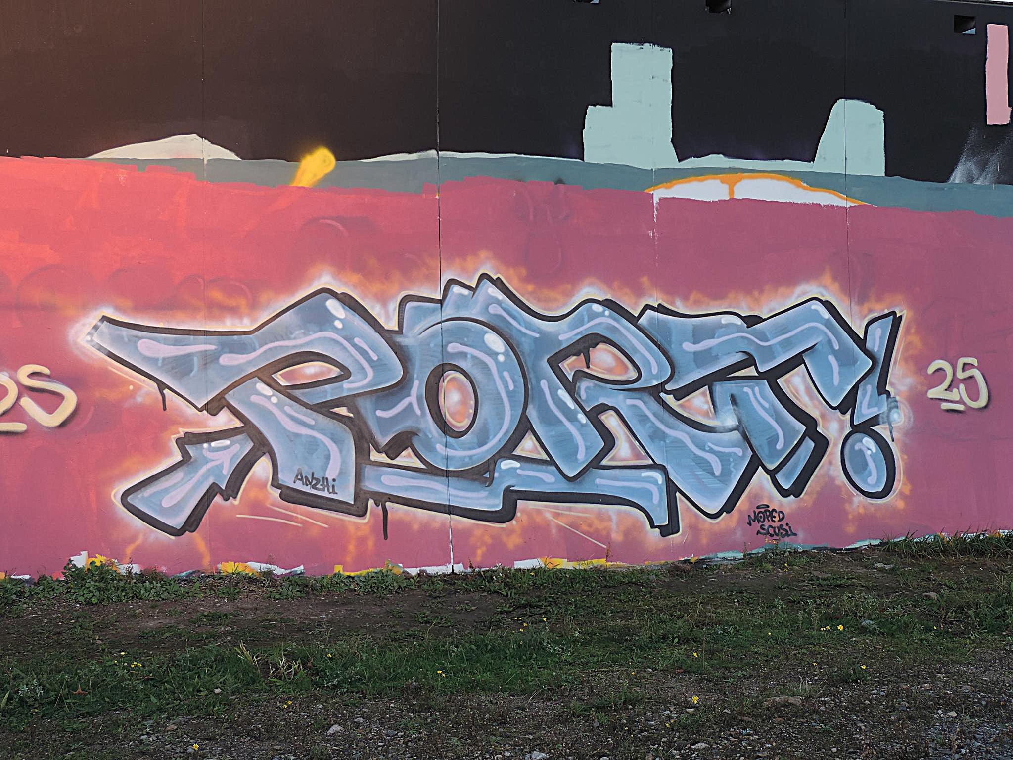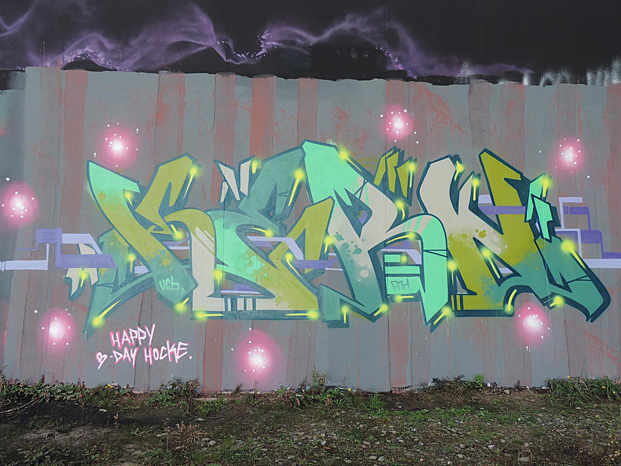 One more place to be creative and one more spot to spray without having to run away! On 7th June in 2025 the new Graffiti Hall in Offenbach at Mainkai was opened, a legal wall where artists can freely do their thing. While the area around the harbor island in Offenbach is being expanded and modernized piece by piece, new open spaces and walls for urban art also show up. At the promenade along the harbor basin THEKRA JAZIRI aka JAZIRKUS had already created a beautiful long artwork. If you walk through this passageway towards the west, you will find the new creative space just around the corner. Or if you are coming from the west, then you will find it in front of the passageway. The wall, which is almost 100 meters long and four meters high, offers a legal space for graffiti artists to freely express their creativity. The coal storage facility with ship loading behind the wall is also architecturally very interesting, and a huge horizontal cargo crane towers above it, adding to the fascinating image. The whole thing was initiated by the artists DOUBLE D and ARTMOS4, who invited 10 other graffiti artists for the opening jam to give the wall some stunning pieces right from the start. Since then, the façade has been open to everyone and everybody can legally spray paint and engage in artistic activities there.