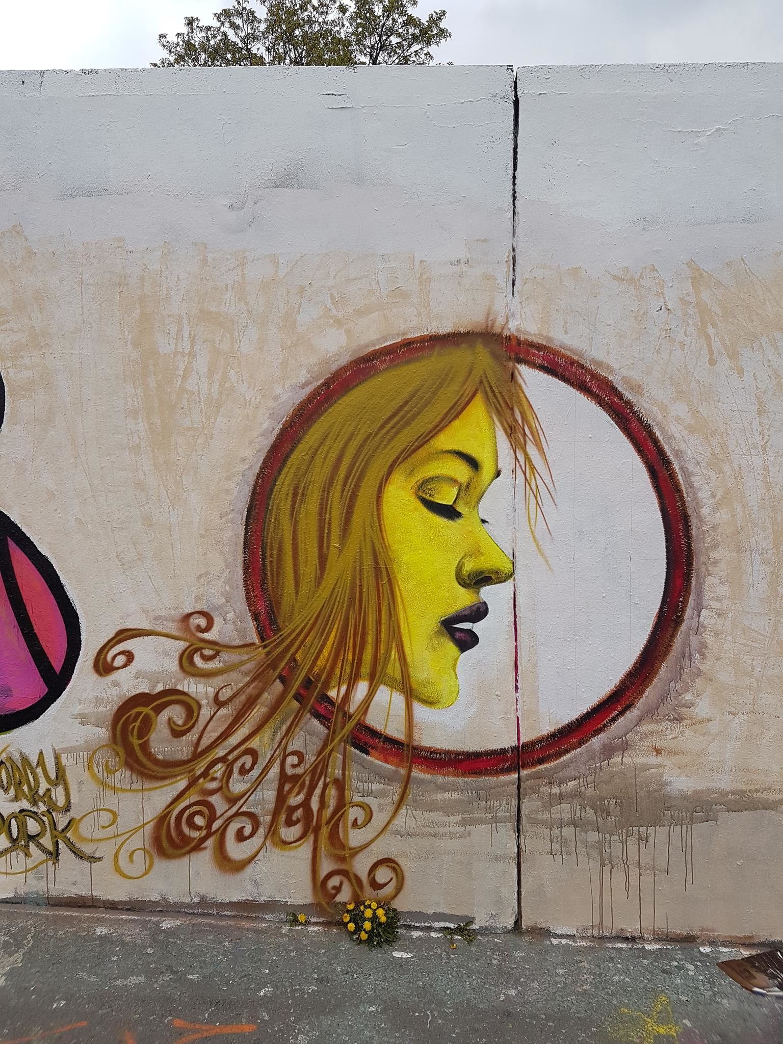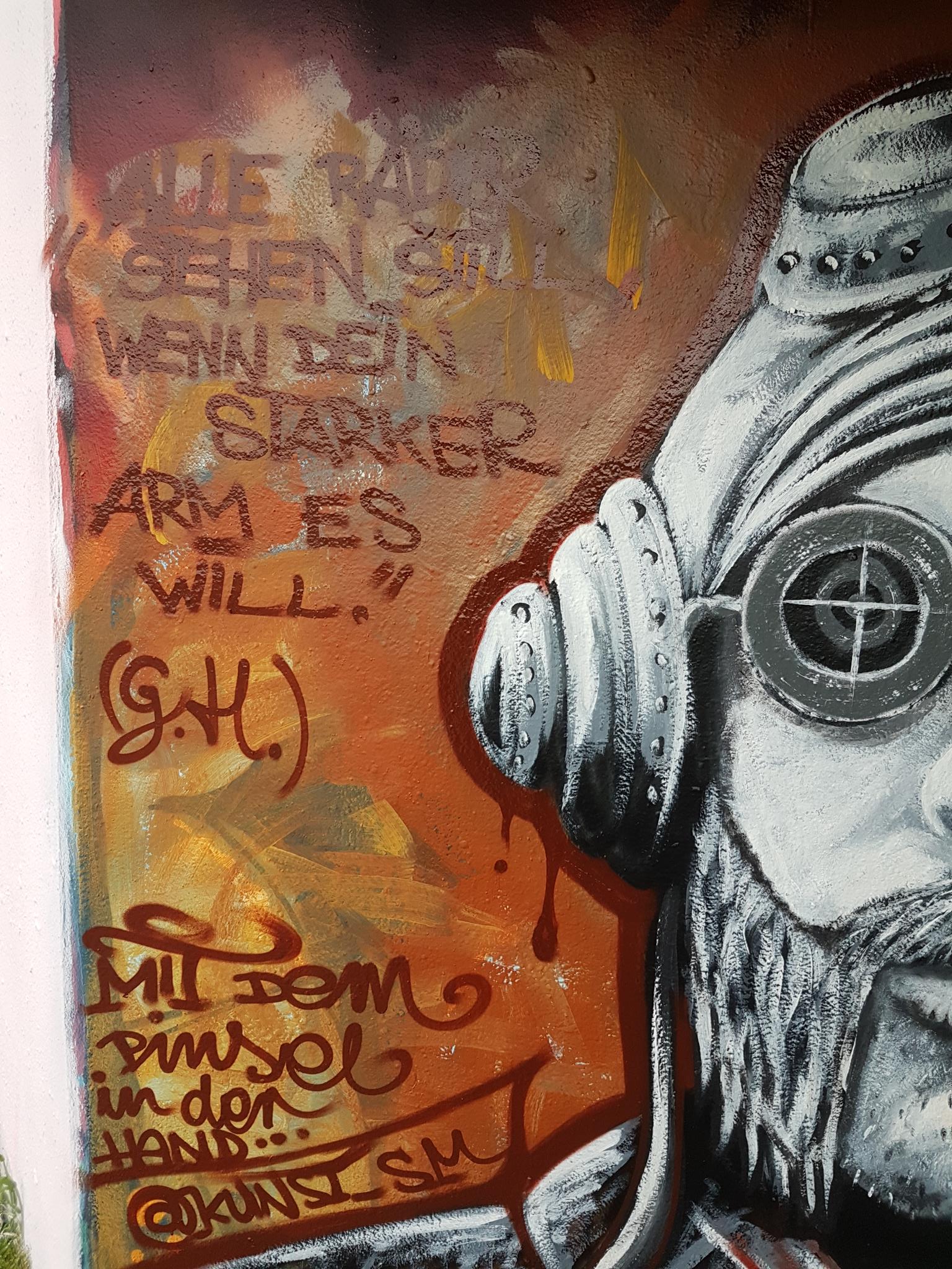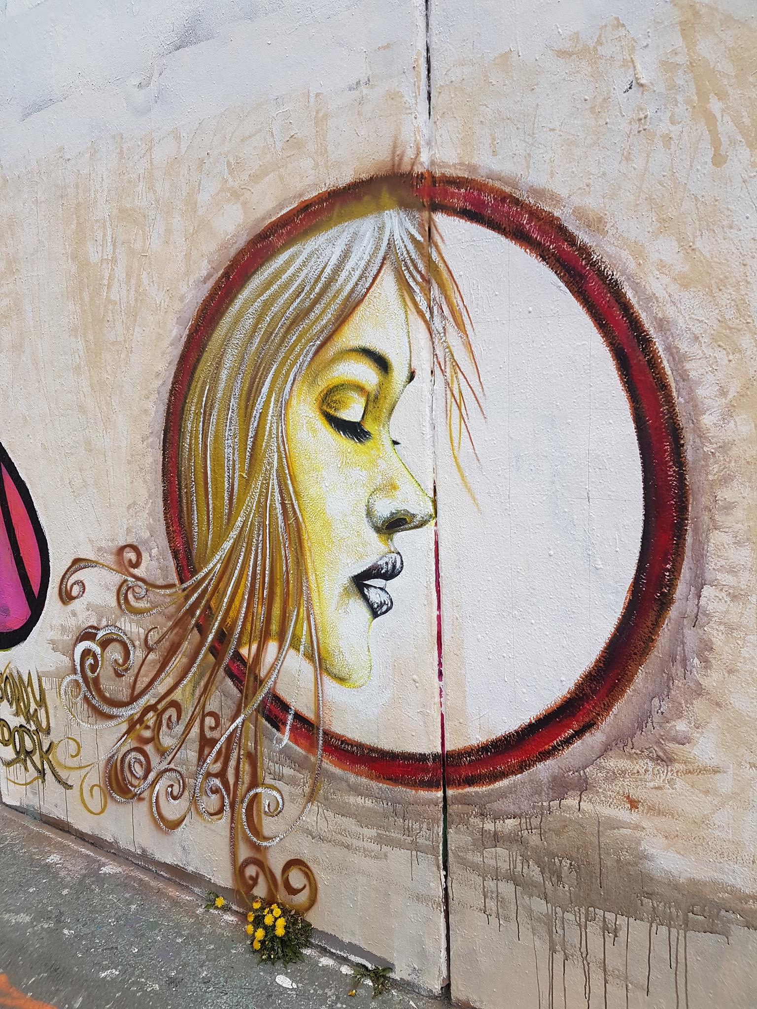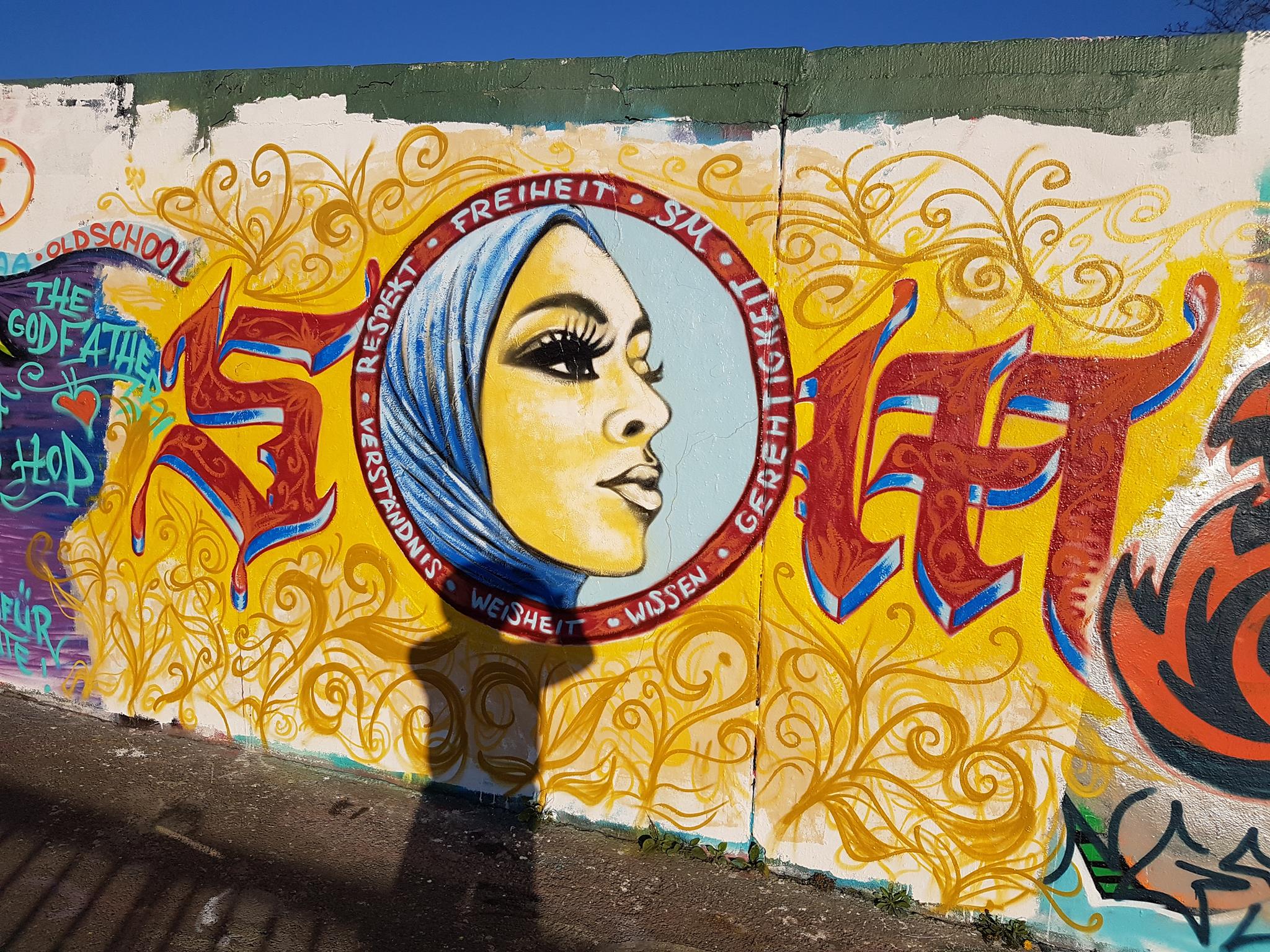„Willst du Frieden – pflege Gerechtigkeit“ would mean in English „If you want peace then cultivate justice“. The half part of the graffiti on the left was from DORK