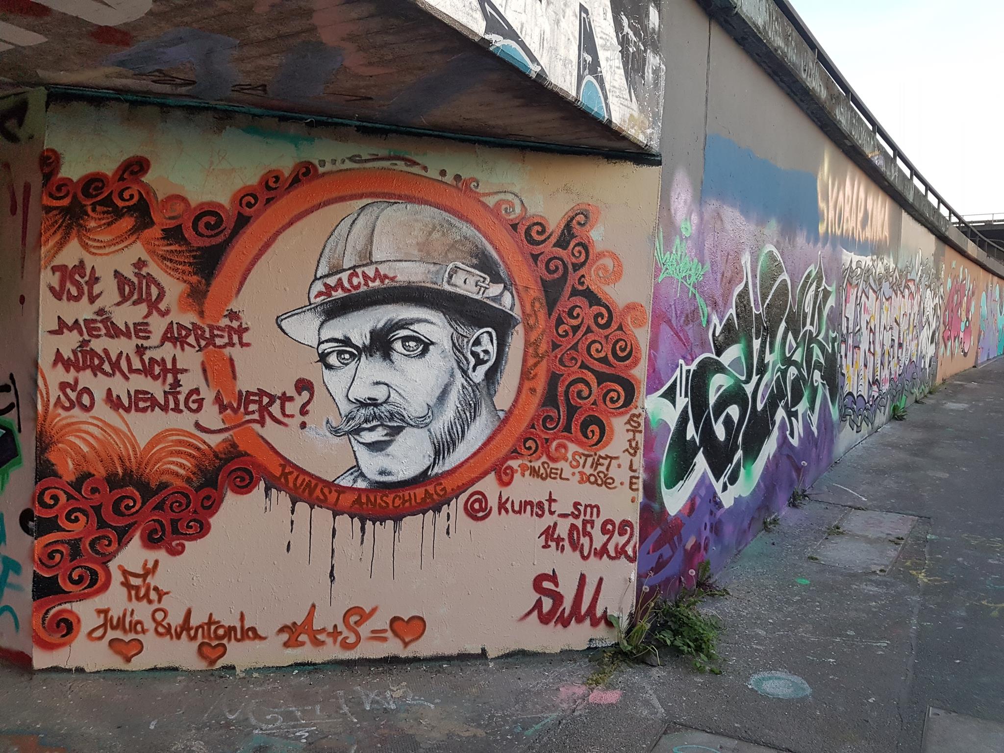 „Ist dir meine Arbeit wirklich so wenig wert?“ would mean in English „Is my work really worth so little to you?“ and was made in occasion of the 1st May. The artwork was also made for Julia and Antonia.