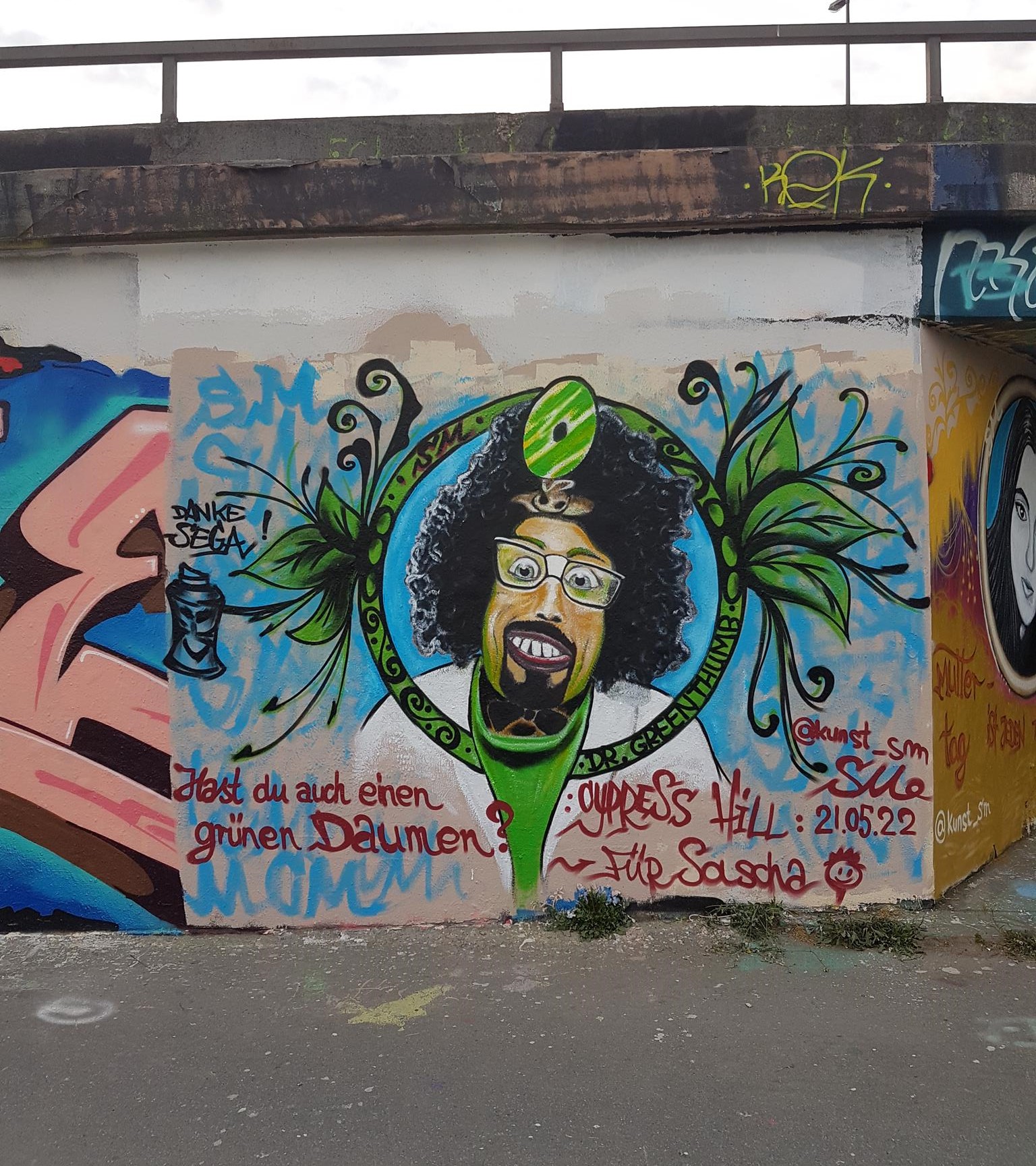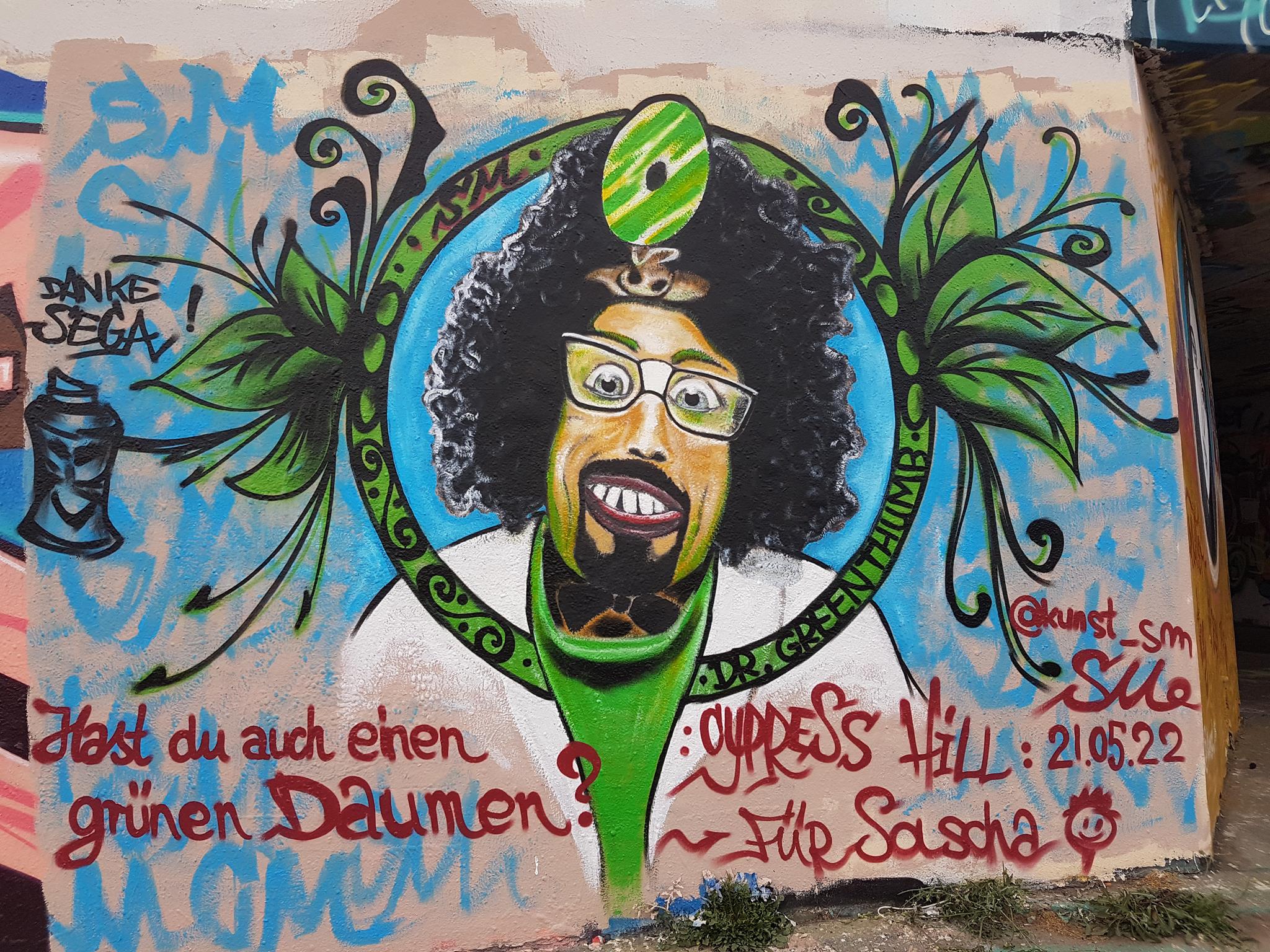 „Hast du auch einen grünen Daumen?“ would mean in English „Do you also have a green thumb?“ and is a phrase from a song by famous rapper Cypress Hill. This artwork was made for Sascha.