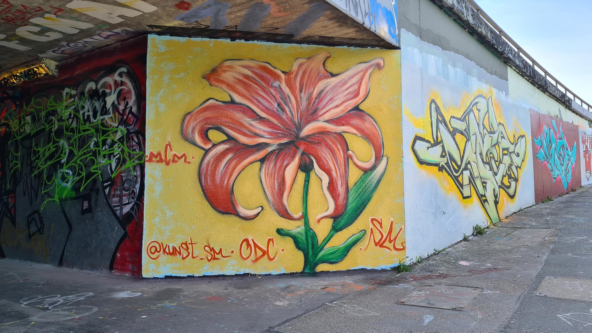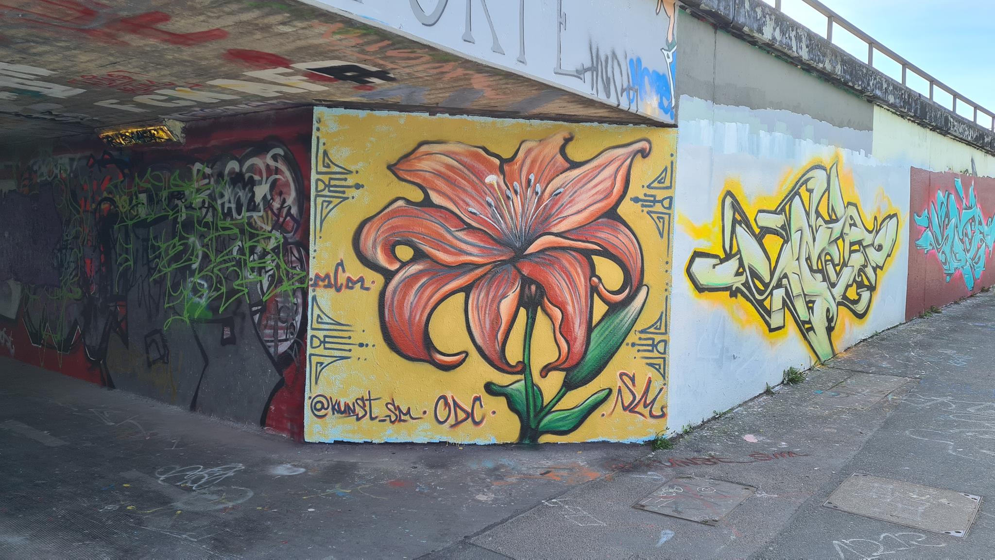 The graffiti on the left are from SEGA and the graffiti on the right was made by KAYON