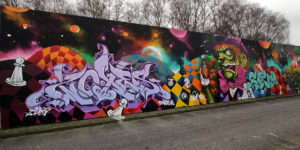 1) Flood Protection Wall – Western Section – North Side: 320 meter long from (53.47058, 9.96259) to (53.47006, 9.96672) aside An der Landscheide. This area tends to be used by amateurs and talented beginners. The further east you go, the better the pieces and styles become.  [ >>> Chronological Spot Page <<< }