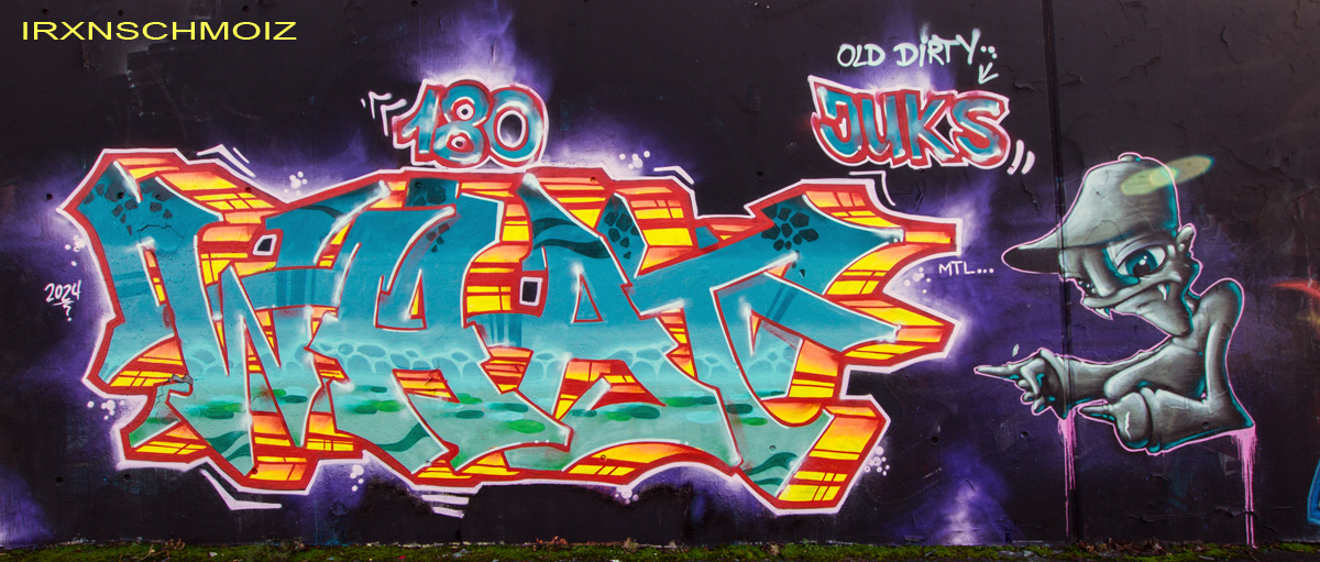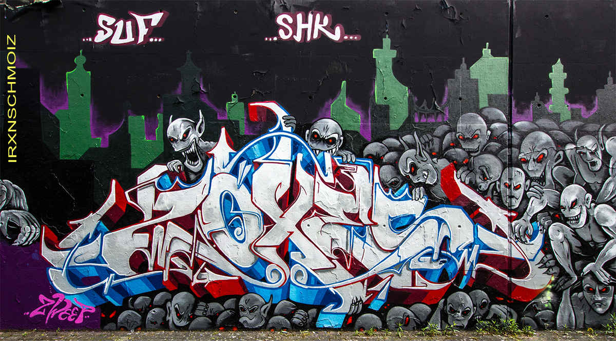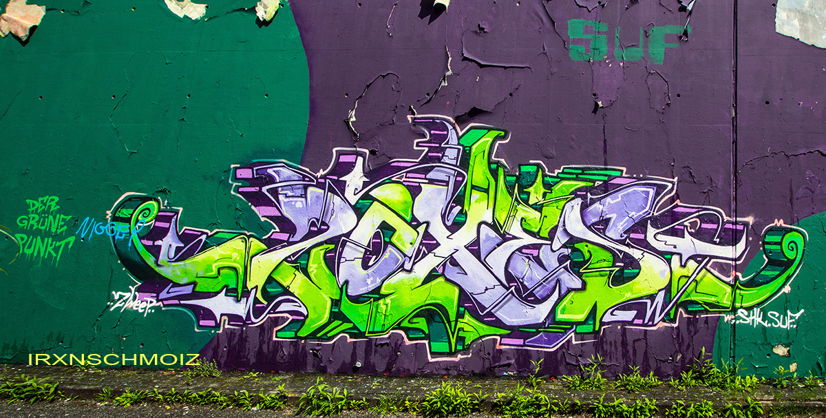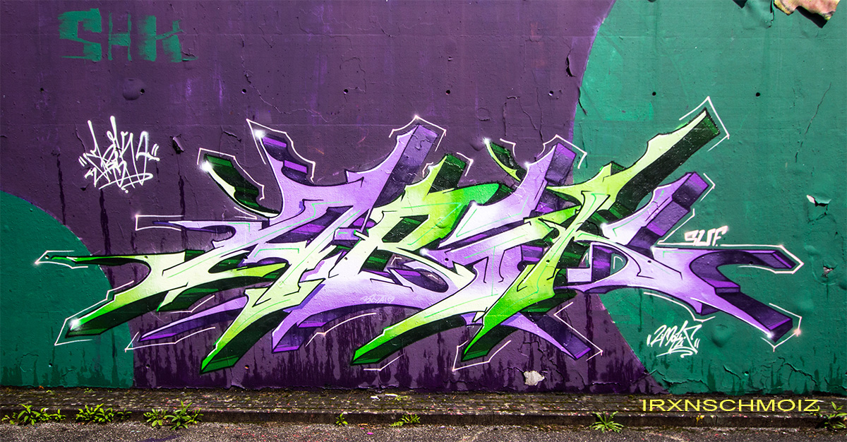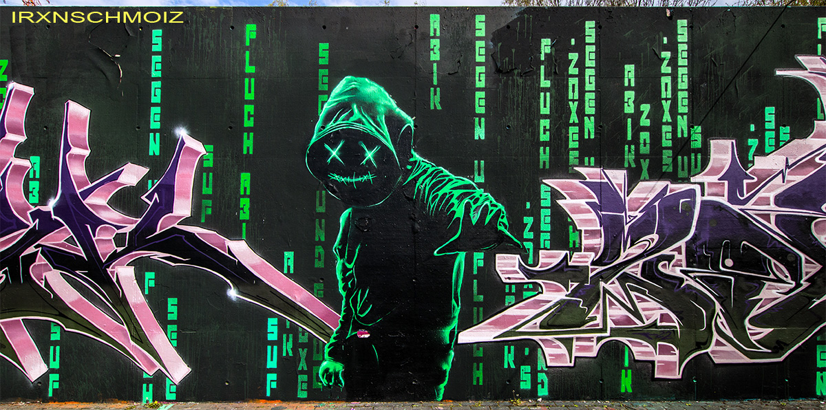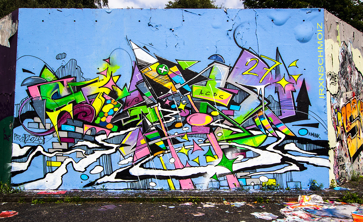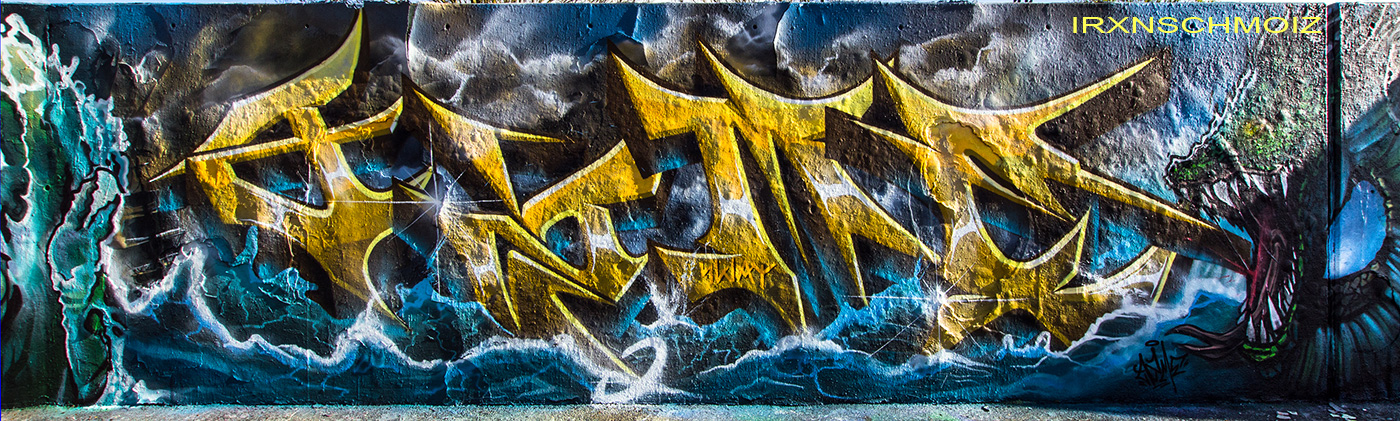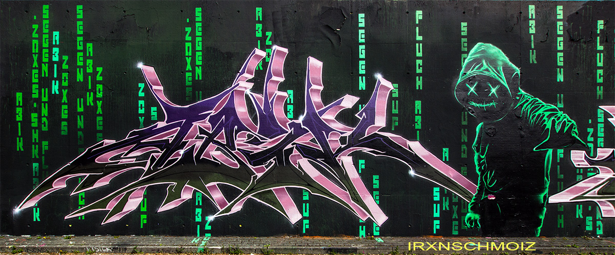 Actually you need a permit to paint on the Heimfeld Hall of Fame which you can get via an online formular on the website of the GROSSSTADTRAUM art society. Spray Rules: Painting only with a valid permit – Do not use bitumen under any circumstances  –  Please dispose of waste in the waste garbage cans or take it with you  –  Please leave the garbage cans in place  –  Any changes to the wall, such as drilling, removing or gluing, are prohibited  –  Painting the floor, signs and other surfaces is prohibited  –  Treat each other, the local residents and nature with respect  –  Always paint over a picture or concept completely if possible  –  The wall is for everyone! Choose your area with consideration for others  –  Beginners should practise on the inner, small wall by the sloping dyke  –  Grosstadtraum e.V.